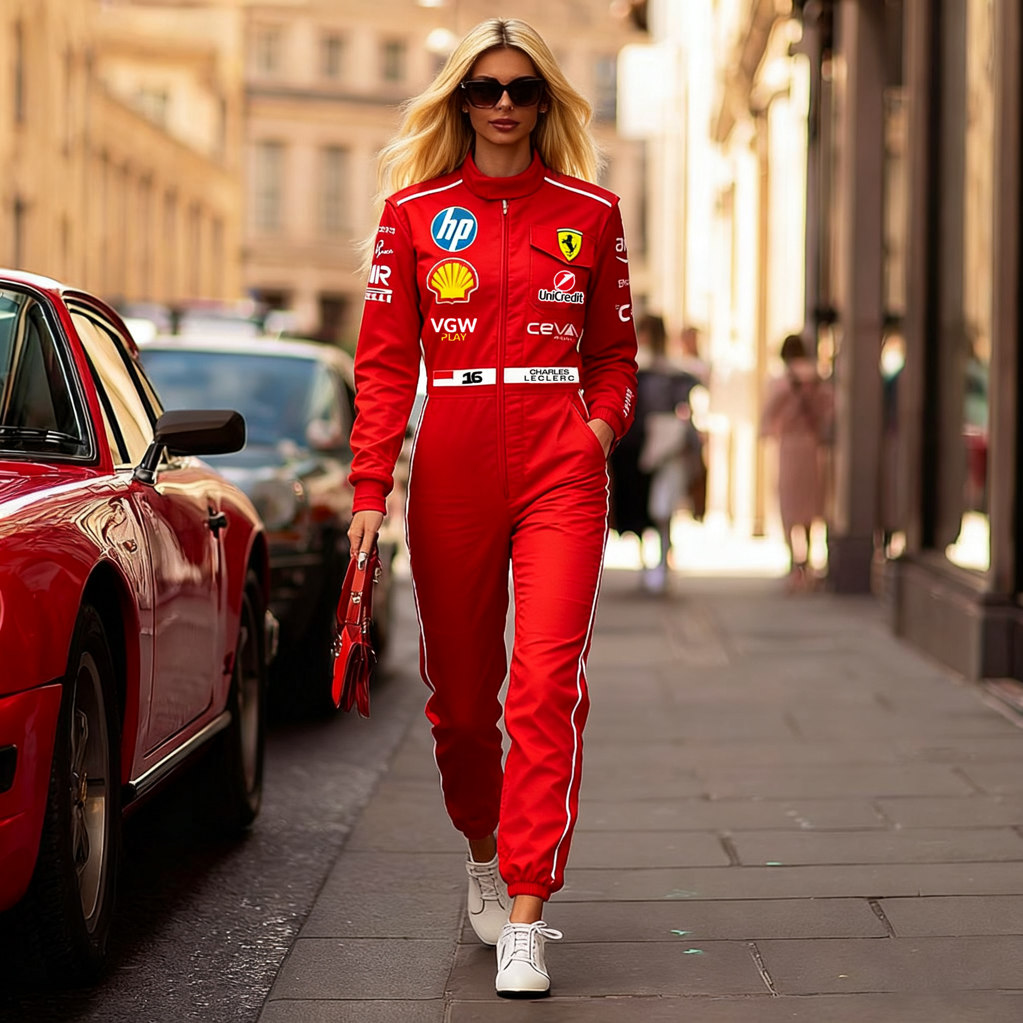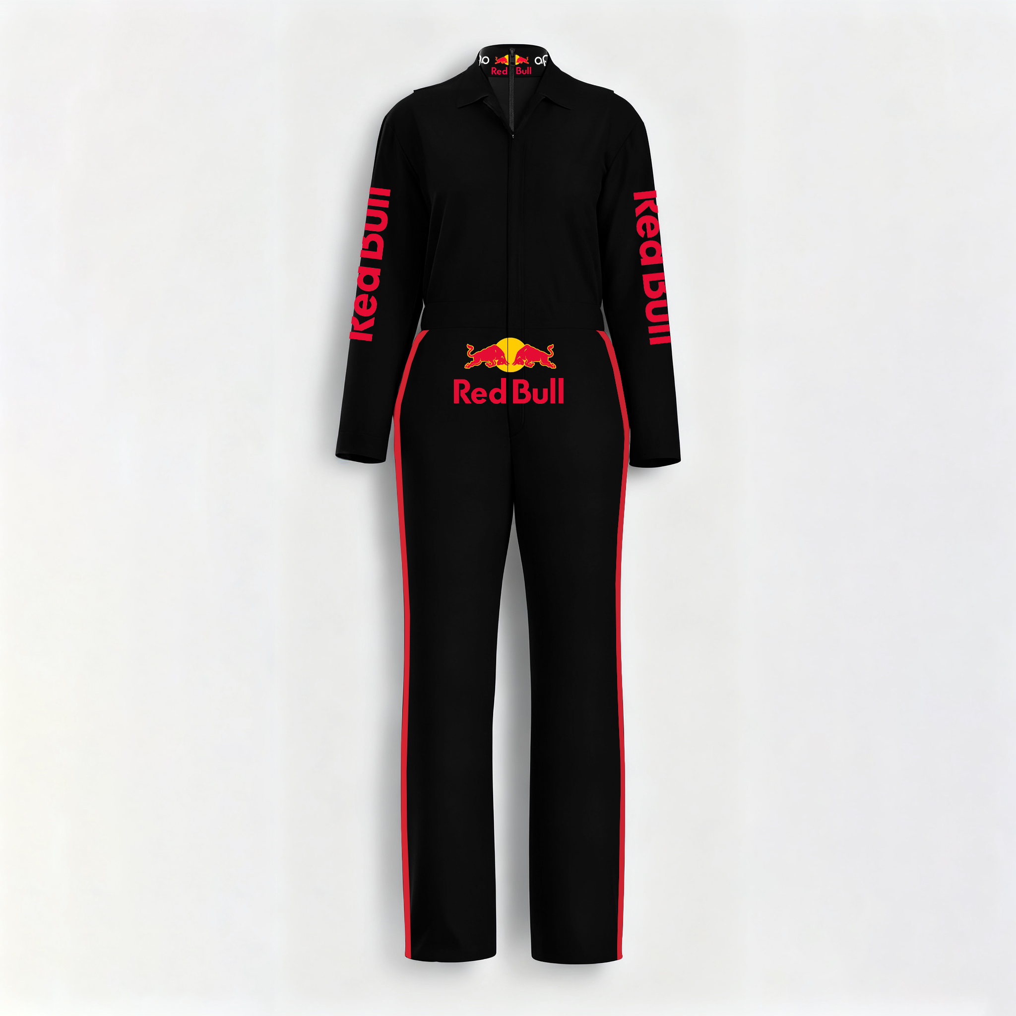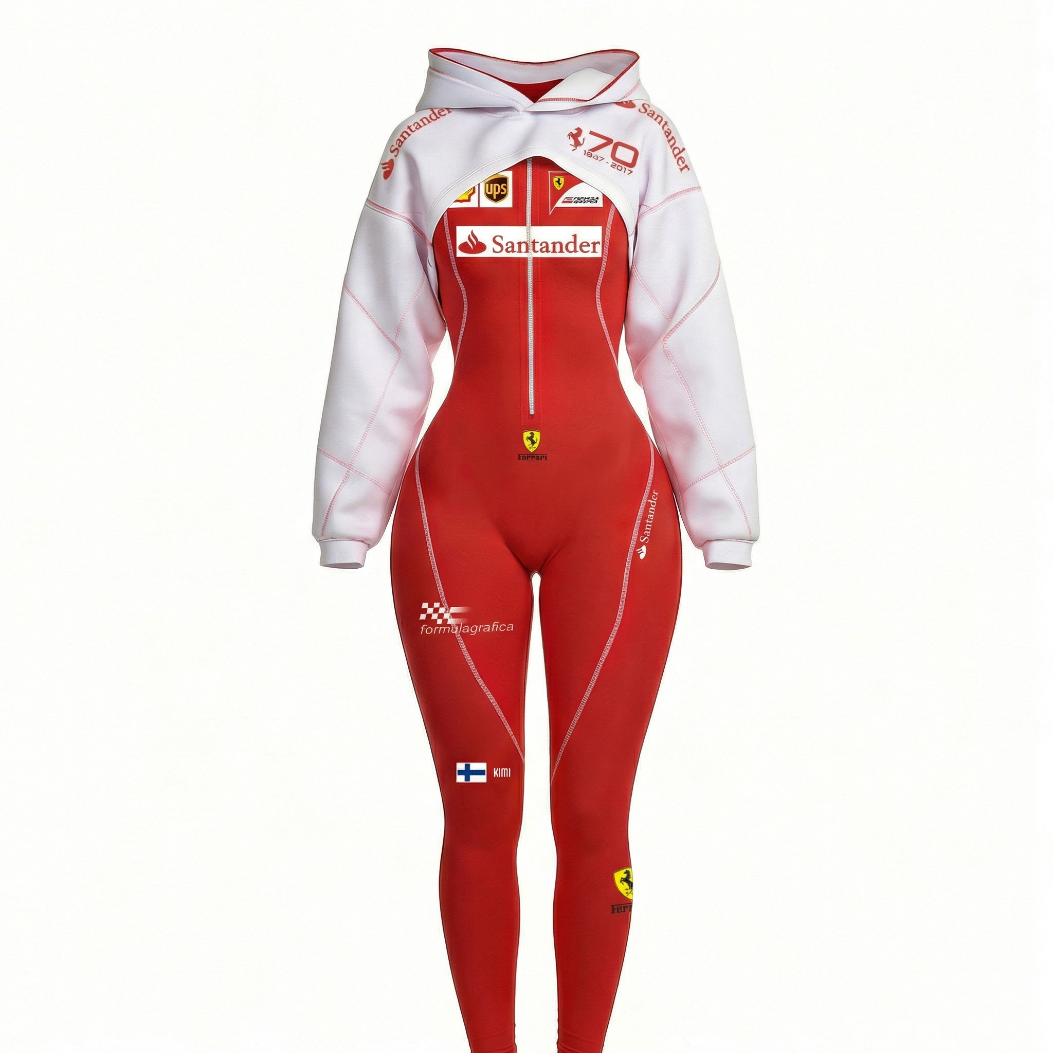 Red Racing-Inspired Hooded One-Piece Suit with Full-Zip Design