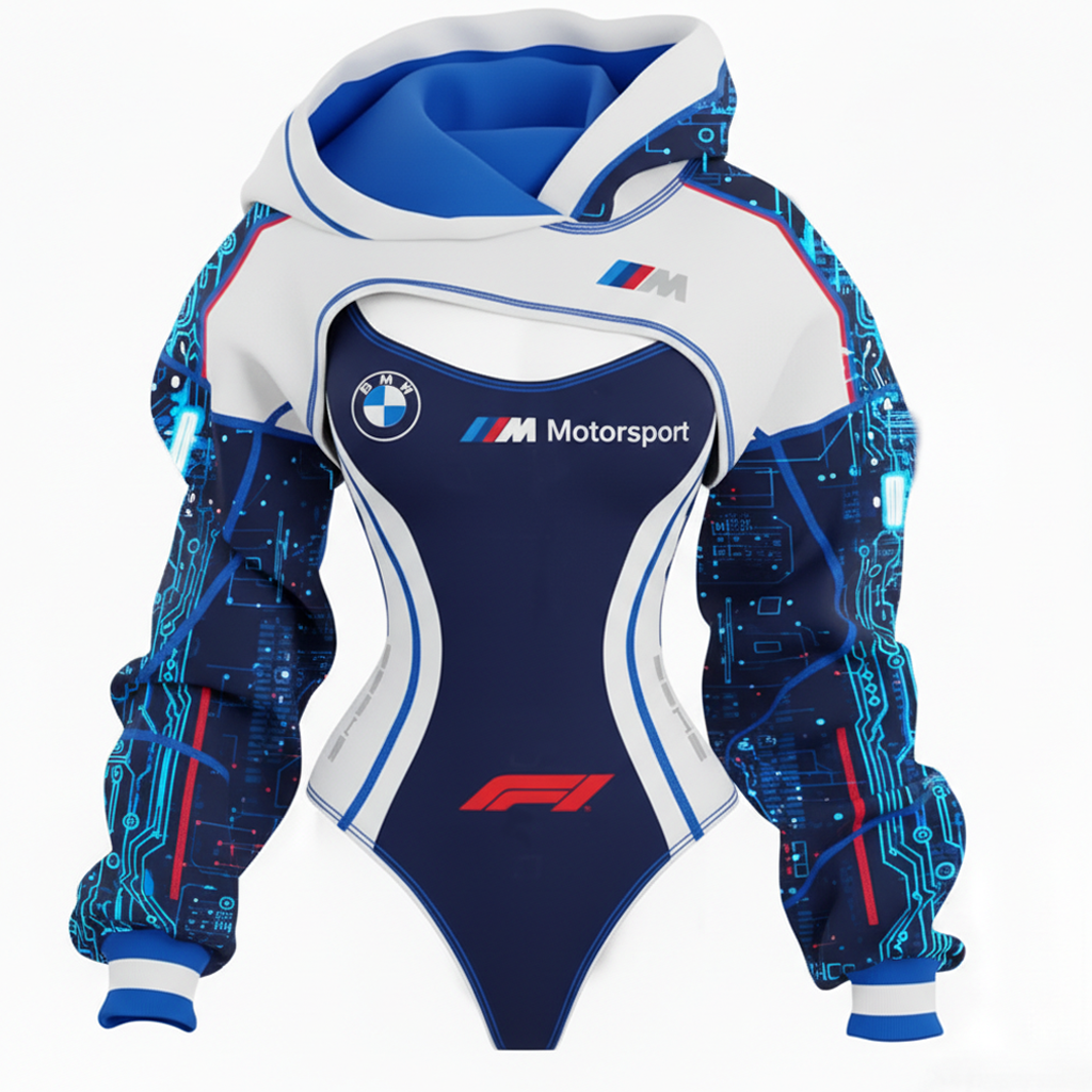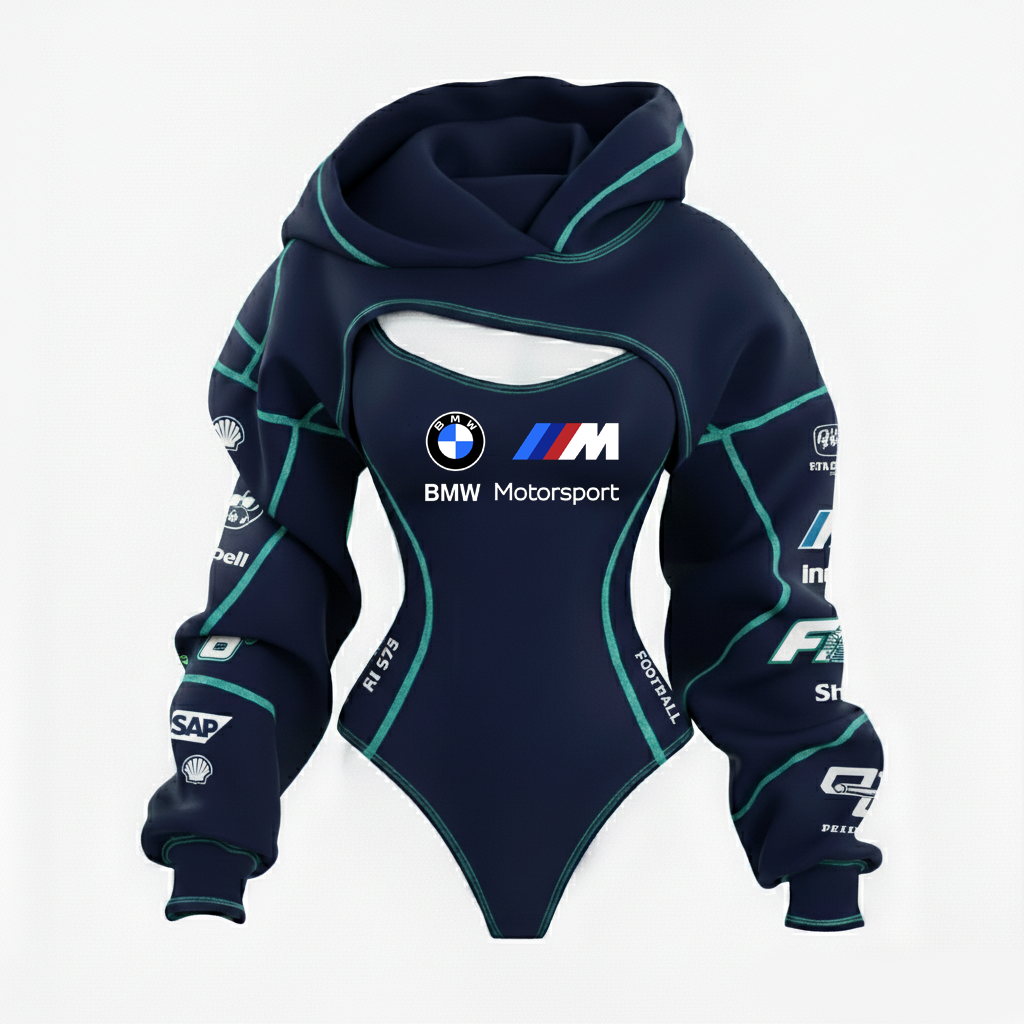 Racing Inspired Hooded Bodysuit with Cut-Out Design