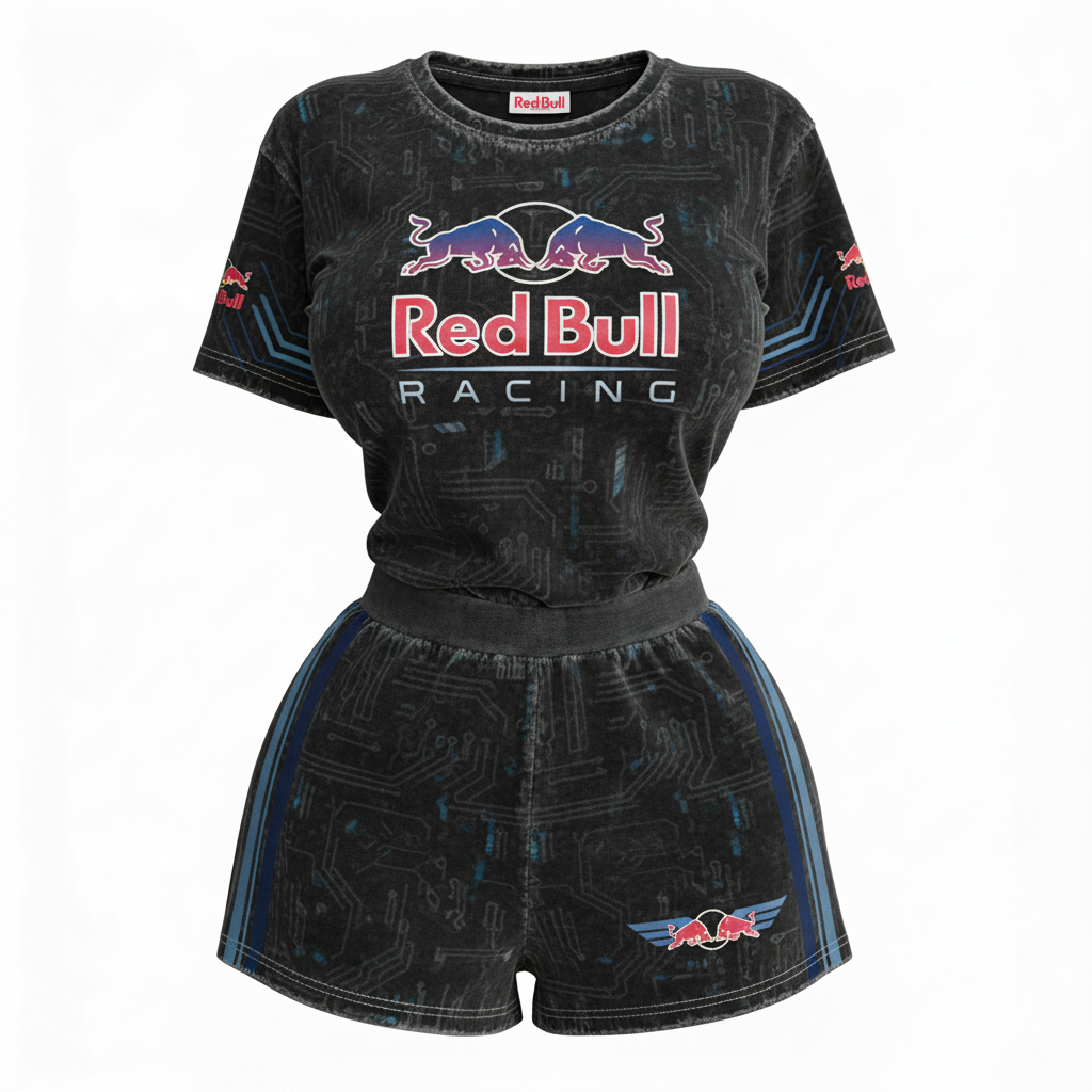 Sporty One-Shoulder Top and Skirt Set for Formula 1 Fans