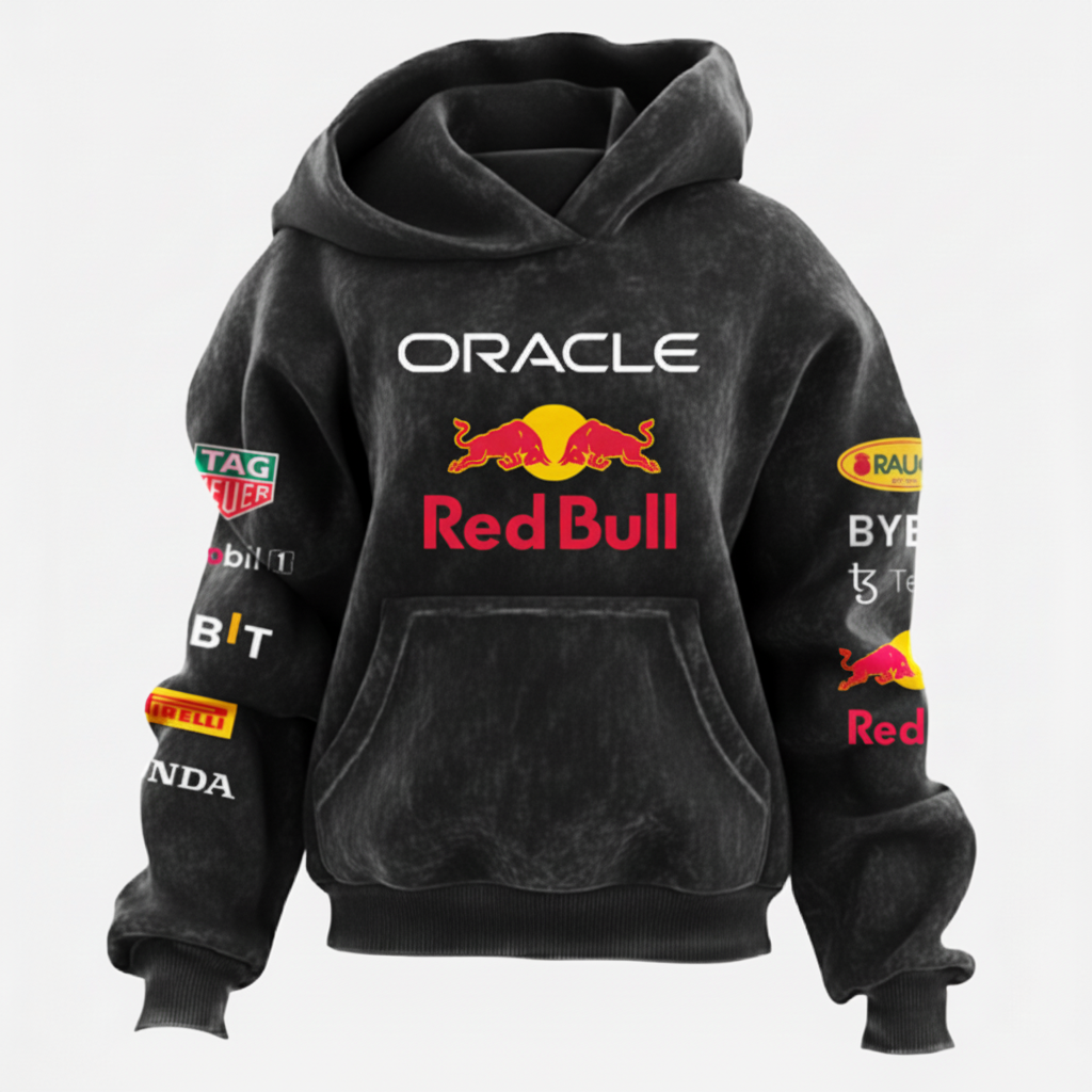 2026 New Unisex Racing Print Washed Distressed 100% Cotton Hoodie