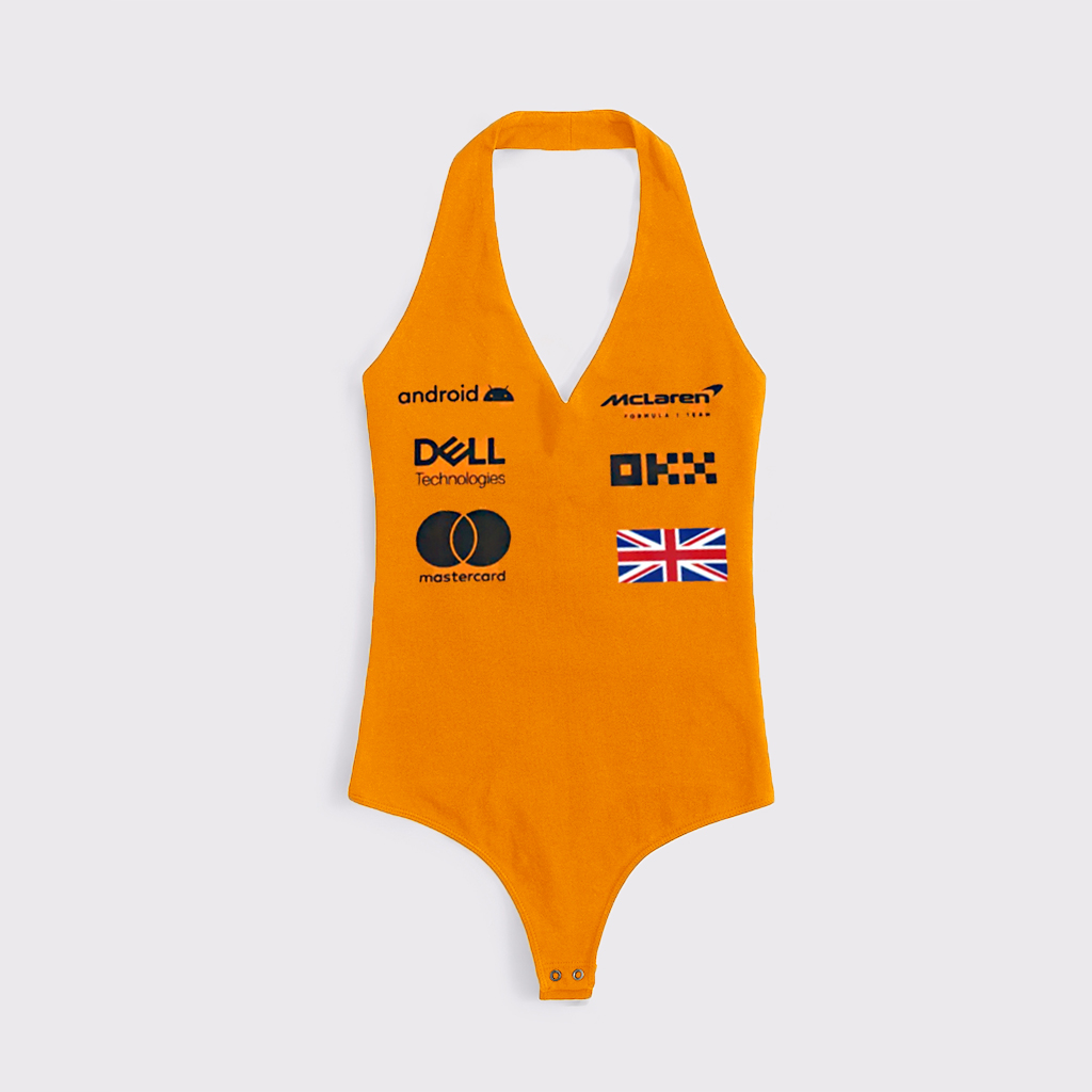 Women's Racing Team Style Printed Halter Neck Sleeveless Bodysuit