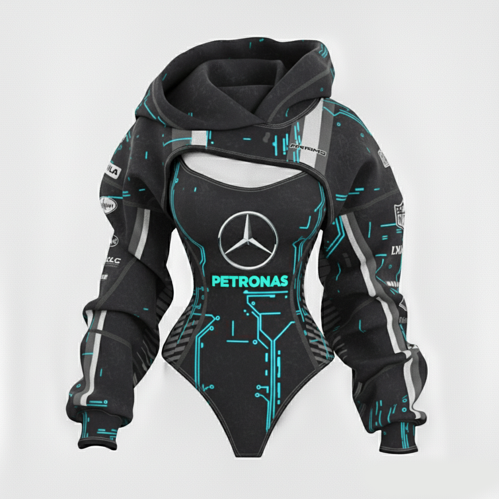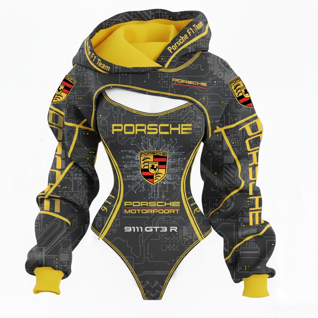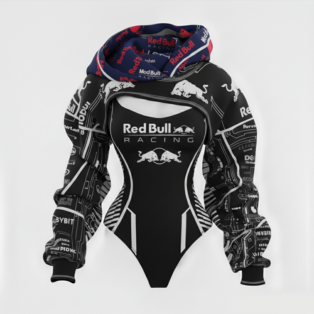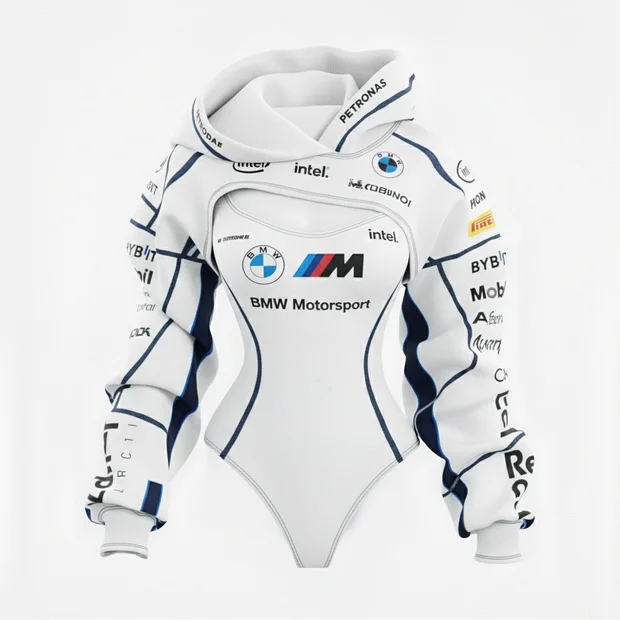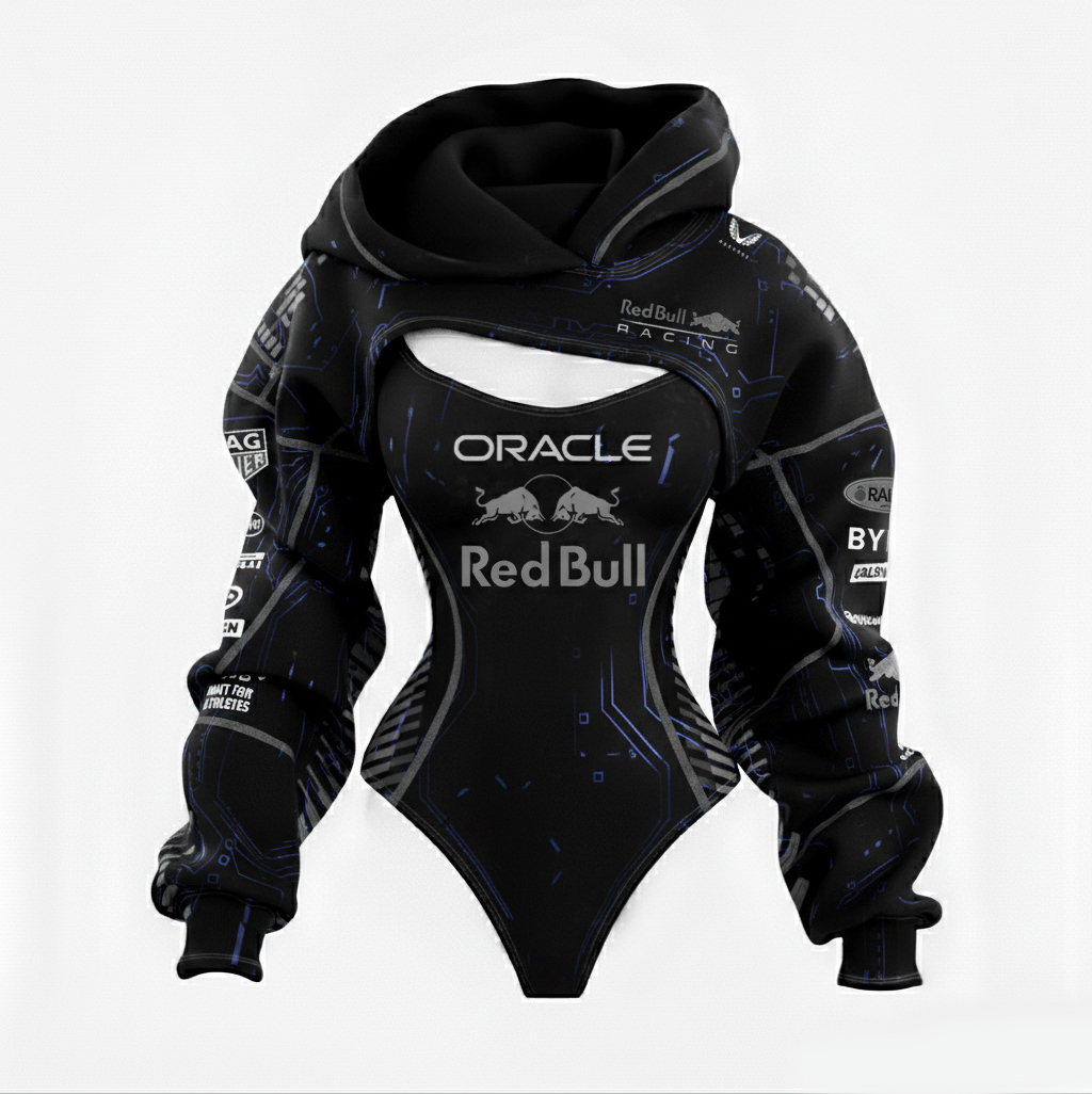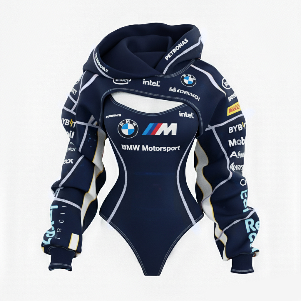 Racing Inspired Hooded Bodysuit with Cut-Out Design