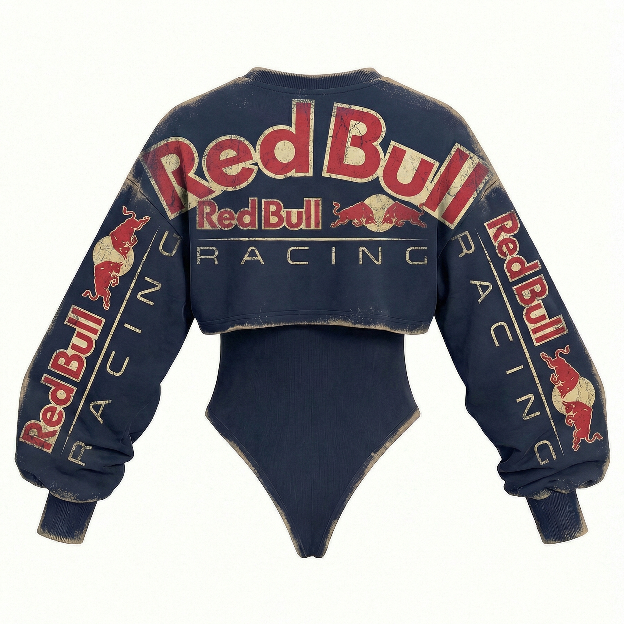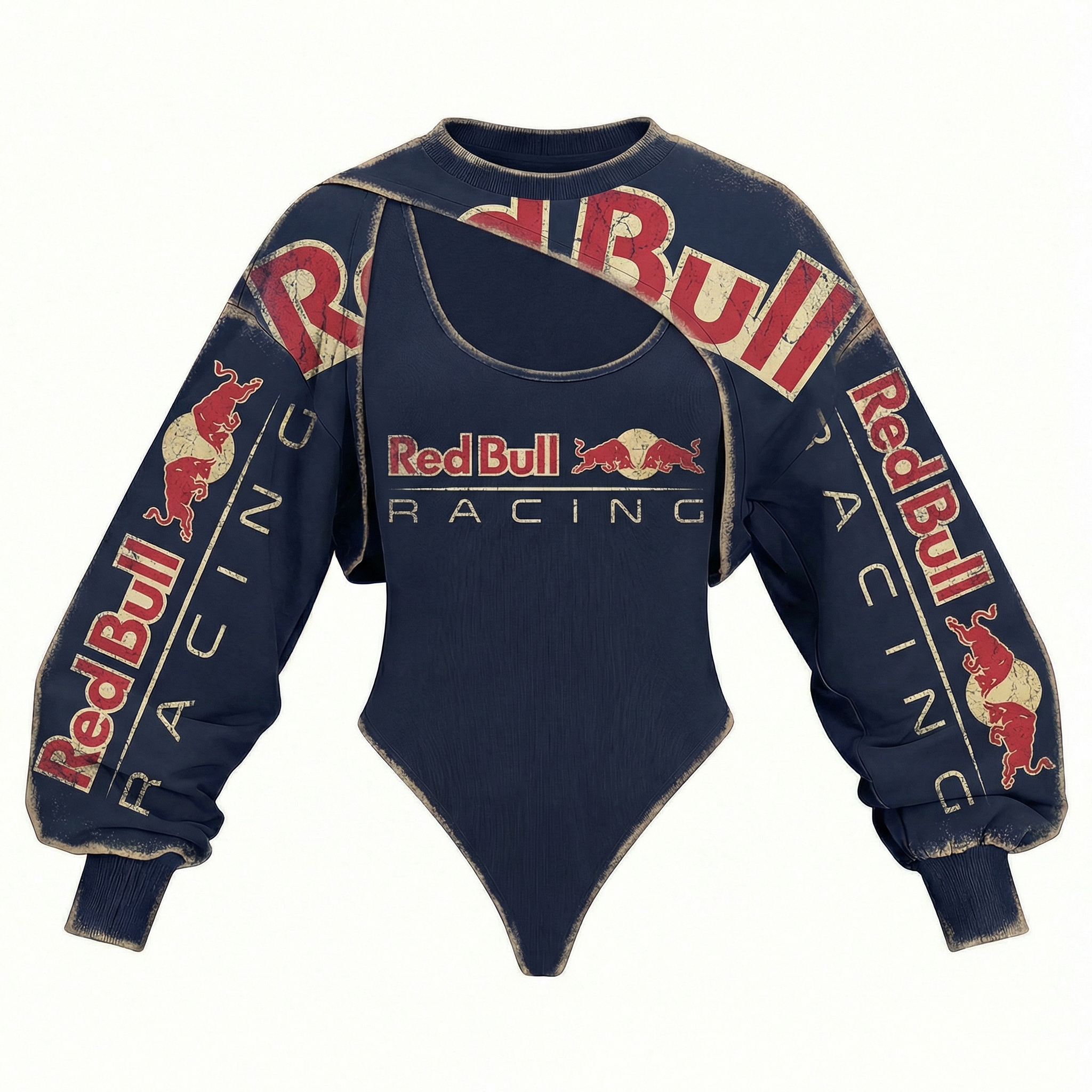 Retro Racing Inspired Long Sleeve Bodysuit with Bold Color Blocking Design