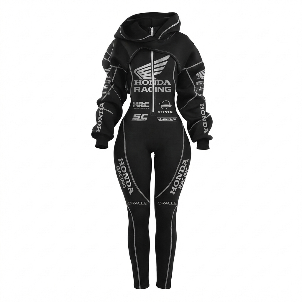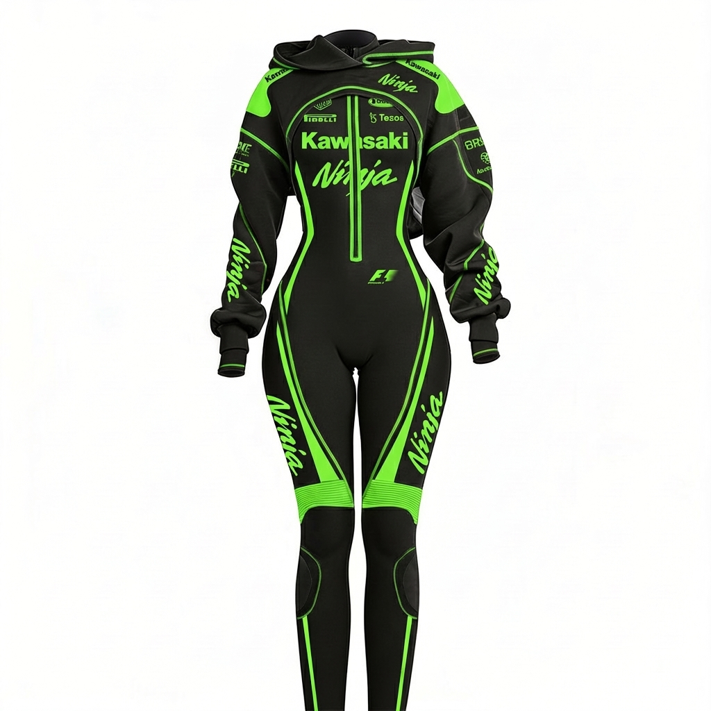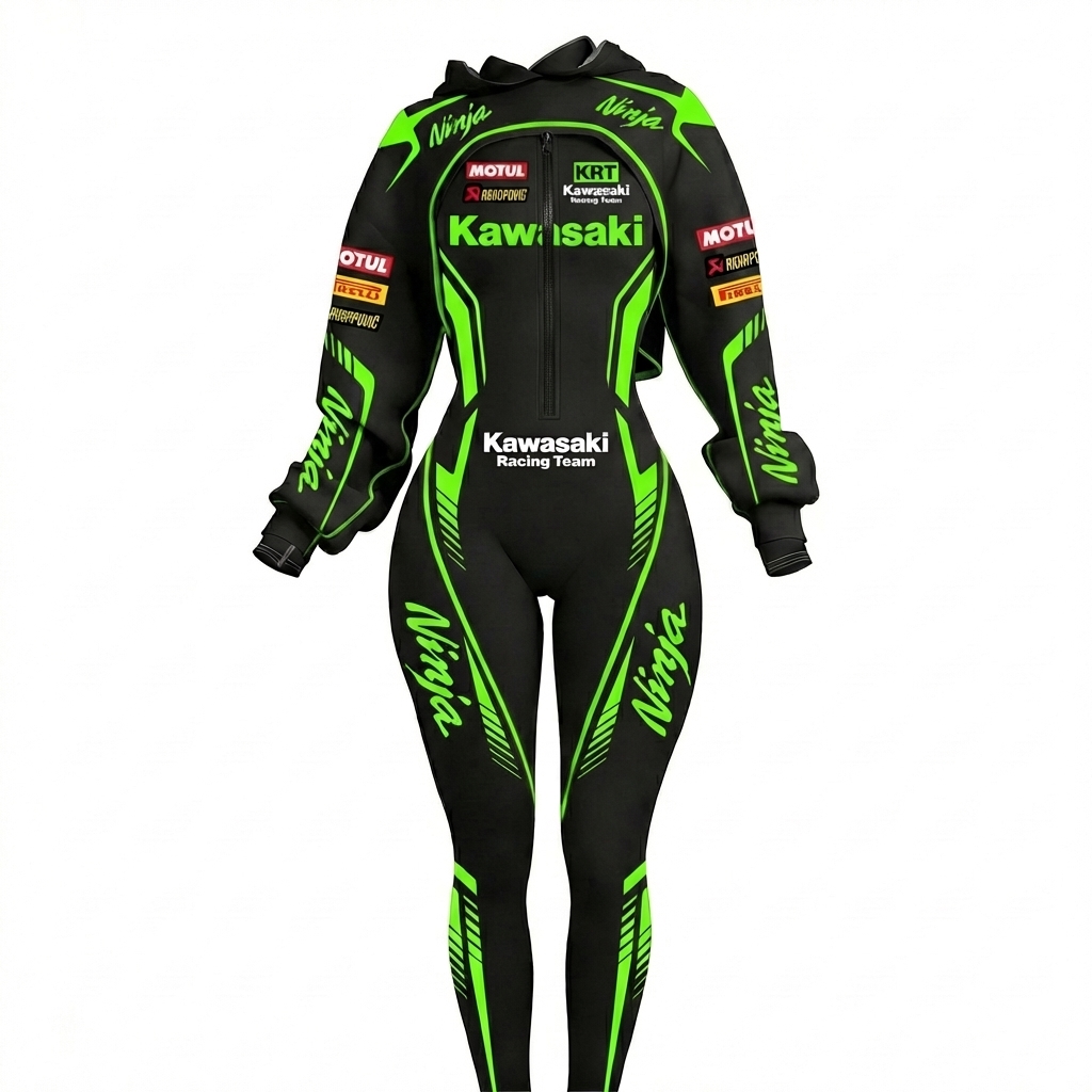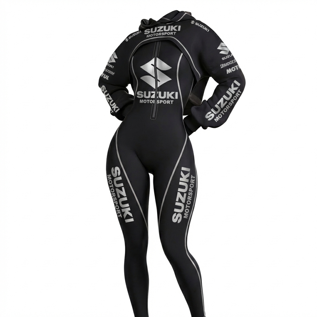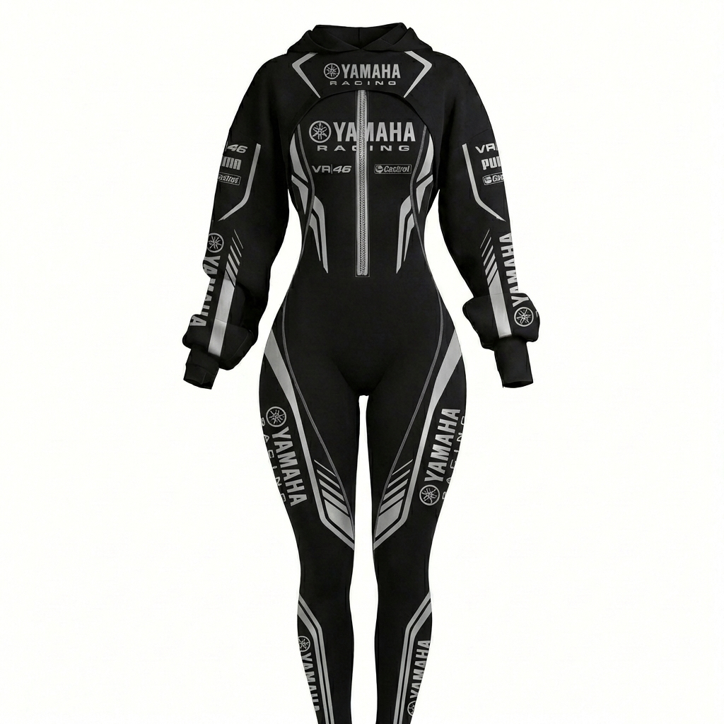 Stretch Spandex Moto Sport Racing Suit with Full Zipper and Hooded Design
