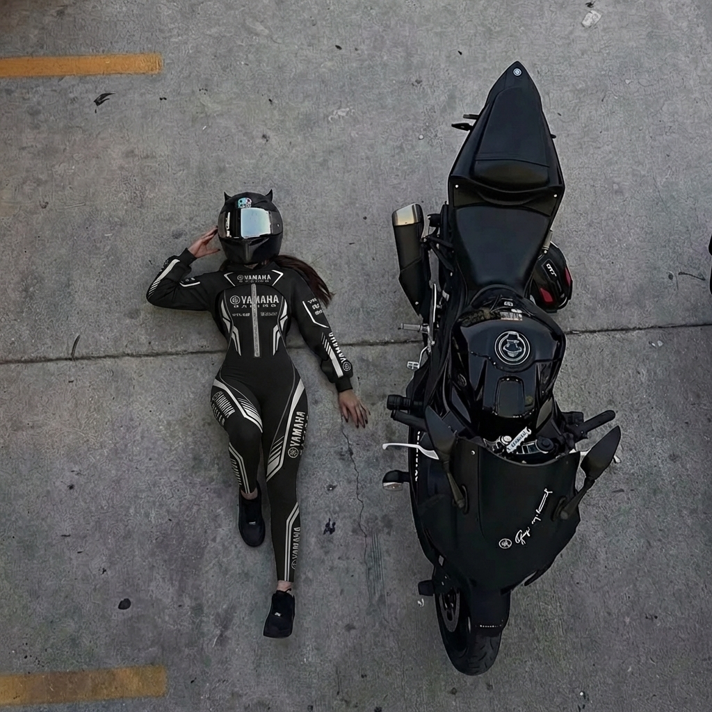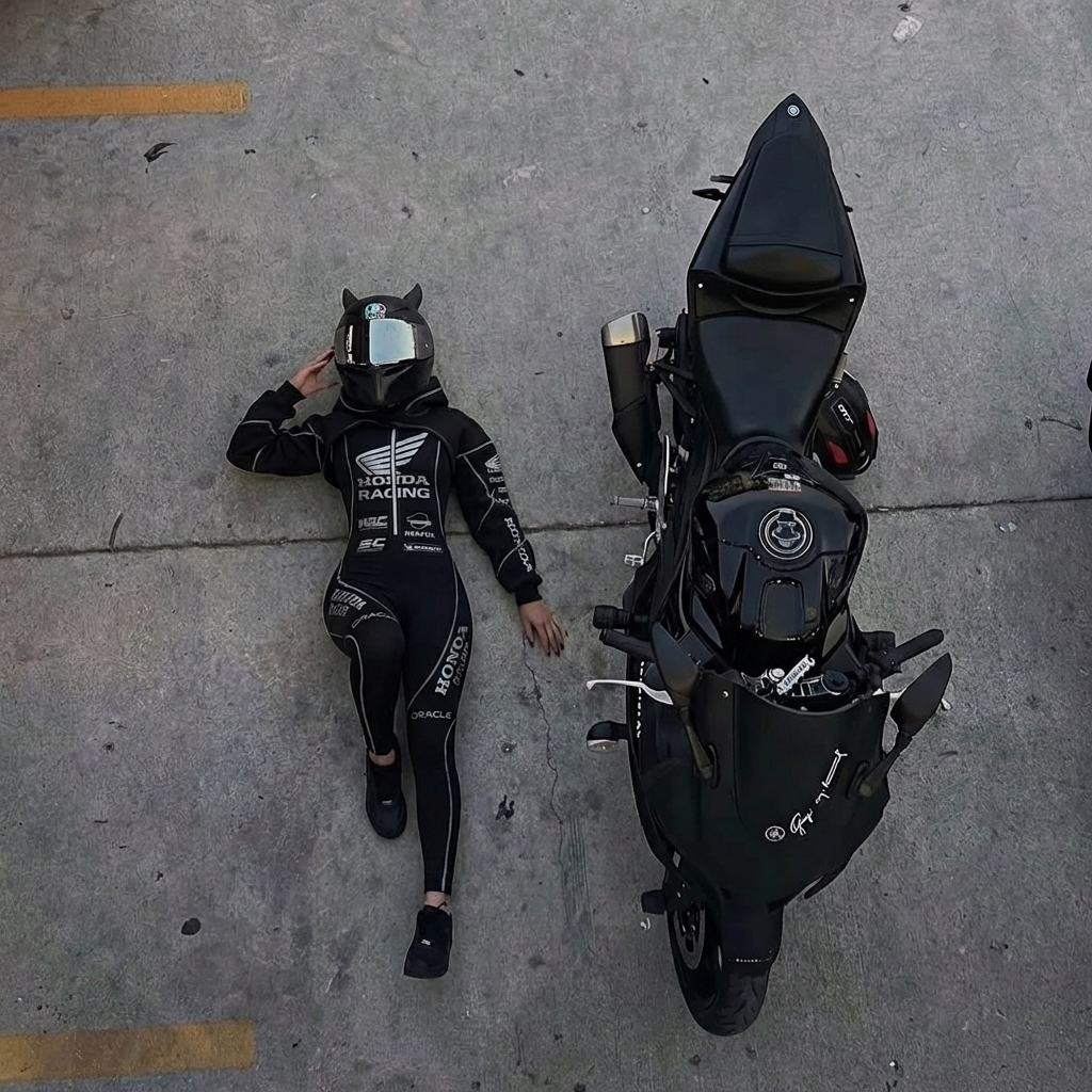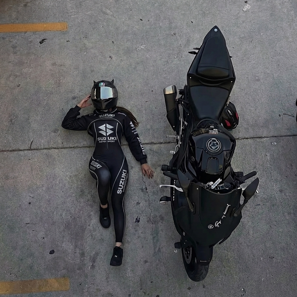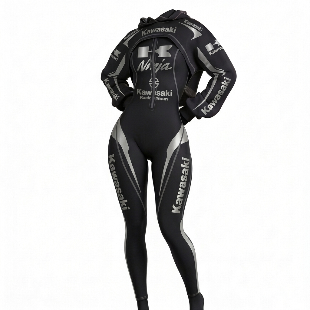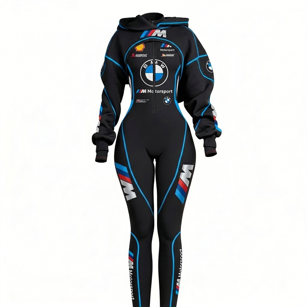 Stretch Spandex Moto Sport Racing Suit with Full Zipper and Hooded Design