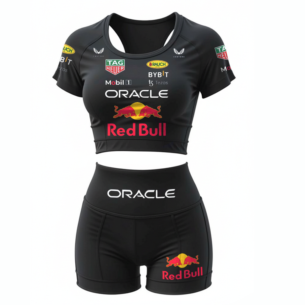American Racing Style Hot Girl Set - Cropped Fitness Top + High-waisted Booty Shorts