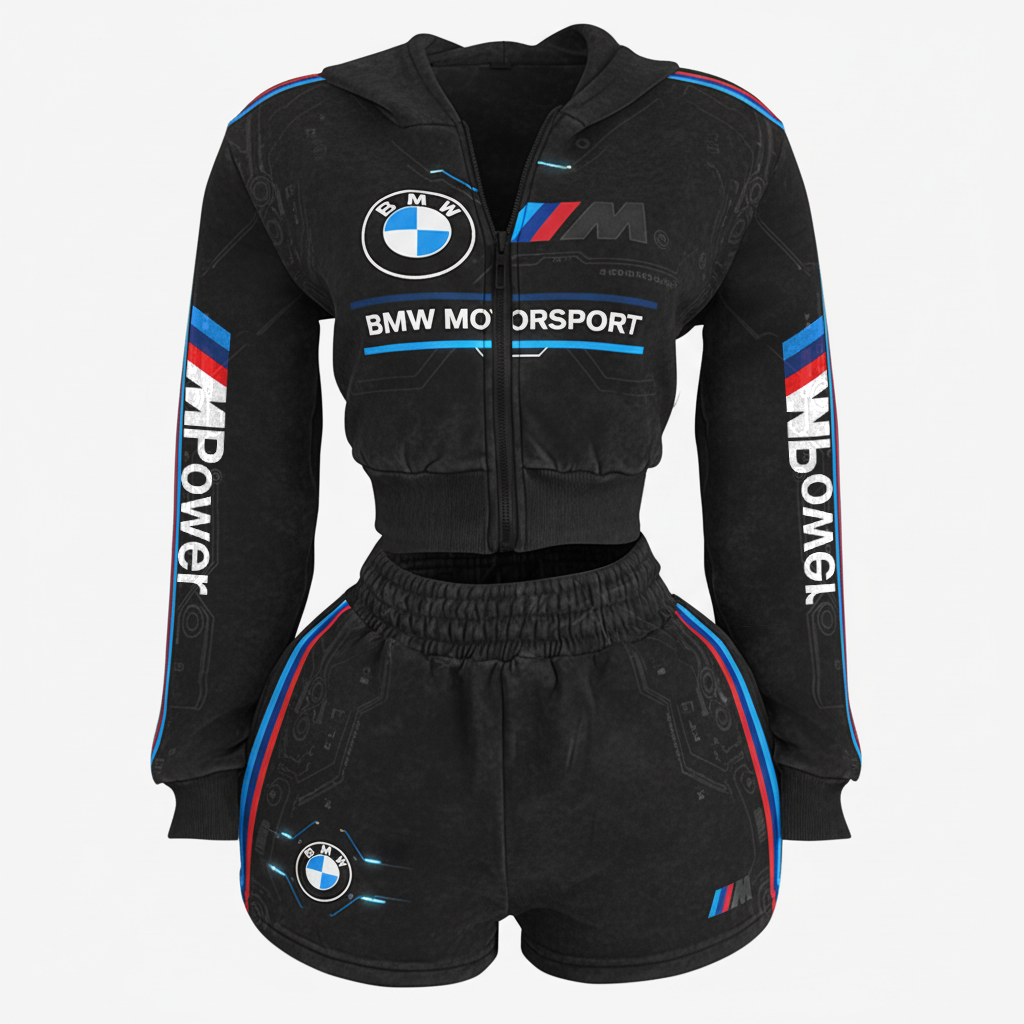 American Street Racing Style Short Hoodie + Shorts Set