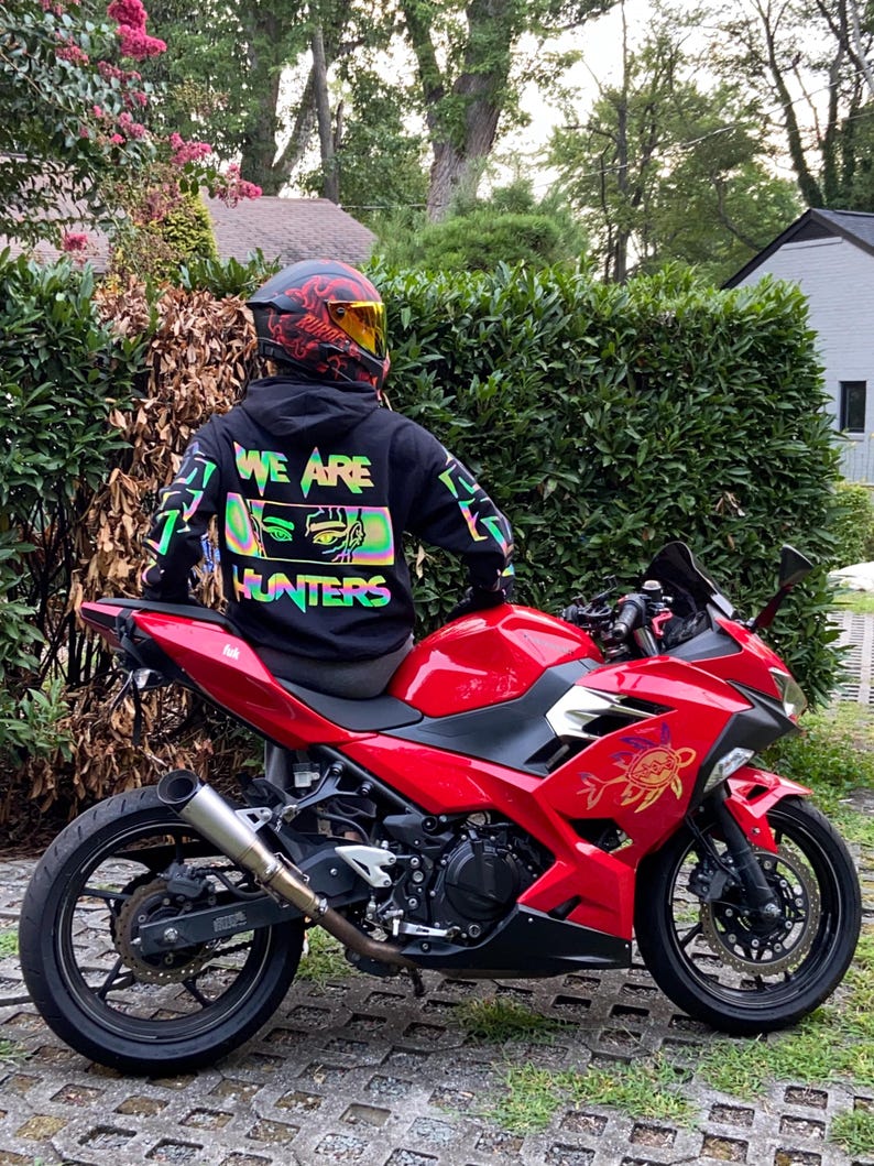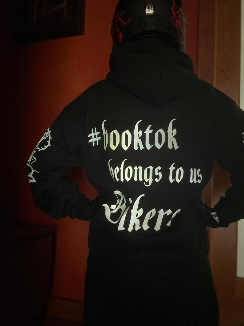 Booktok Biker Hoodie, Reflective Design, Crafted in USA