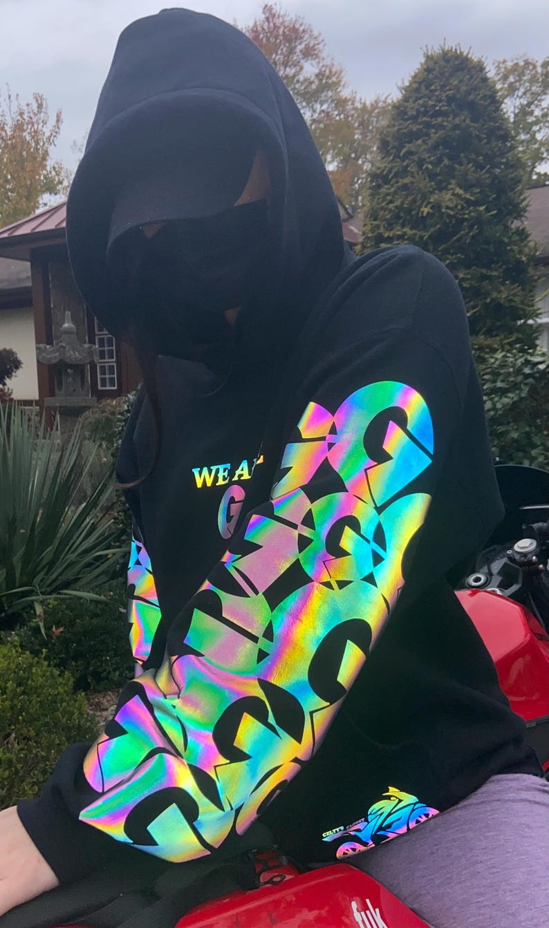 Kuro Mi Rainbow Reflective Hoodie - loose fit unisex nighttime essential riding pullover