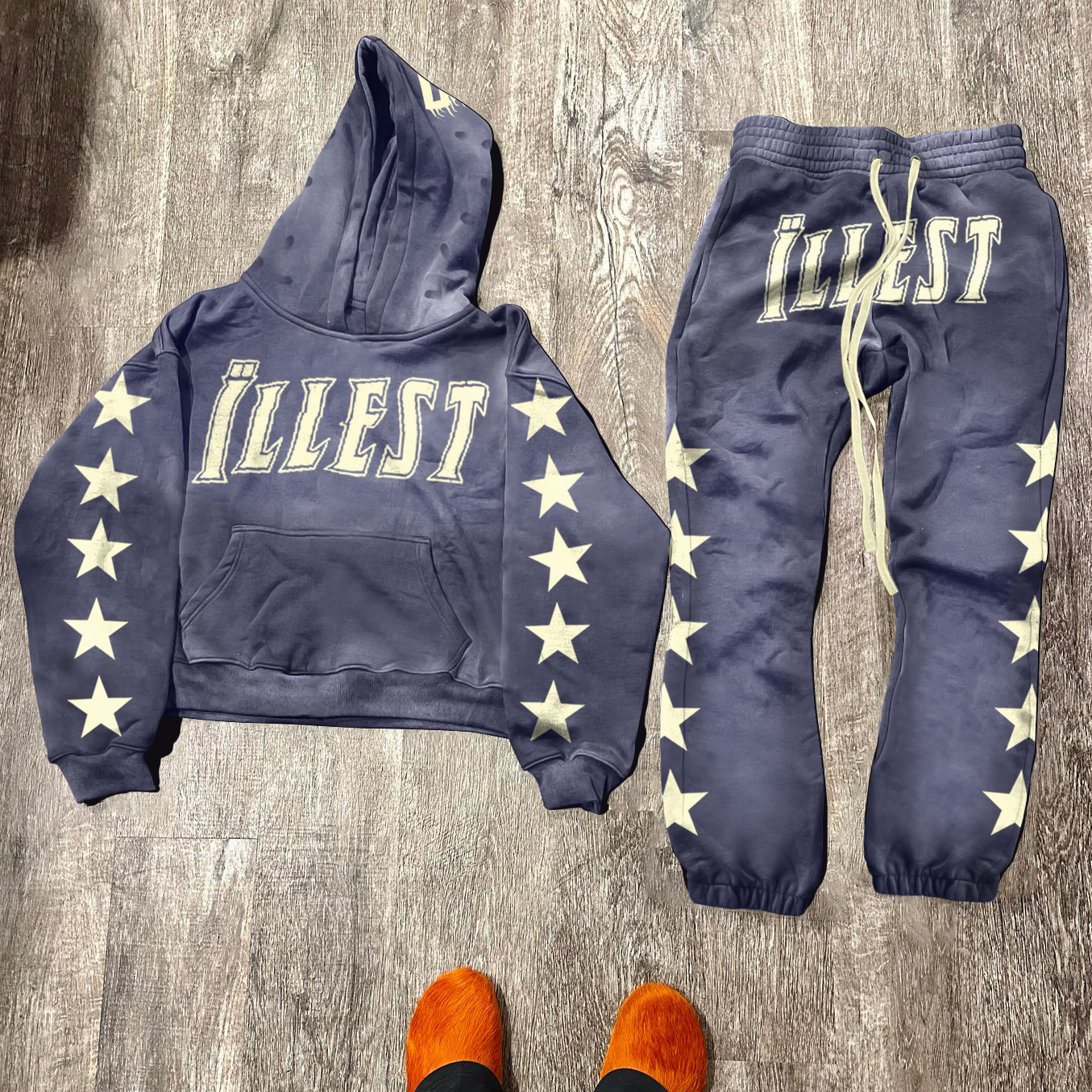 Lucky Star Casual Streetwear Pants Hoodie Two-Piece Set