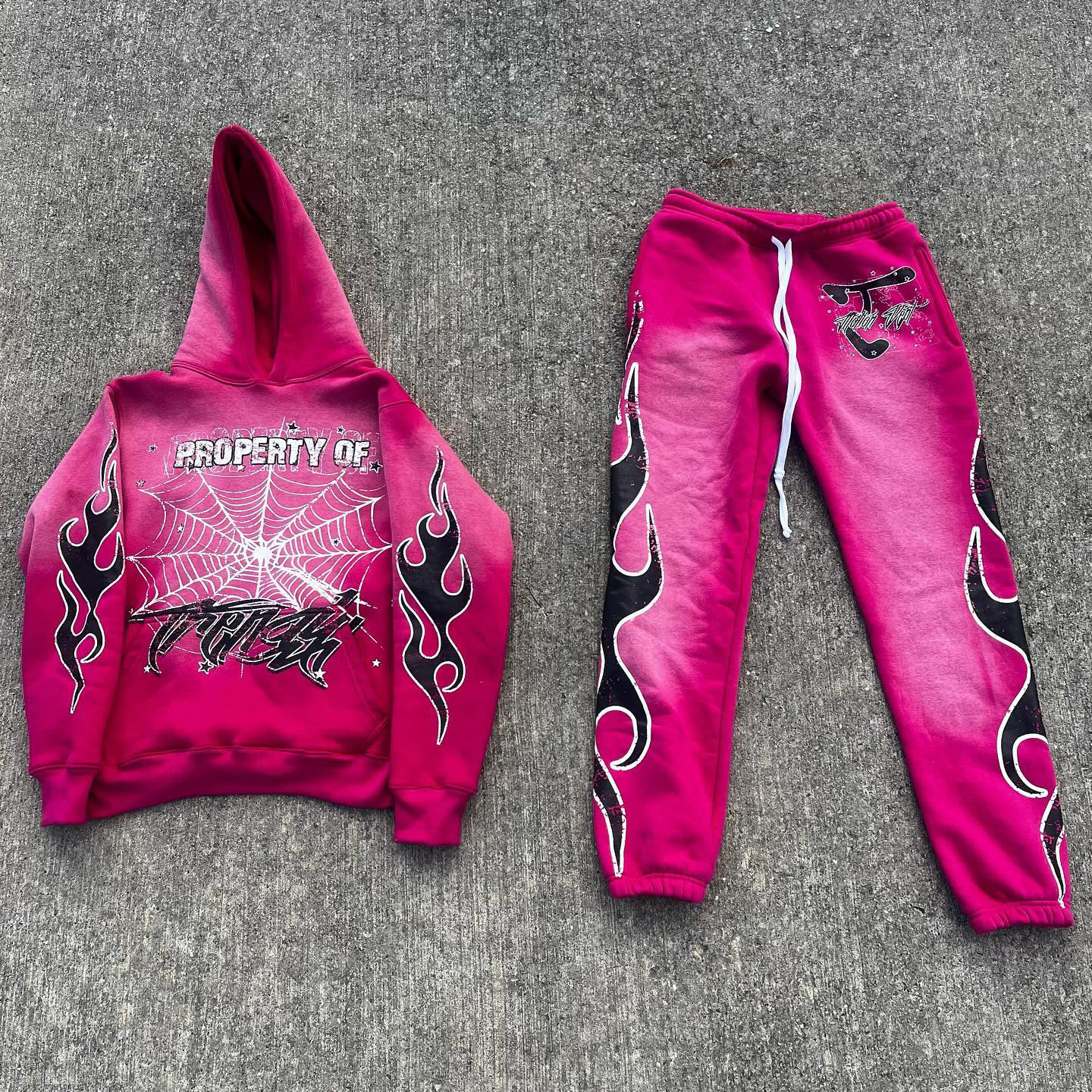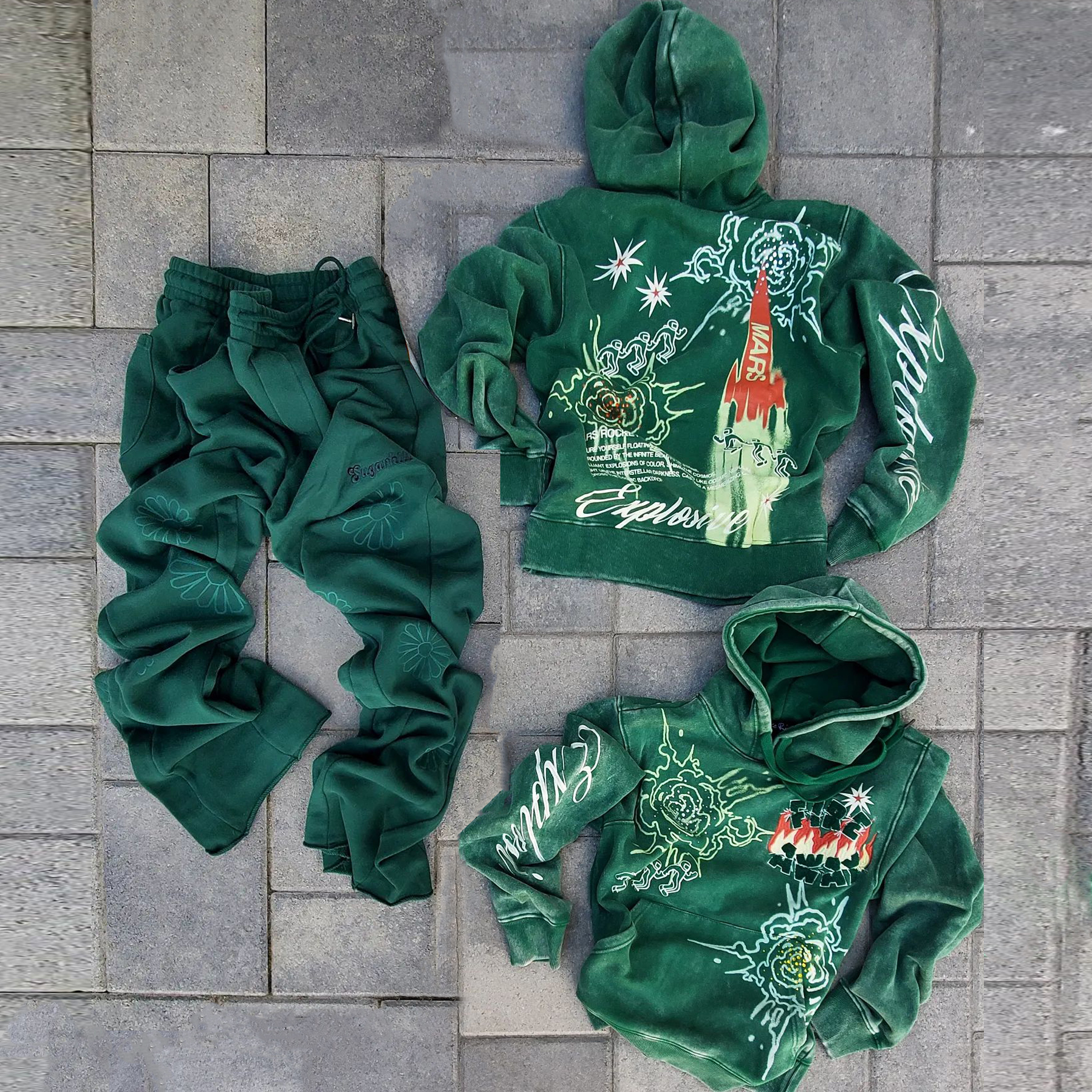 Lost Love Print Hoodie Sweatpants Two Piece Set