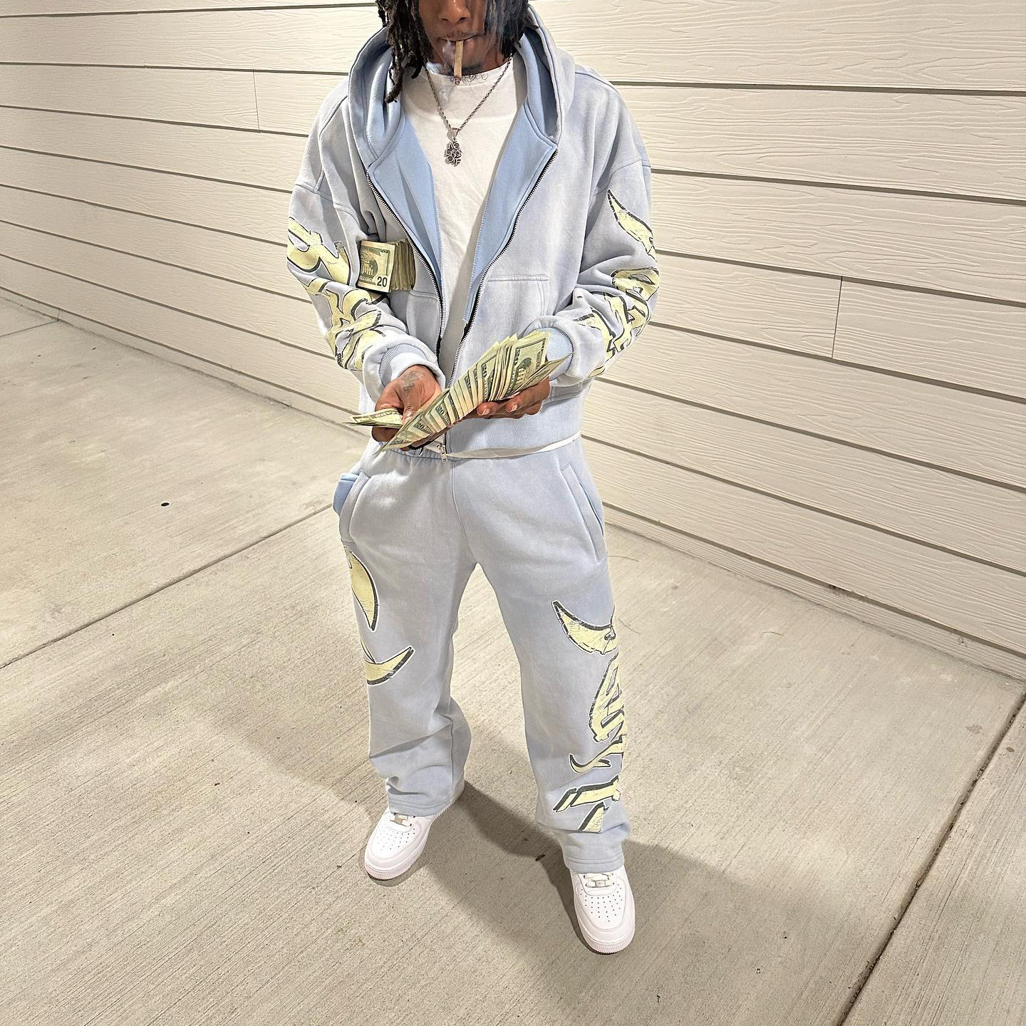 Richest Rock Print Hoodie Sweatpants Two Piece Set