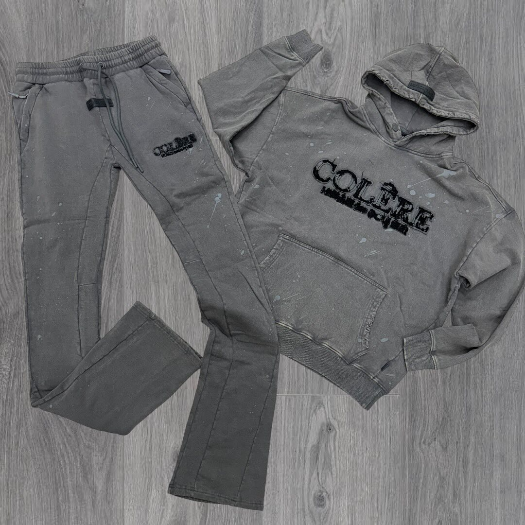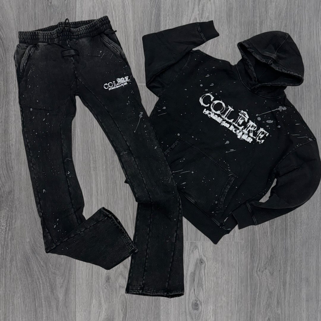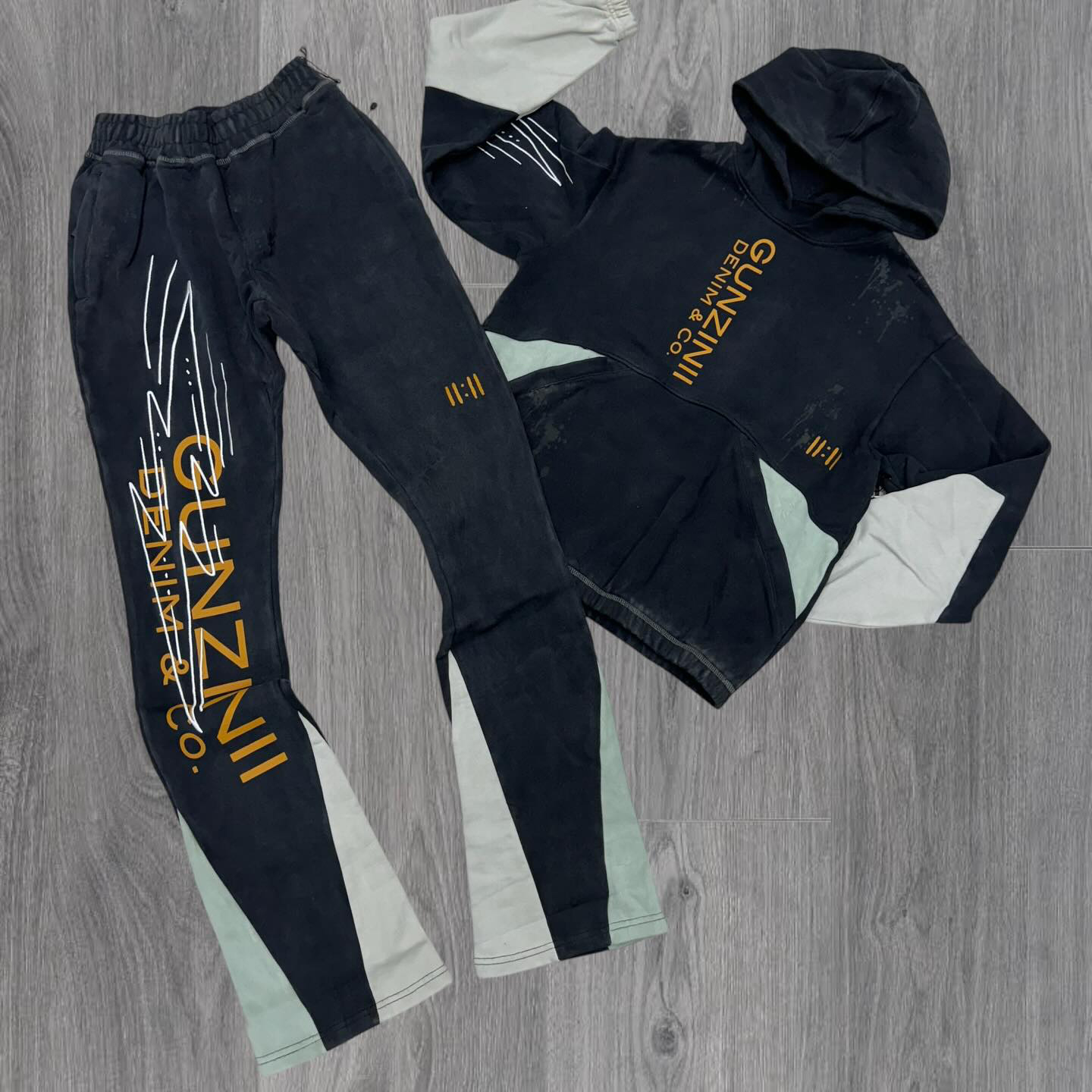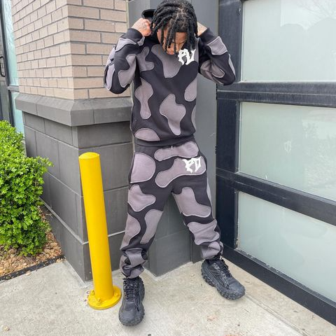 Ink-splashed Letters Print Two Piece Hoodie Set