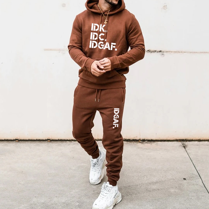 Fashion Simple Print Hoodie Sweatpants Two Piece Set