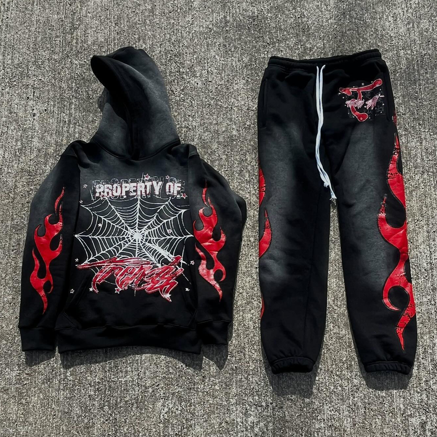 Casual Retro Street Hoodie Pants Two-Piece Set