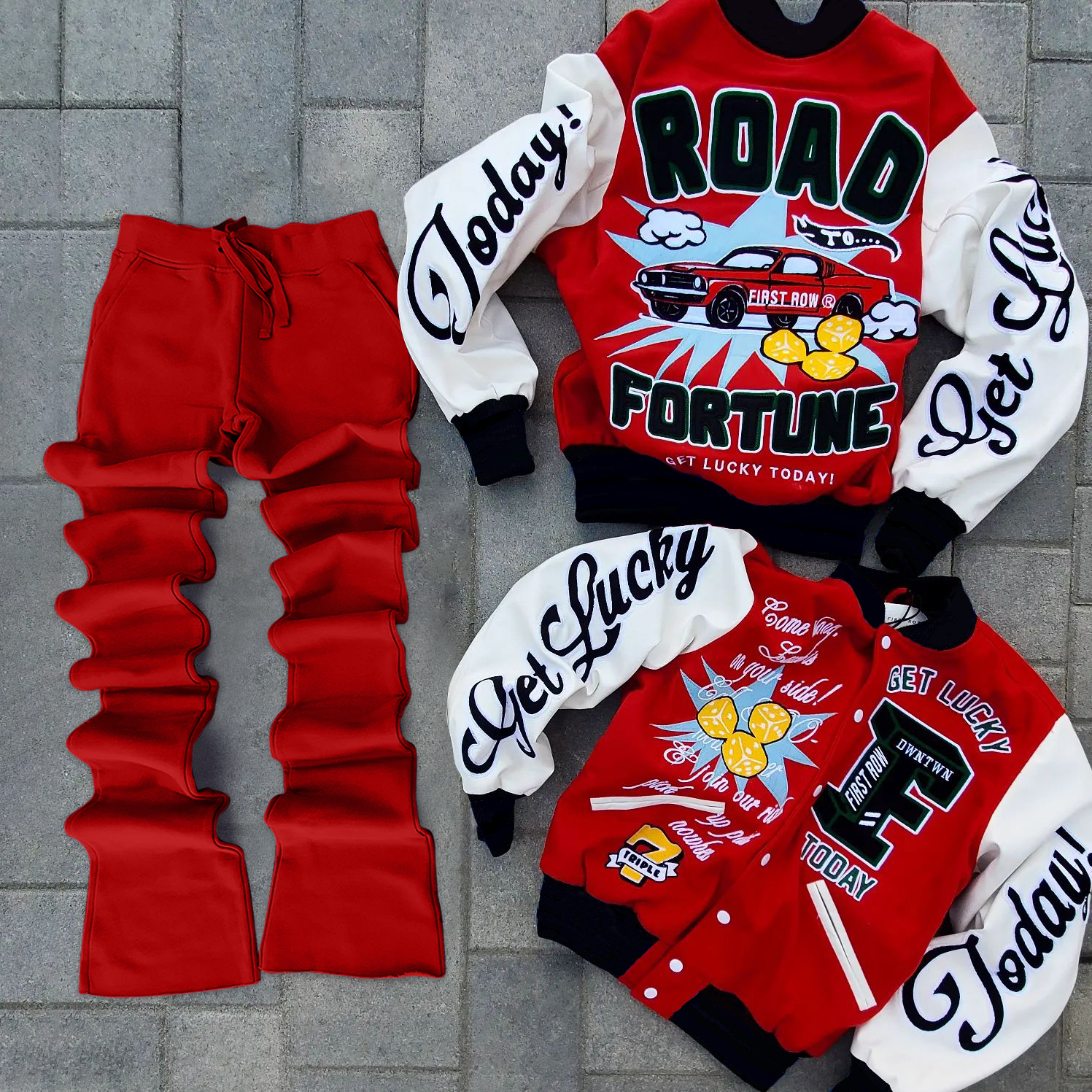 Stylish casual preppy graphic hoodie set