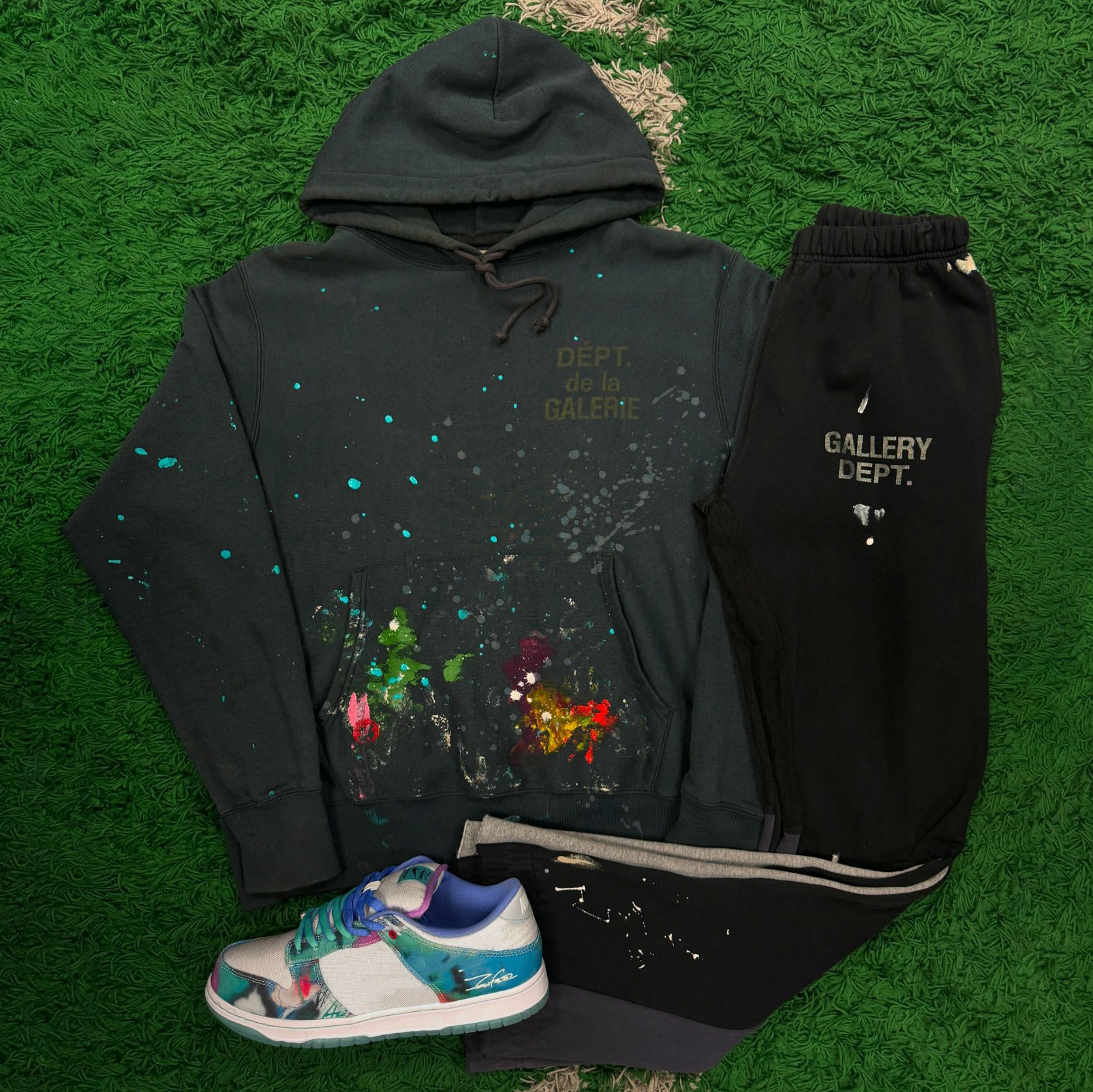 Ink Contrast Color Print Two Piece Hoodie Set