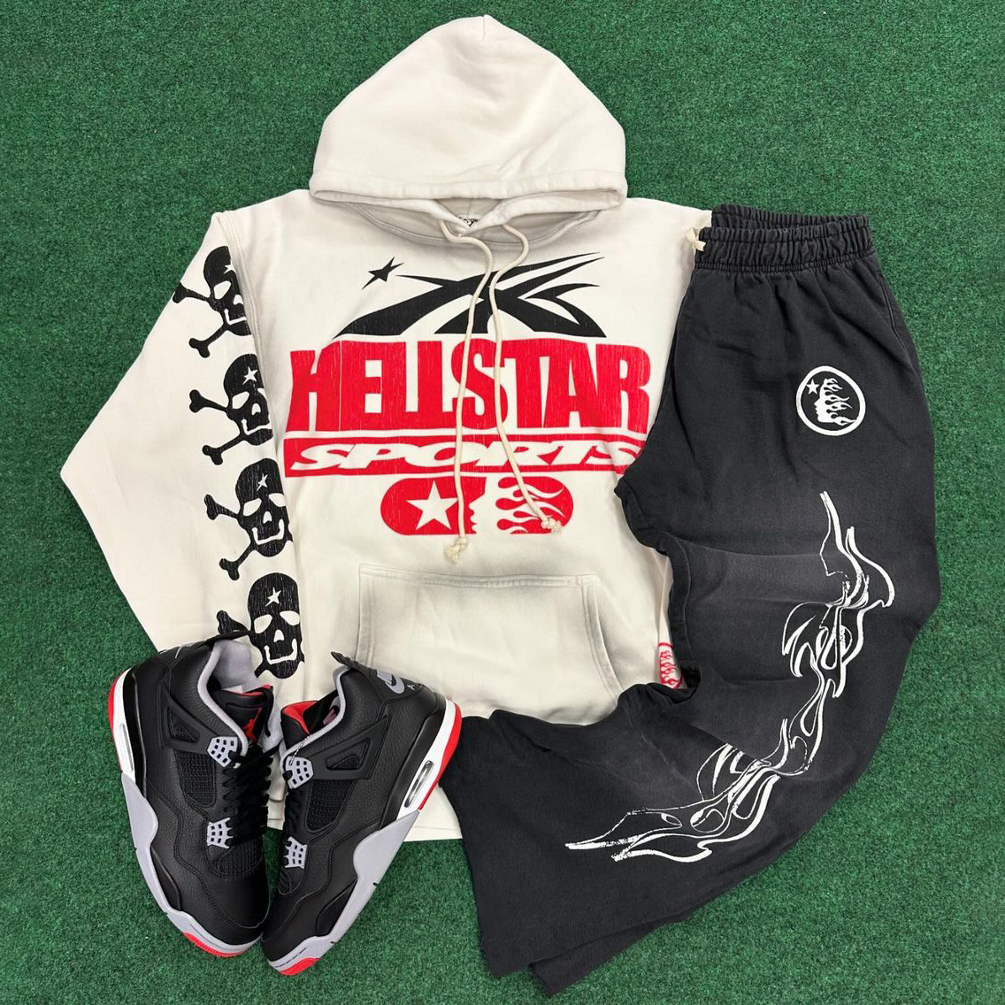 Skull Letters Print Two Piece Hoodie Set