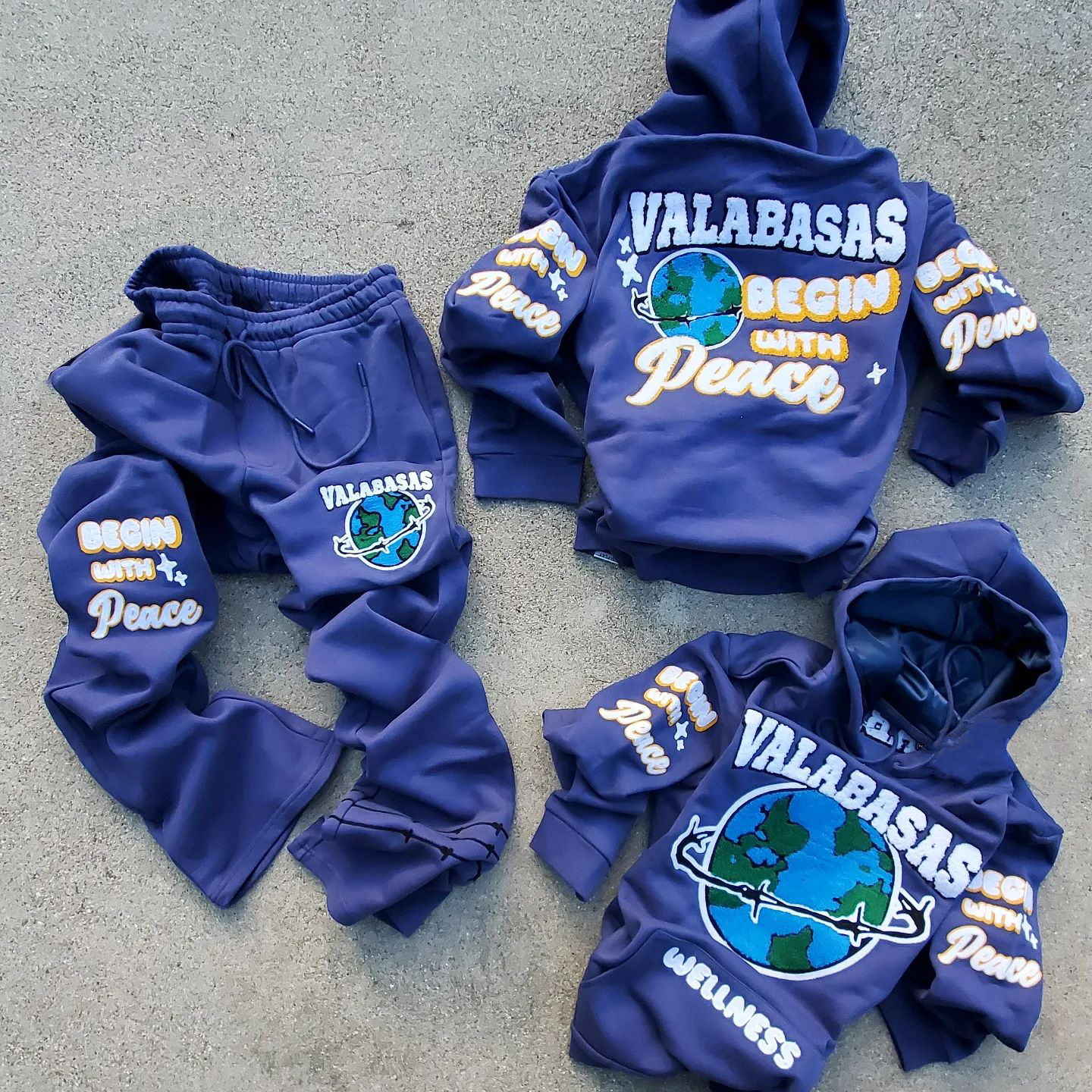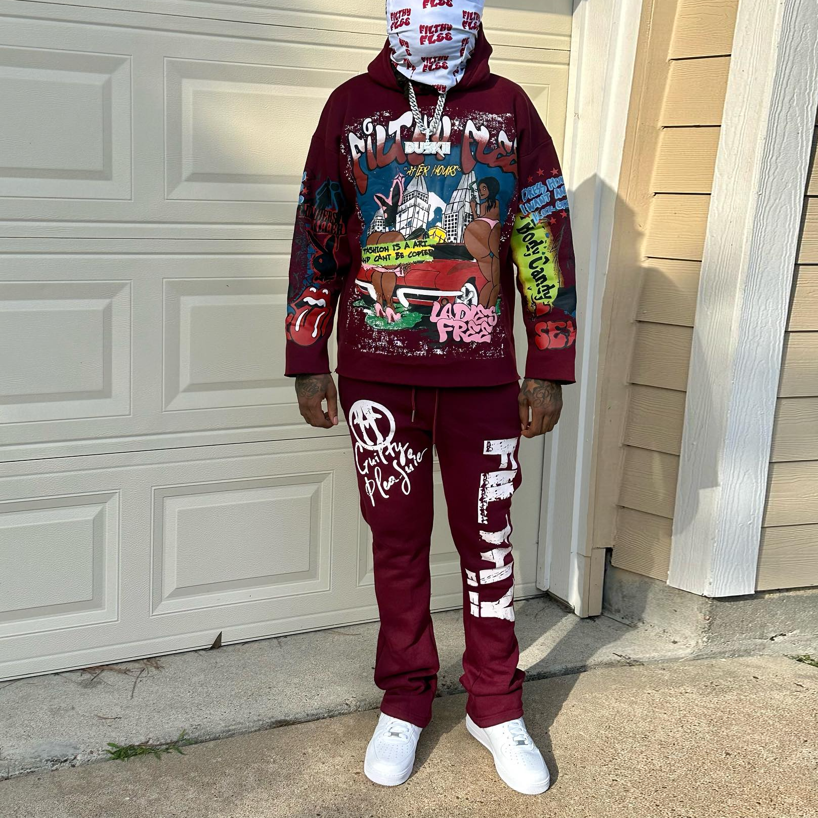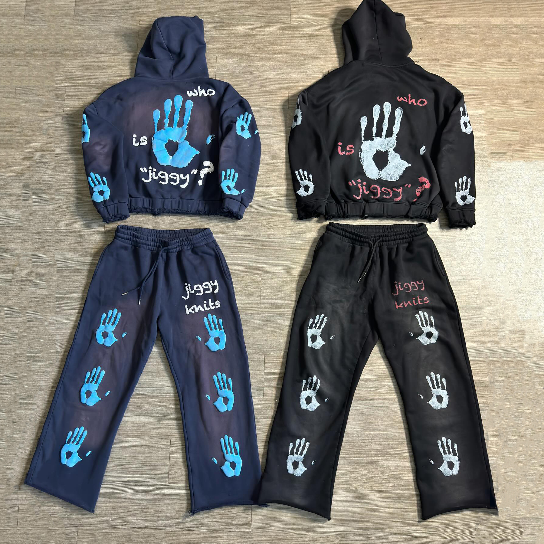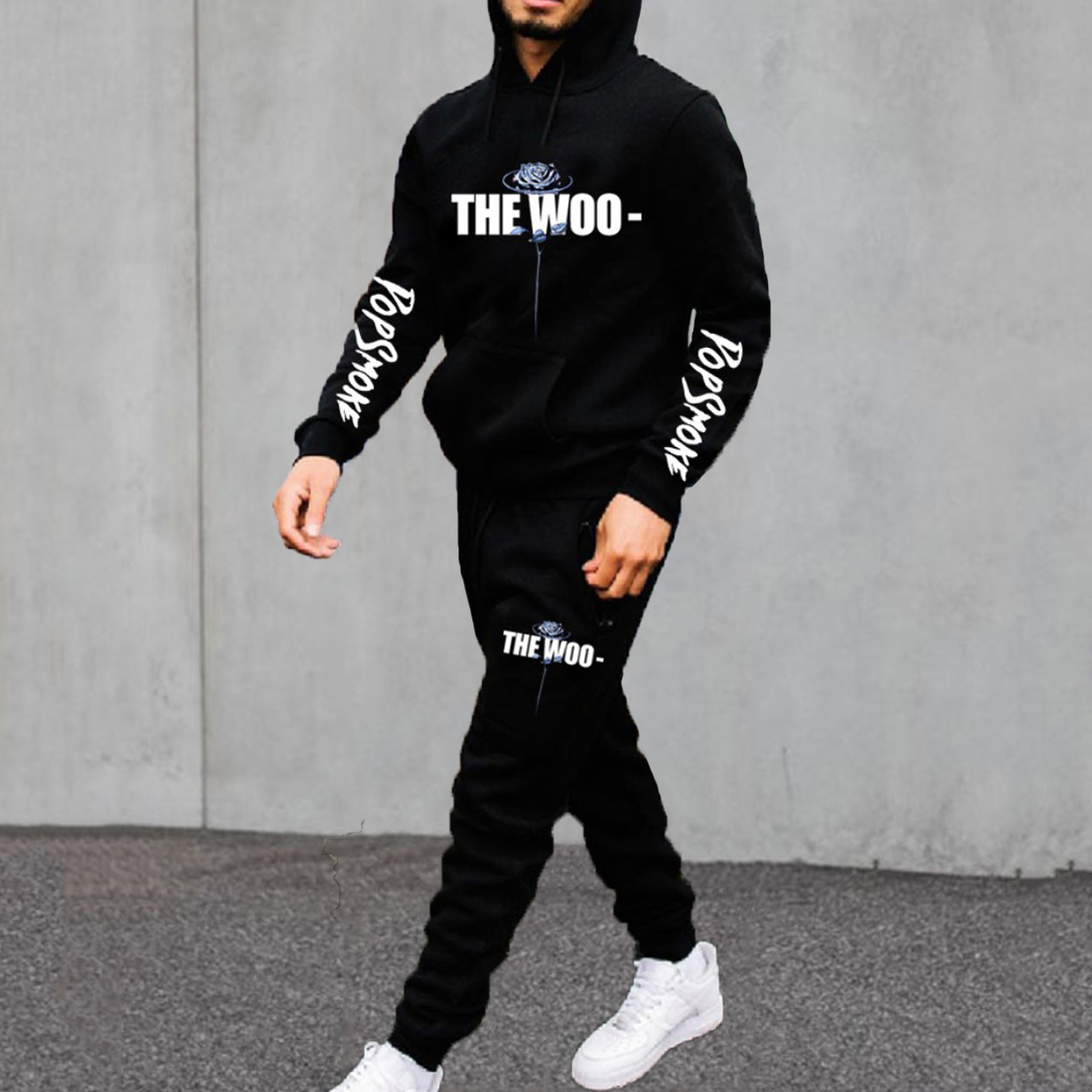 Casual The Woo Print Hoodie And Pants Two Piece Set