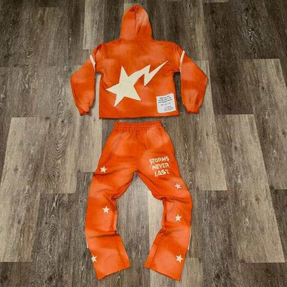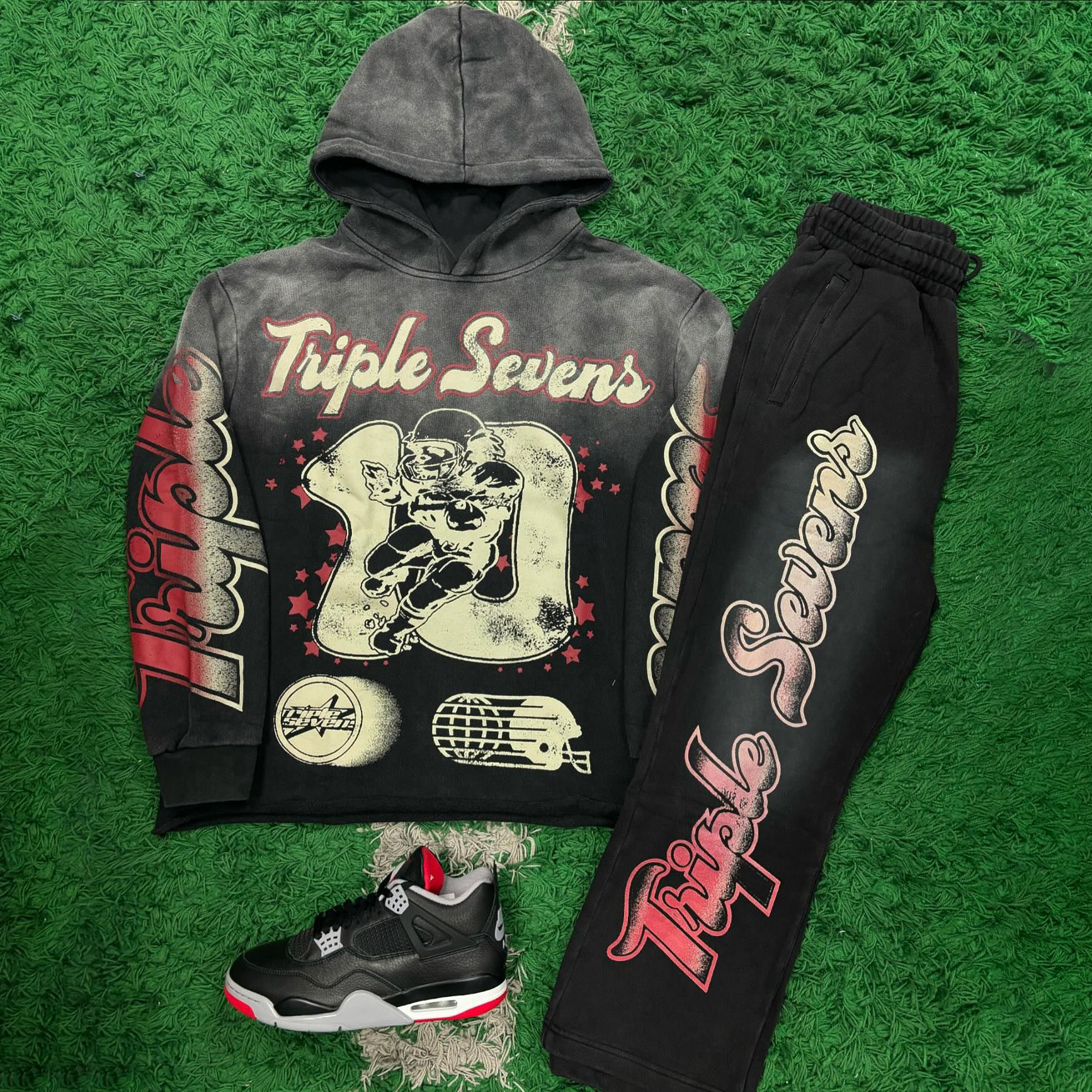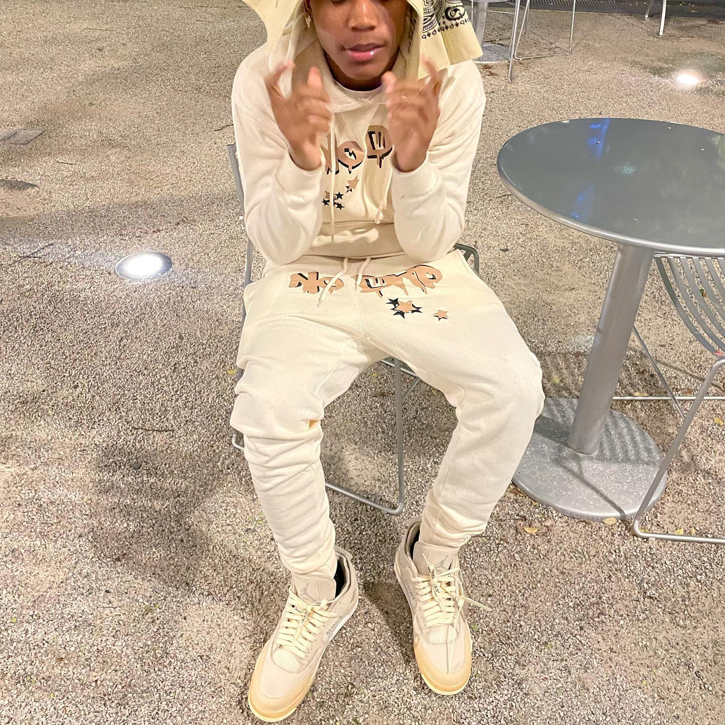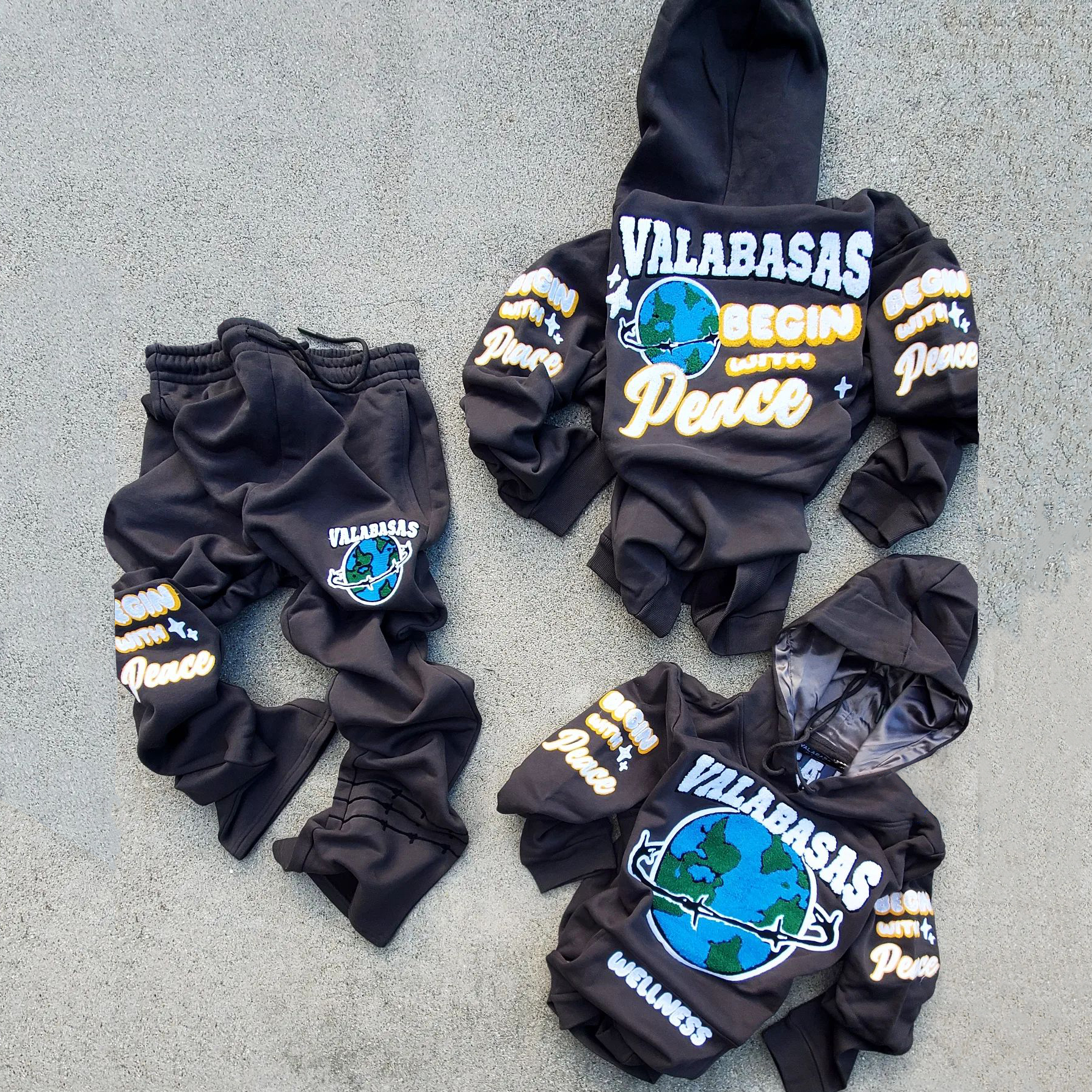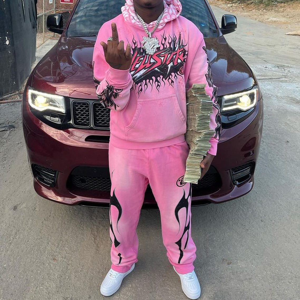Casual The Woo Print Hoodie And Pants Two Piece Set