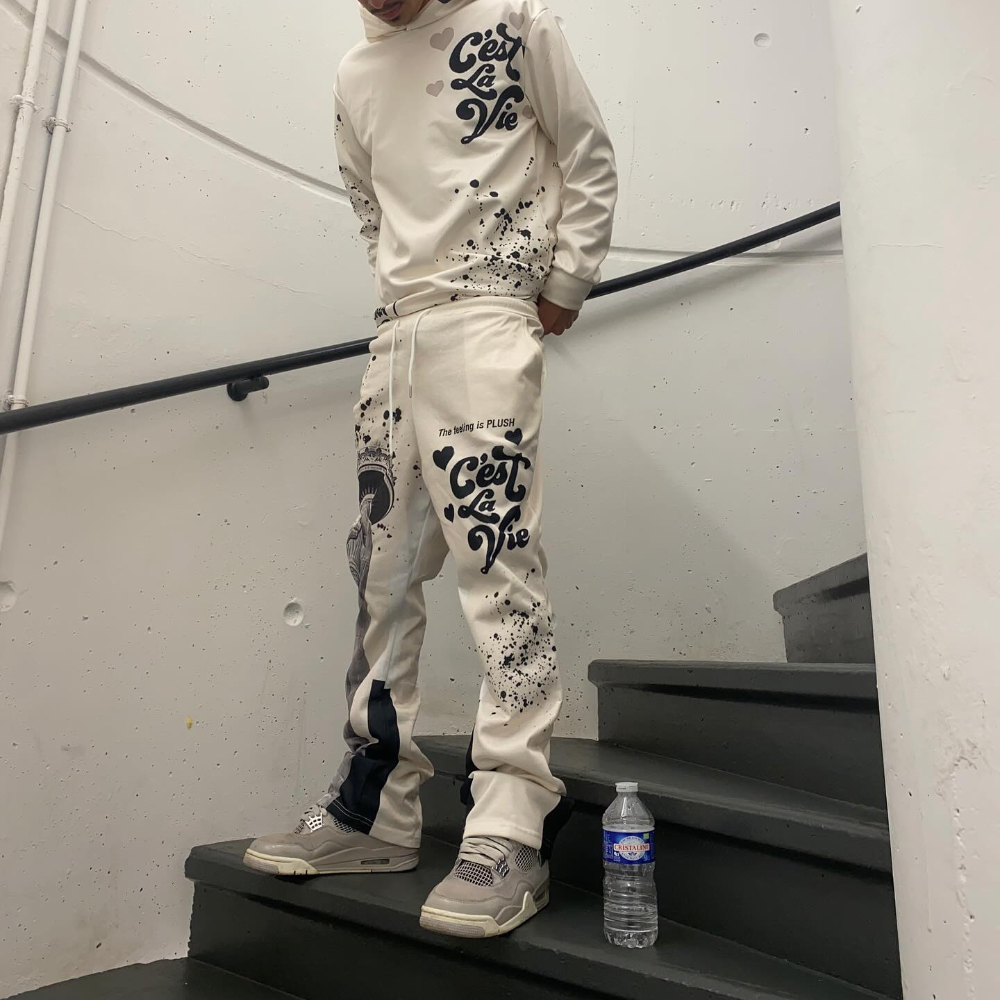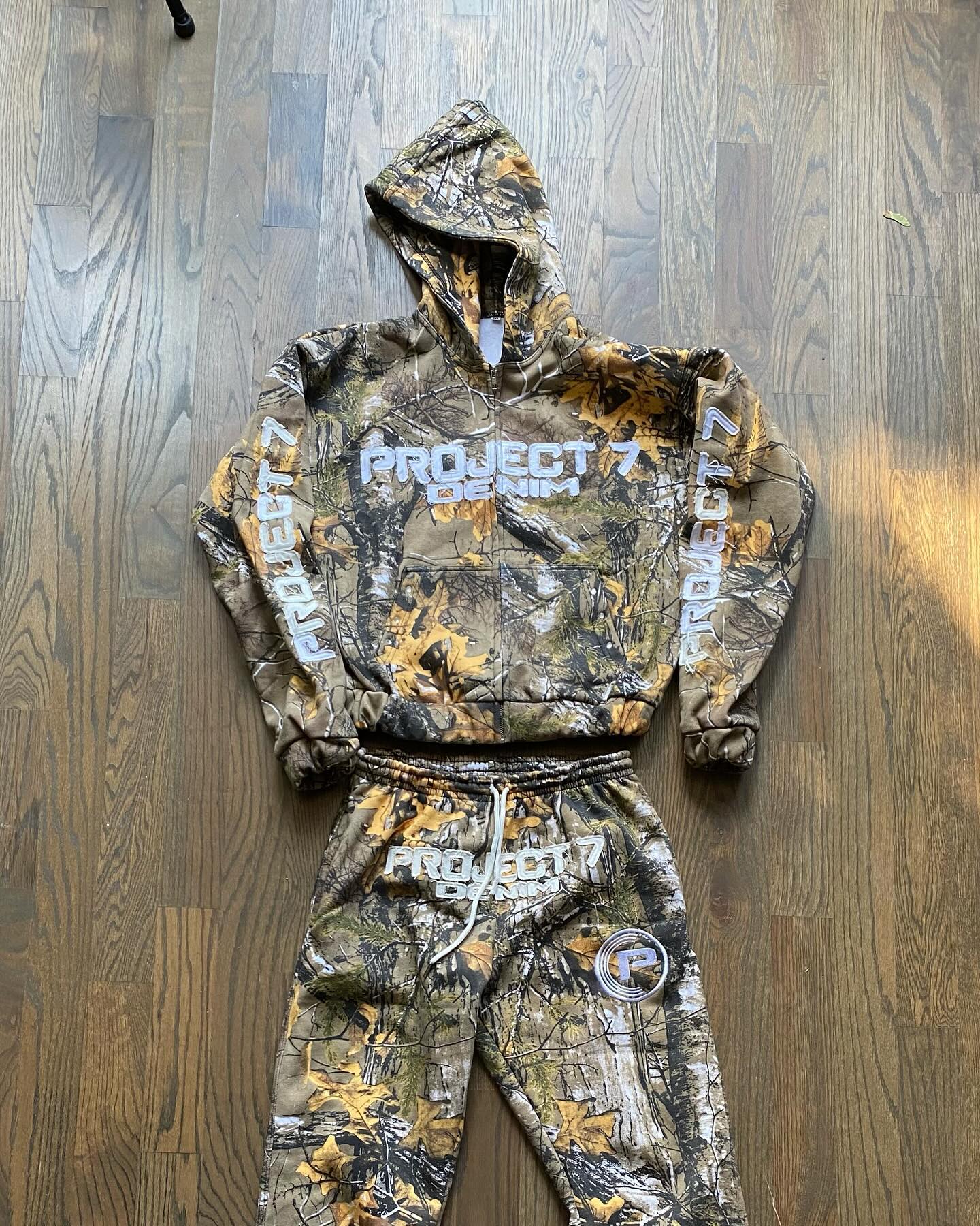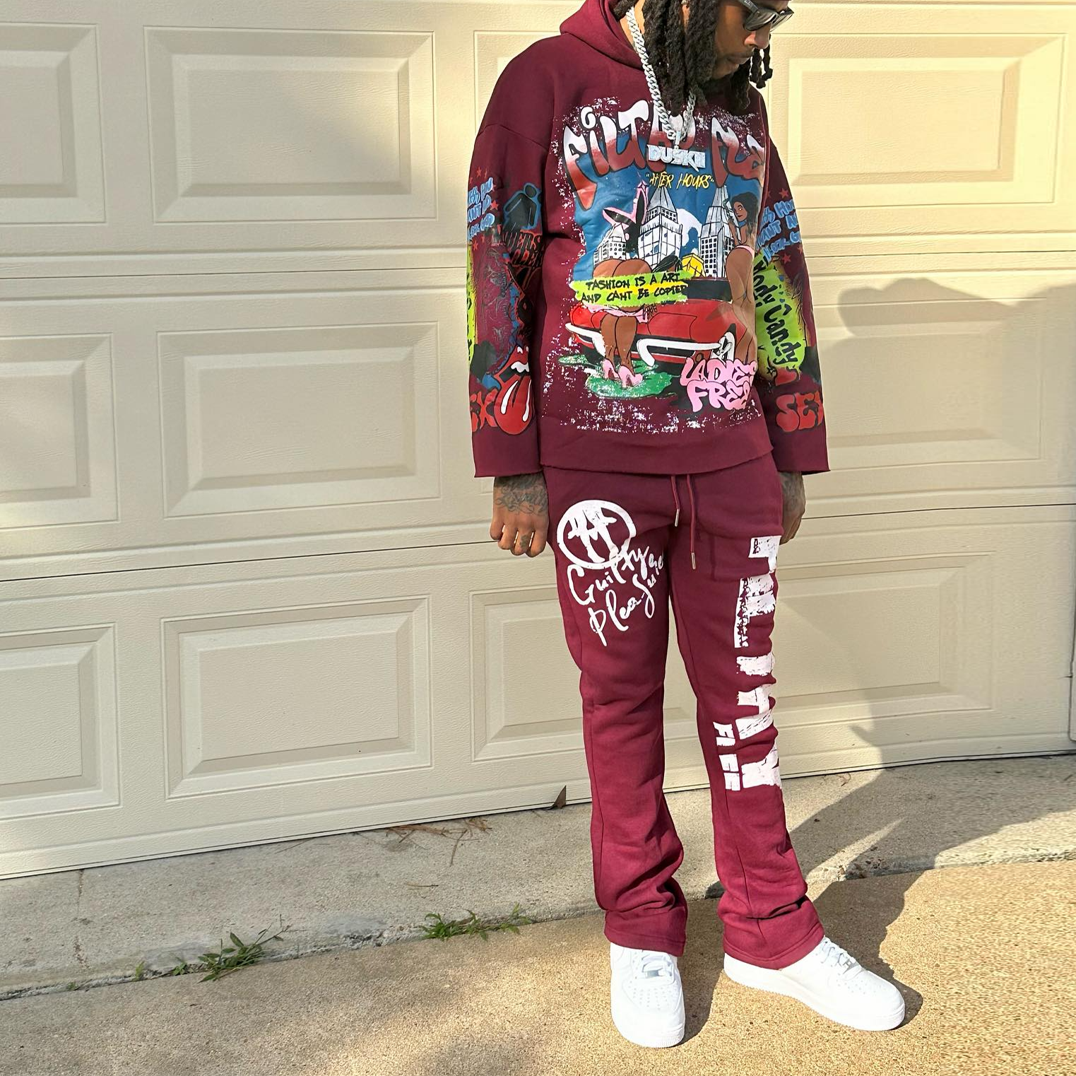 Graffiti Zip-Up Hoodie and Pants Two-Piece Set