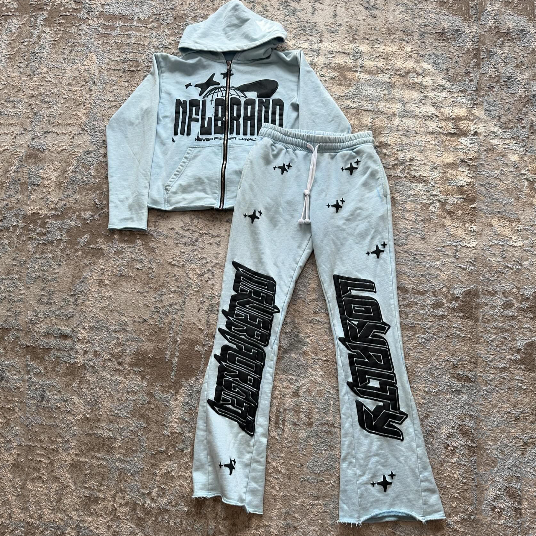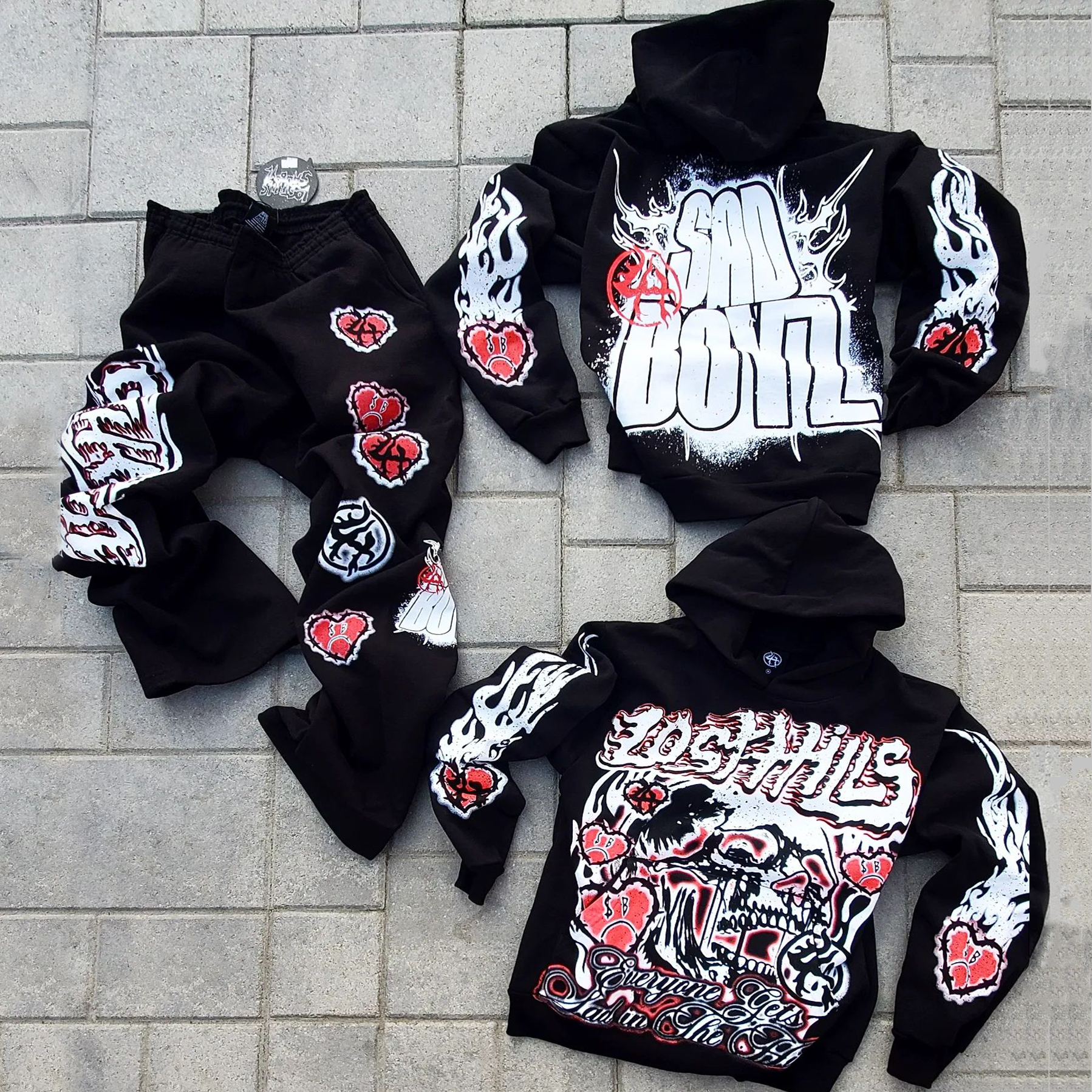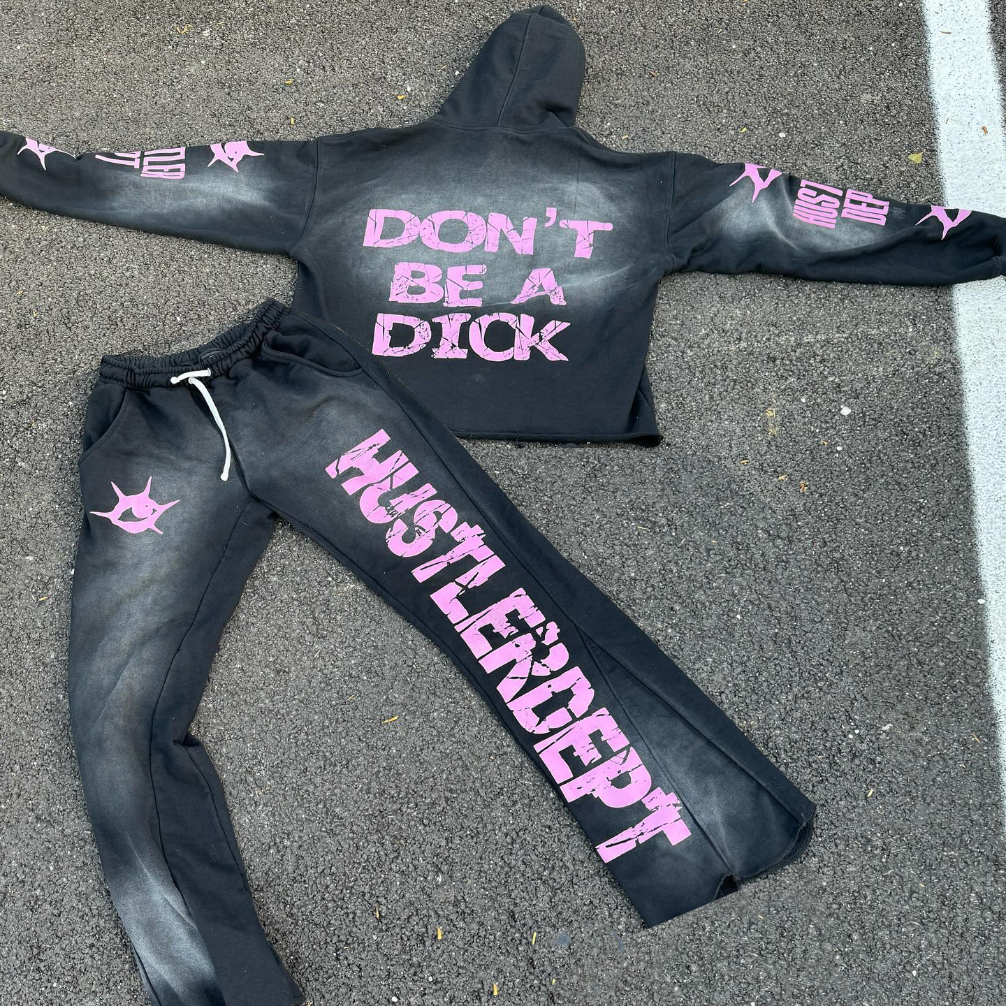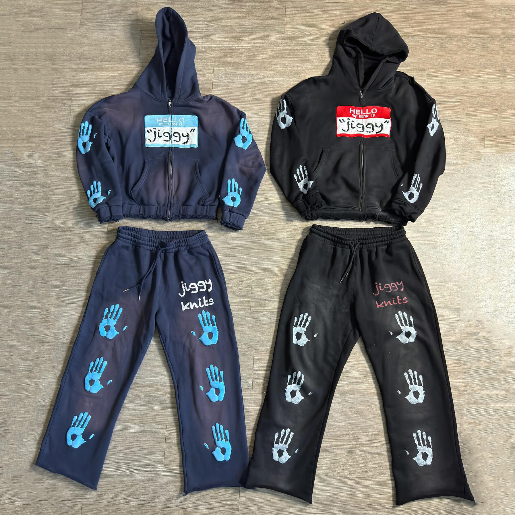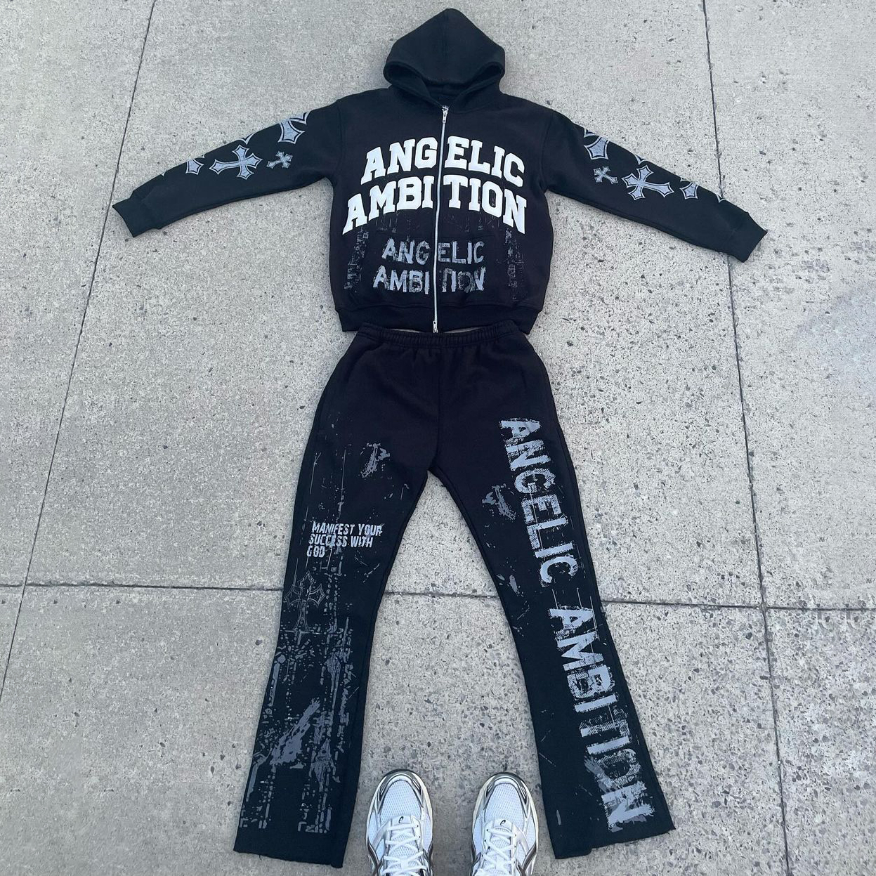 Hip Hop Street Zipper Hoodie Pants Two-Piece Set