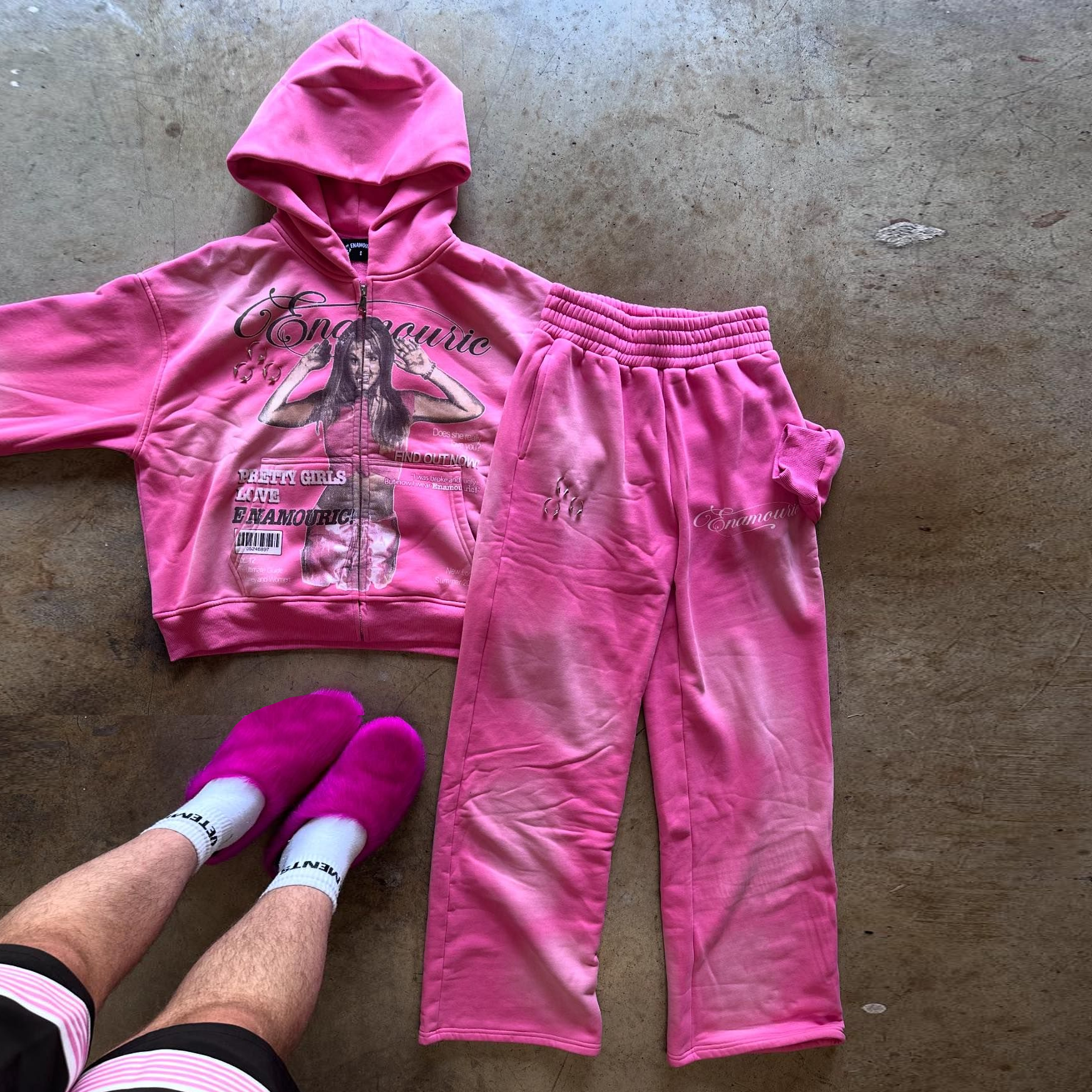 Vintage Zip-Up Hoodie and Trousers Two-Piece Set