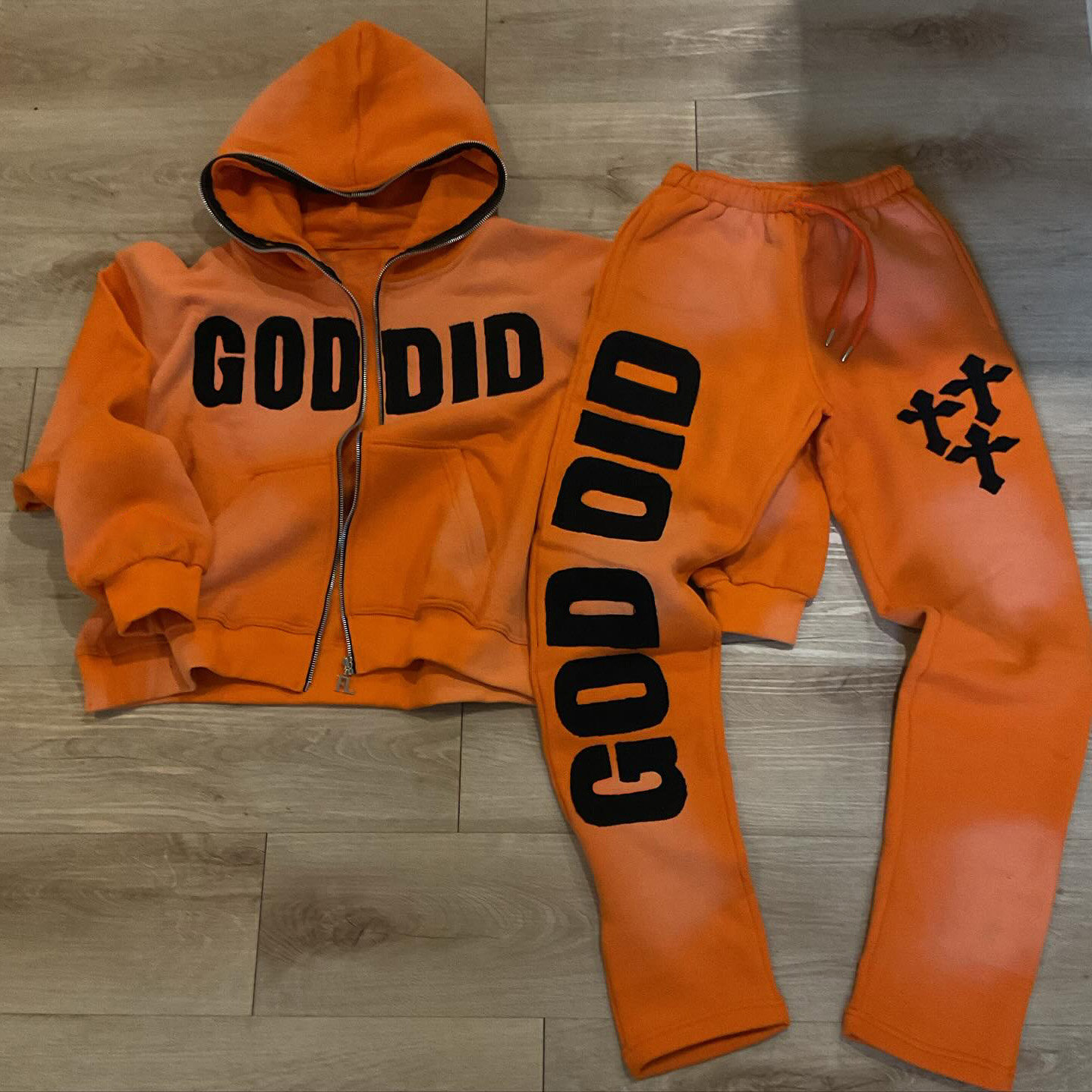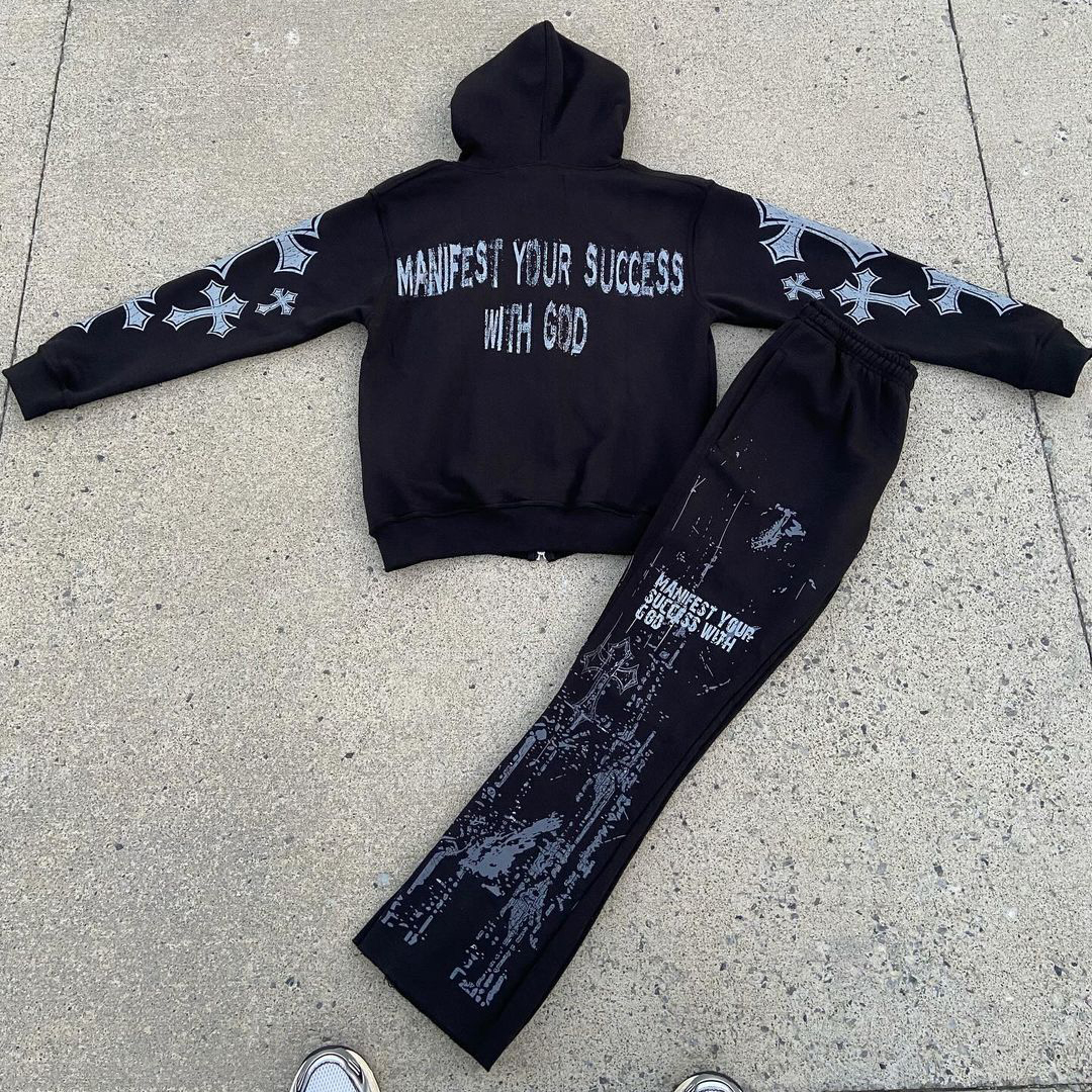 Jesus Zipper Sweatshirt Casual Two-Piece Set