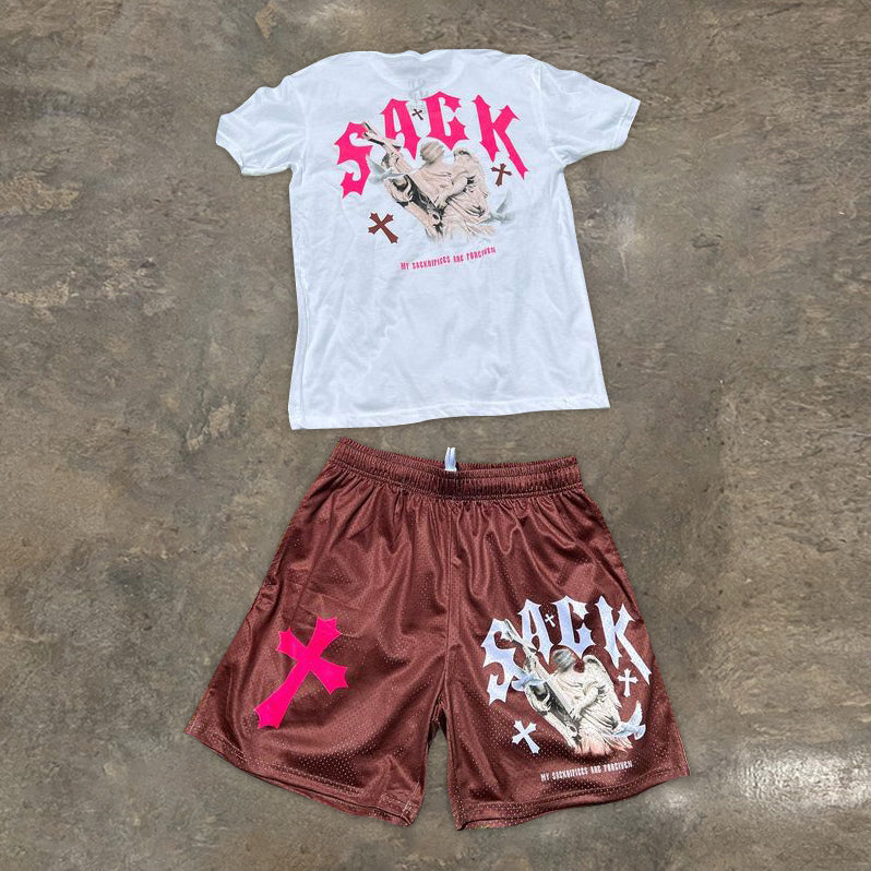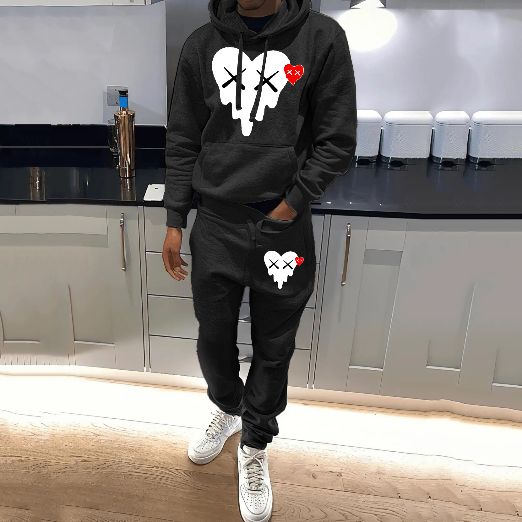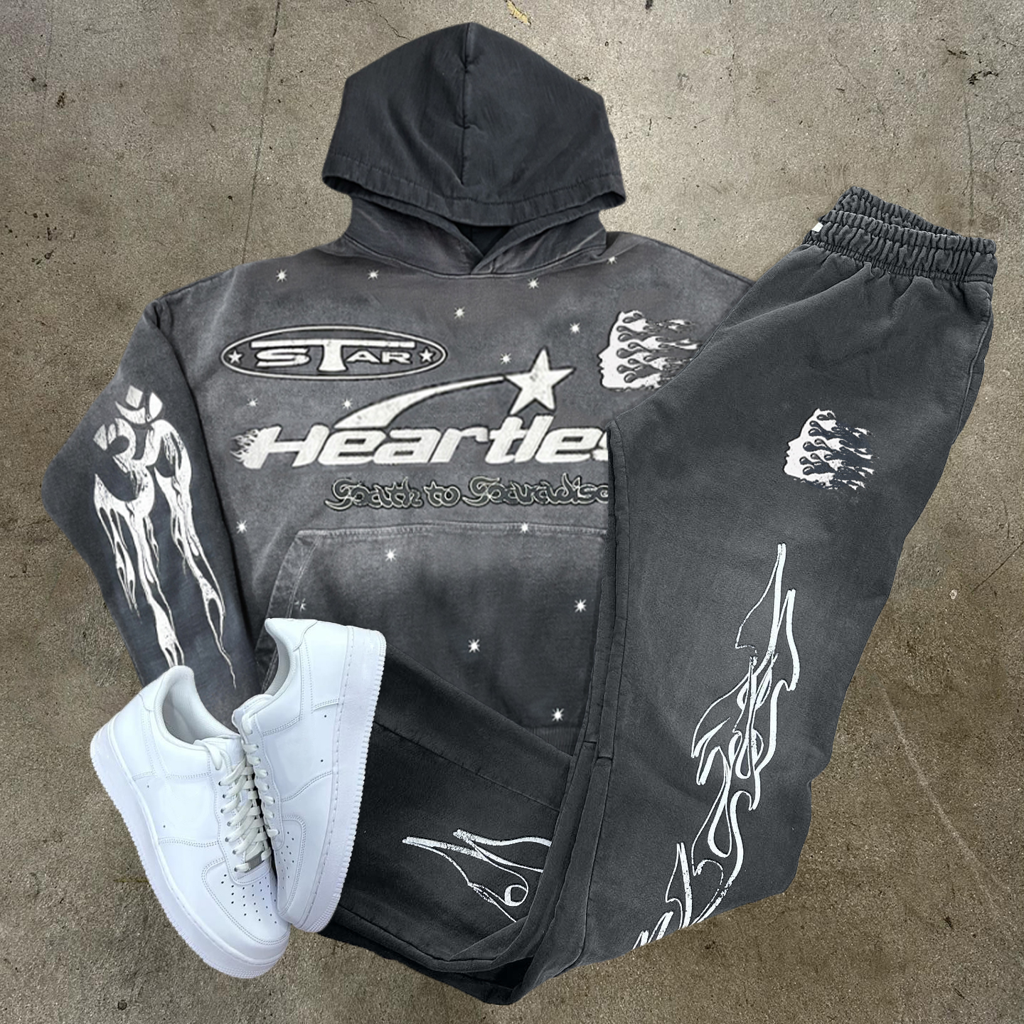 Fashion Heartless Print Hoodie Sweatpants Two Piece Set