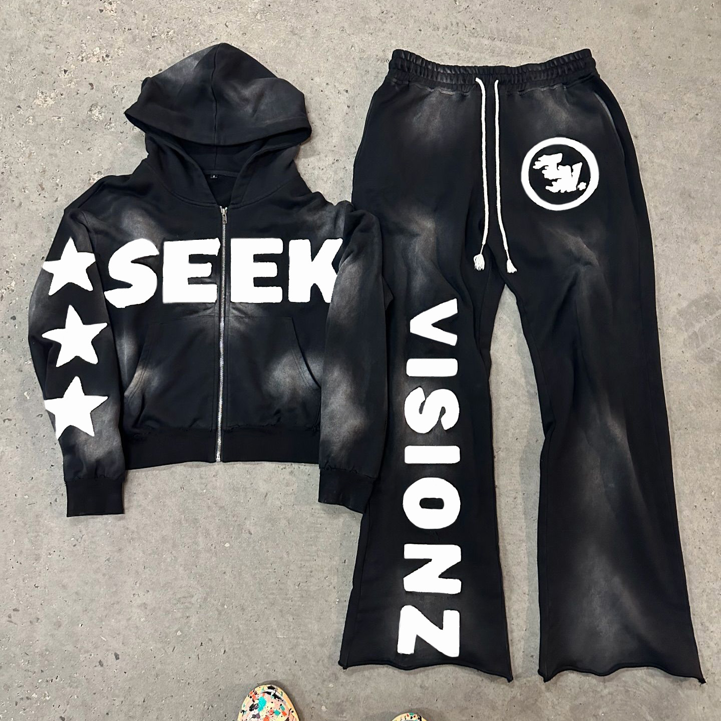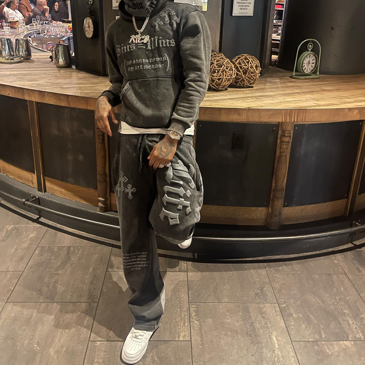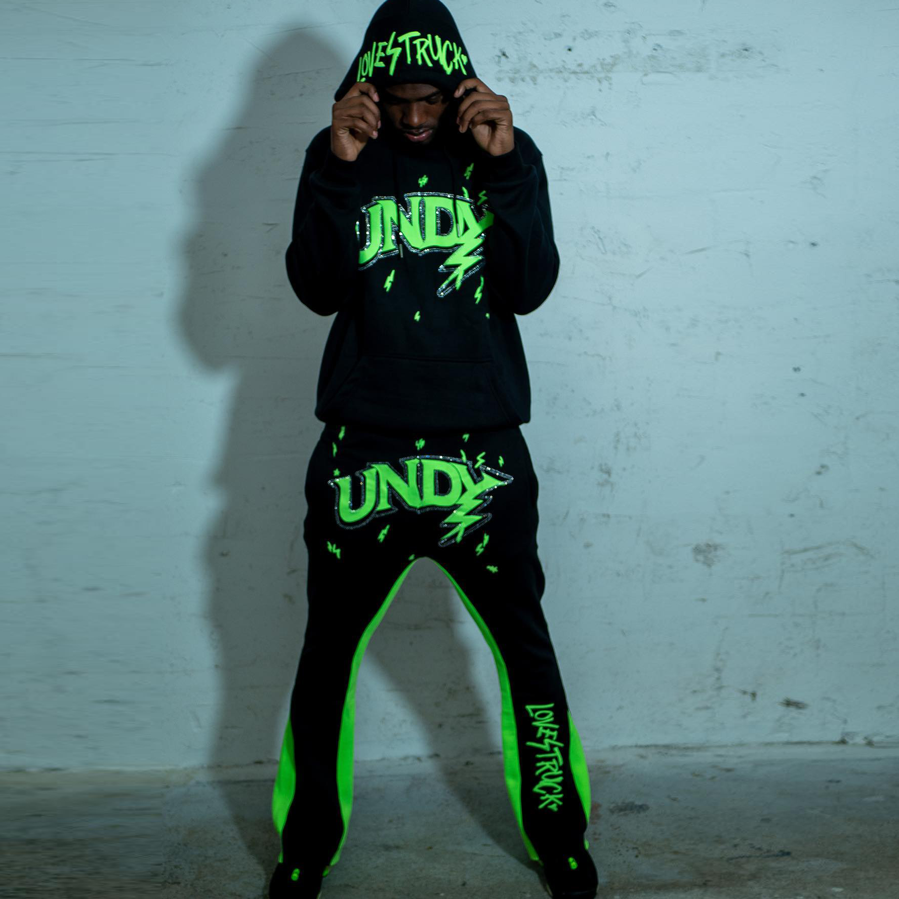 Raffer Black Hoodie/Track Pant Super Stacked Flare Track Set