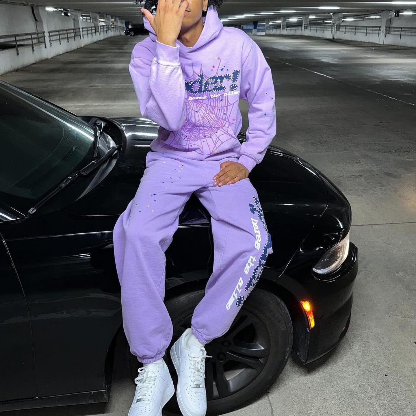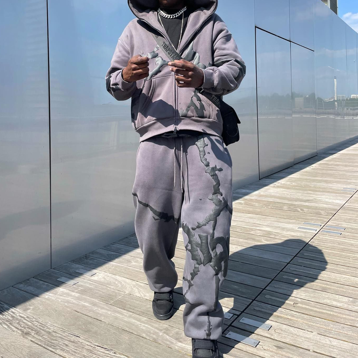 Casual street patchwork printed hoodie and trousers two-piece suit
