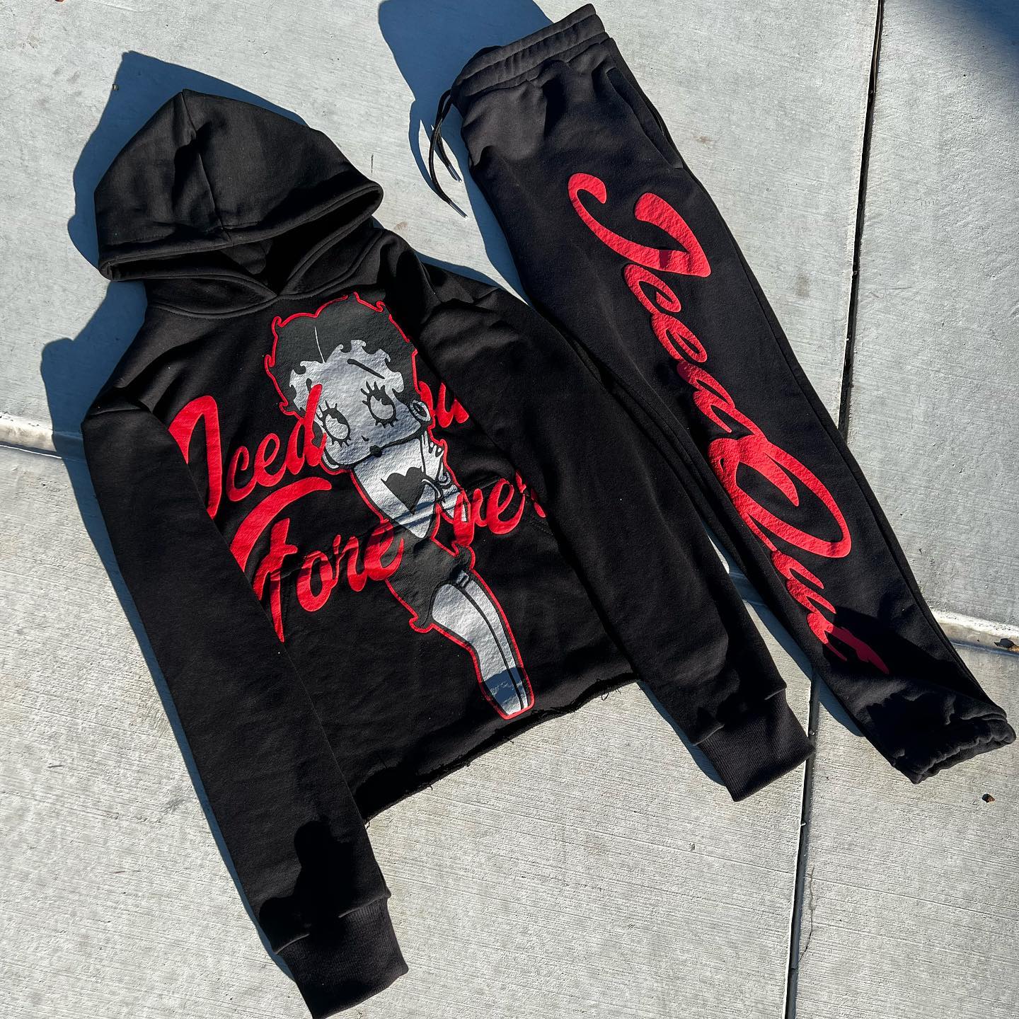 Heartless Print Hoodie Sweatpants Two Piece Set