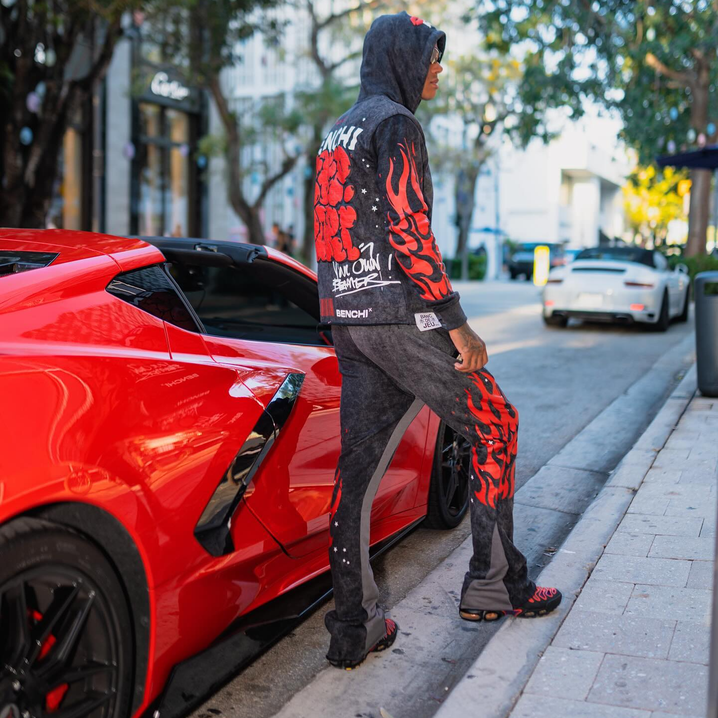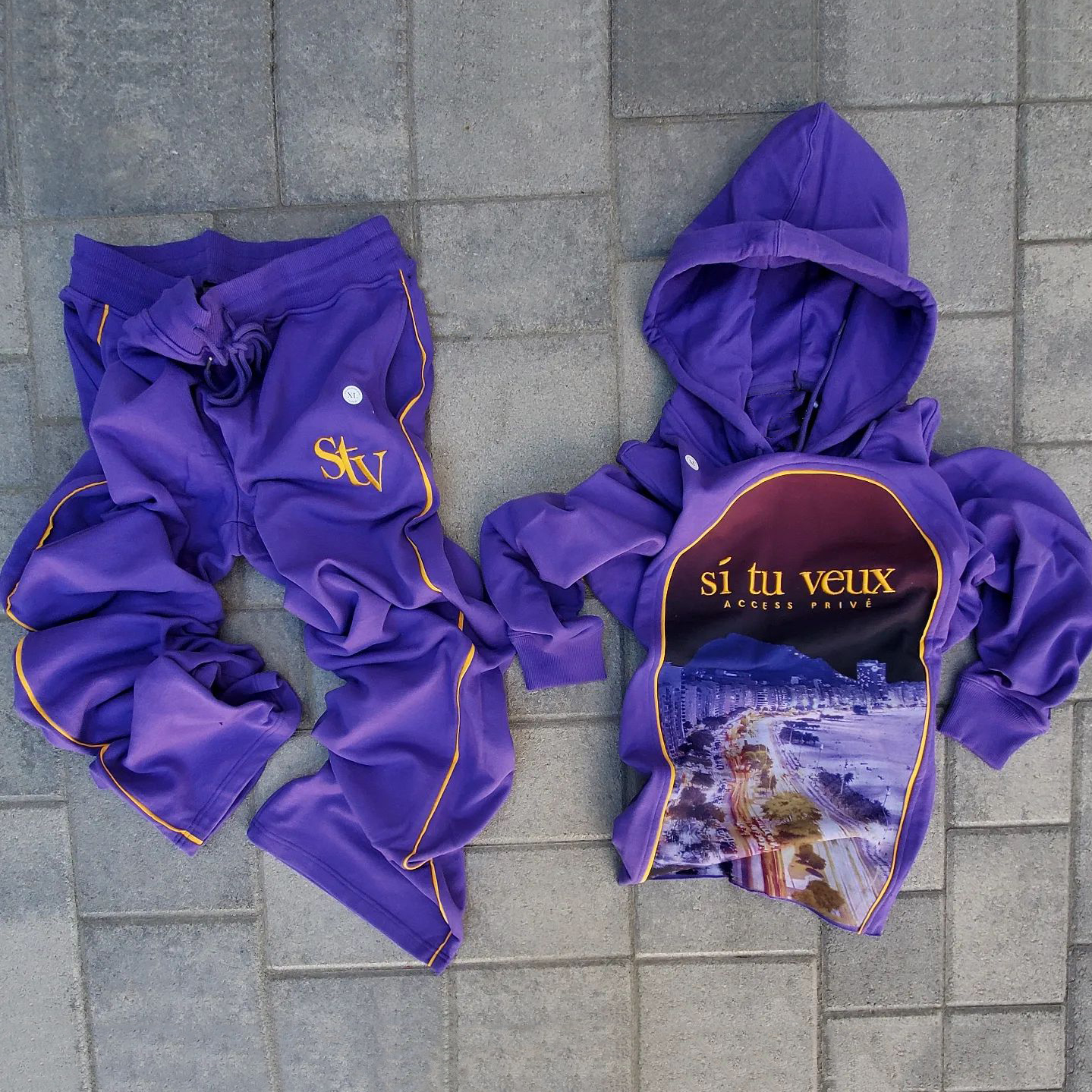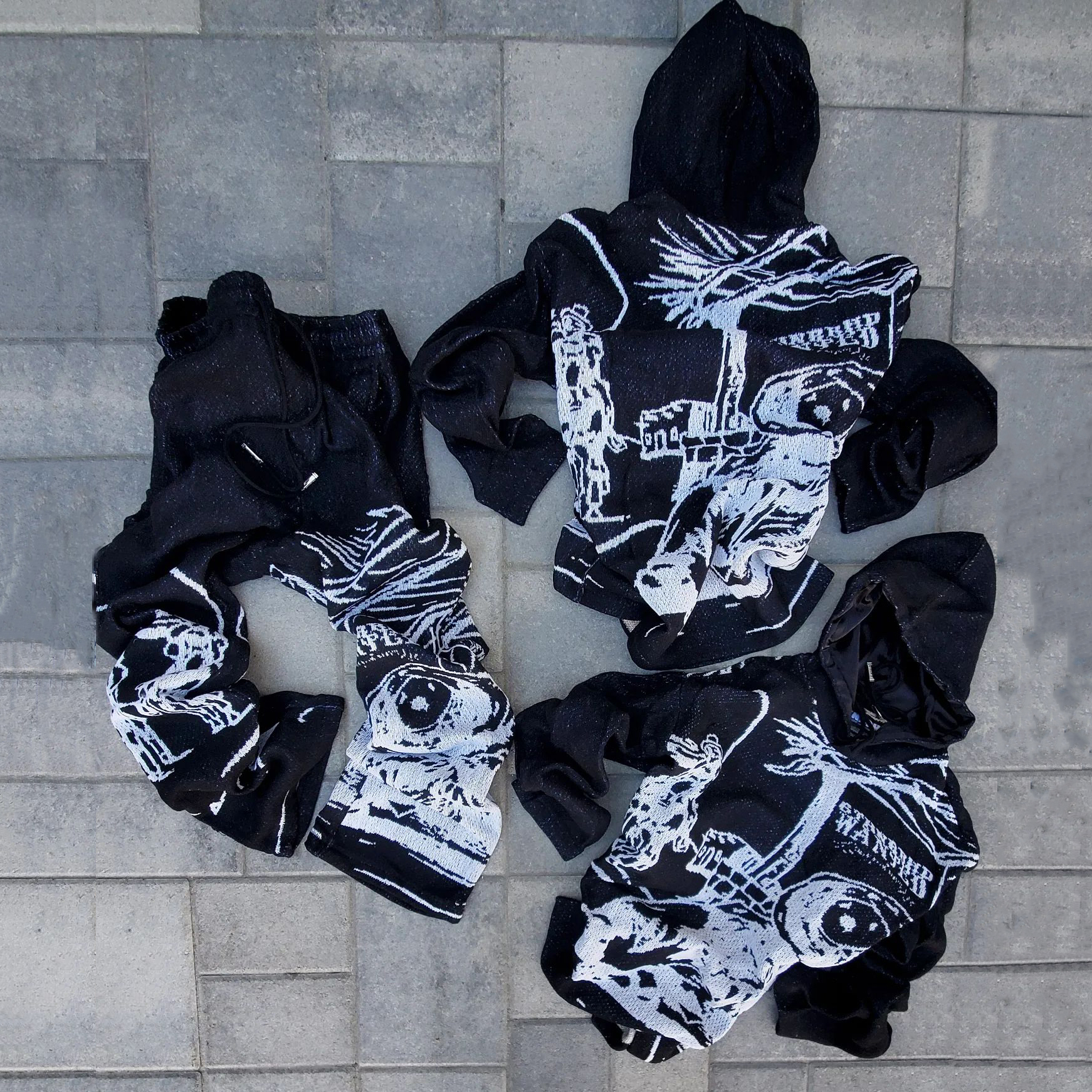 Digital Stripe Zip-Up Hoodie Pants Two-Piece Set