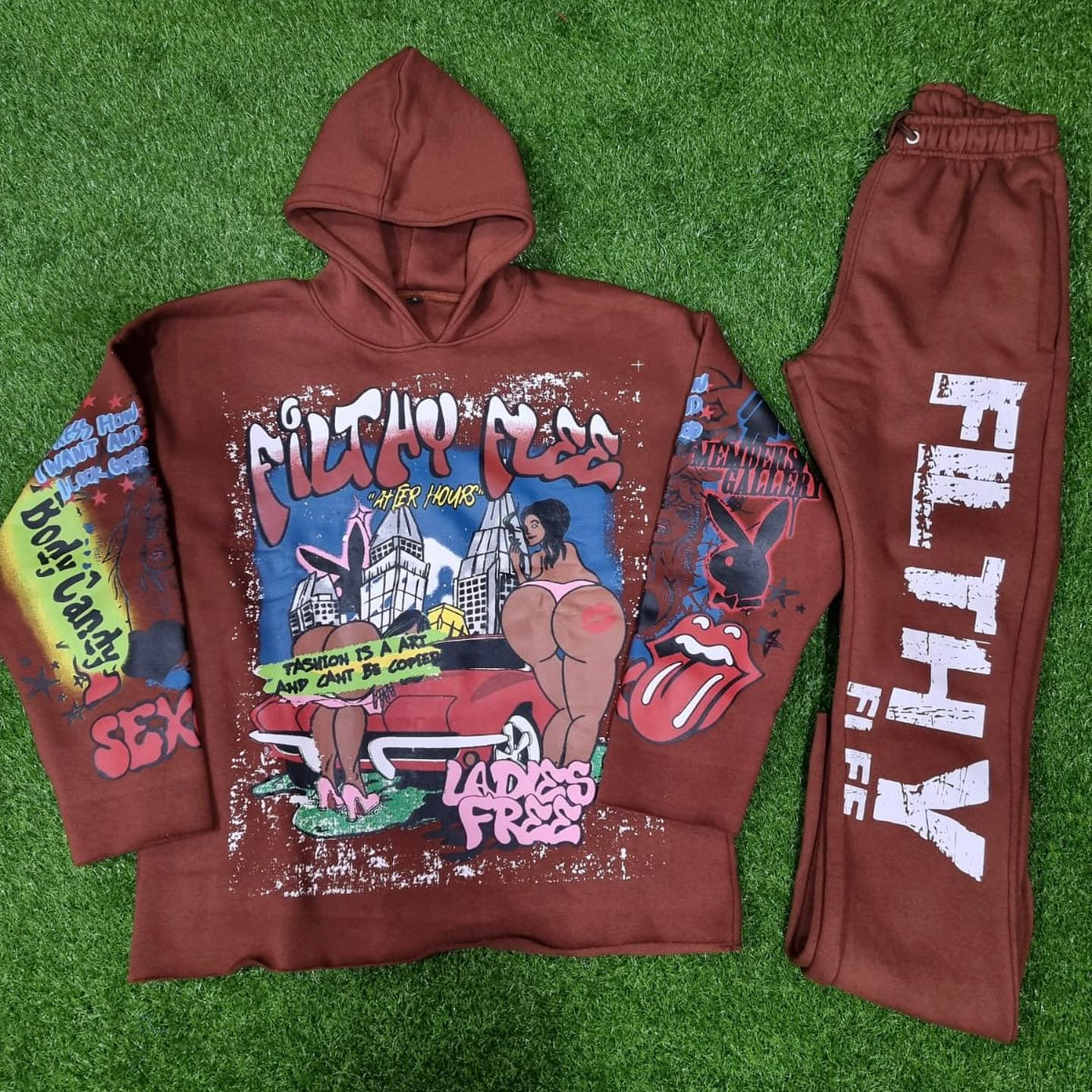 Lettering and Stars Print Gradient Hoodie Two-Piece Set