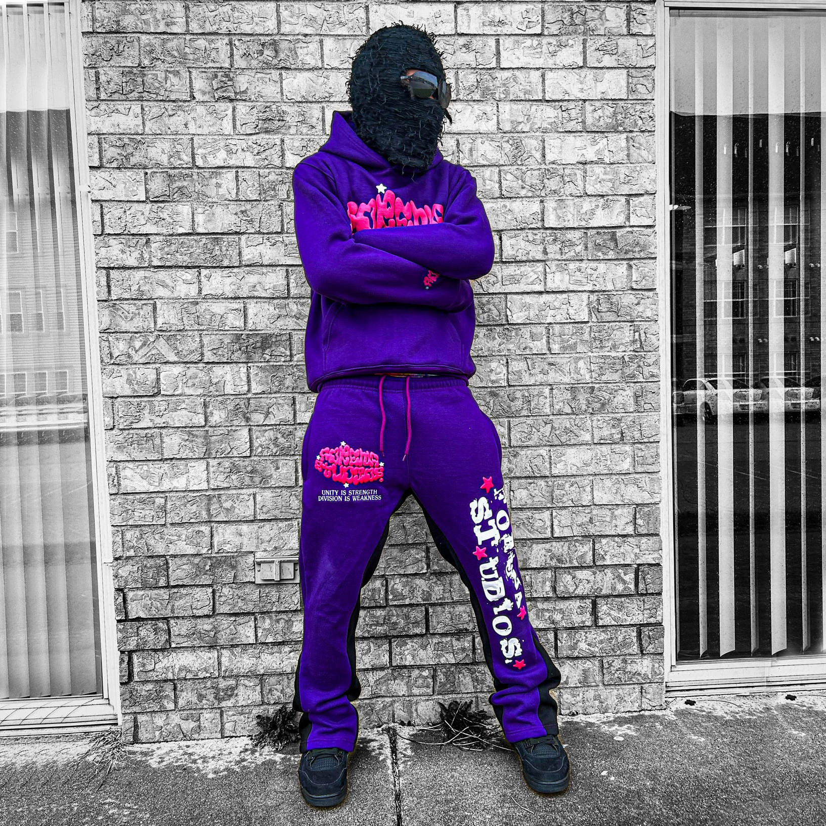 Casual street patchwork printed hoodie and trousers two-piece suit