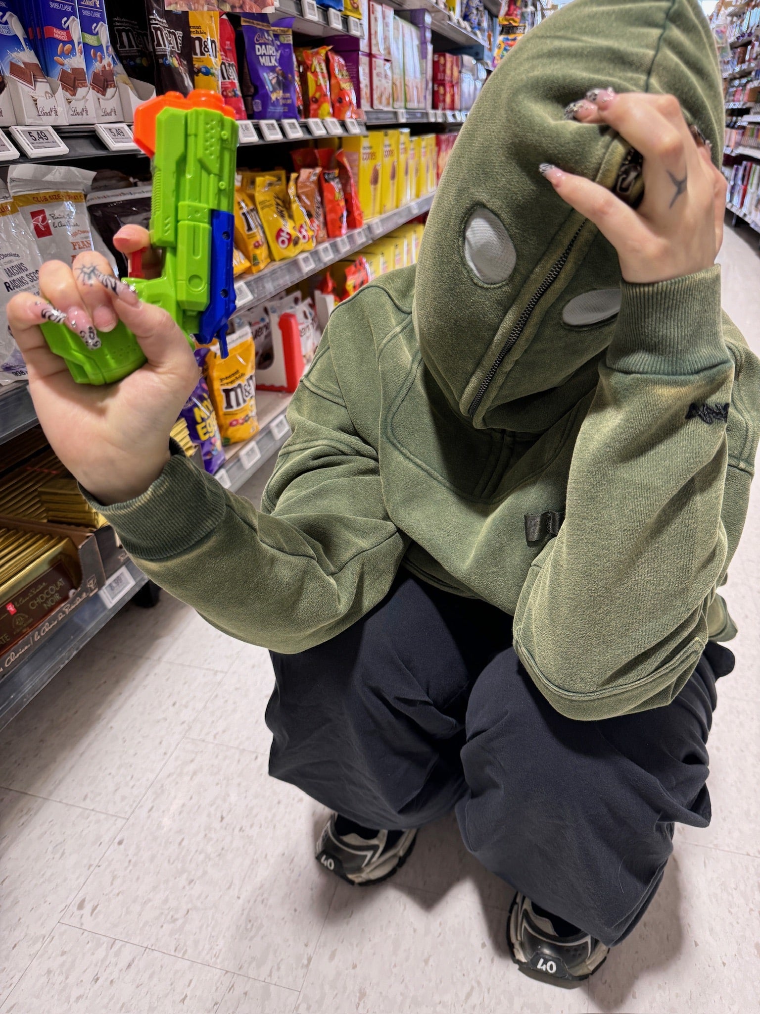 This is our classic hoodie made of double-layer thick acid washed French terry. Embroideries on both sides. The hoodie has 7 pockets and holders for three pens on the chest. The hood has a full zipline with see-through areas for the eyes