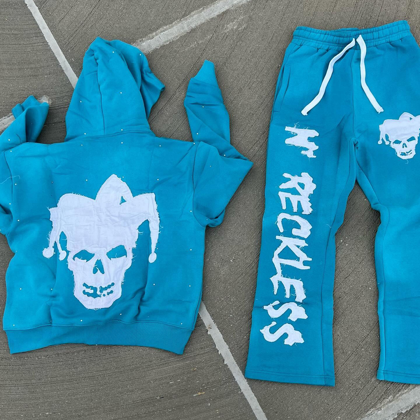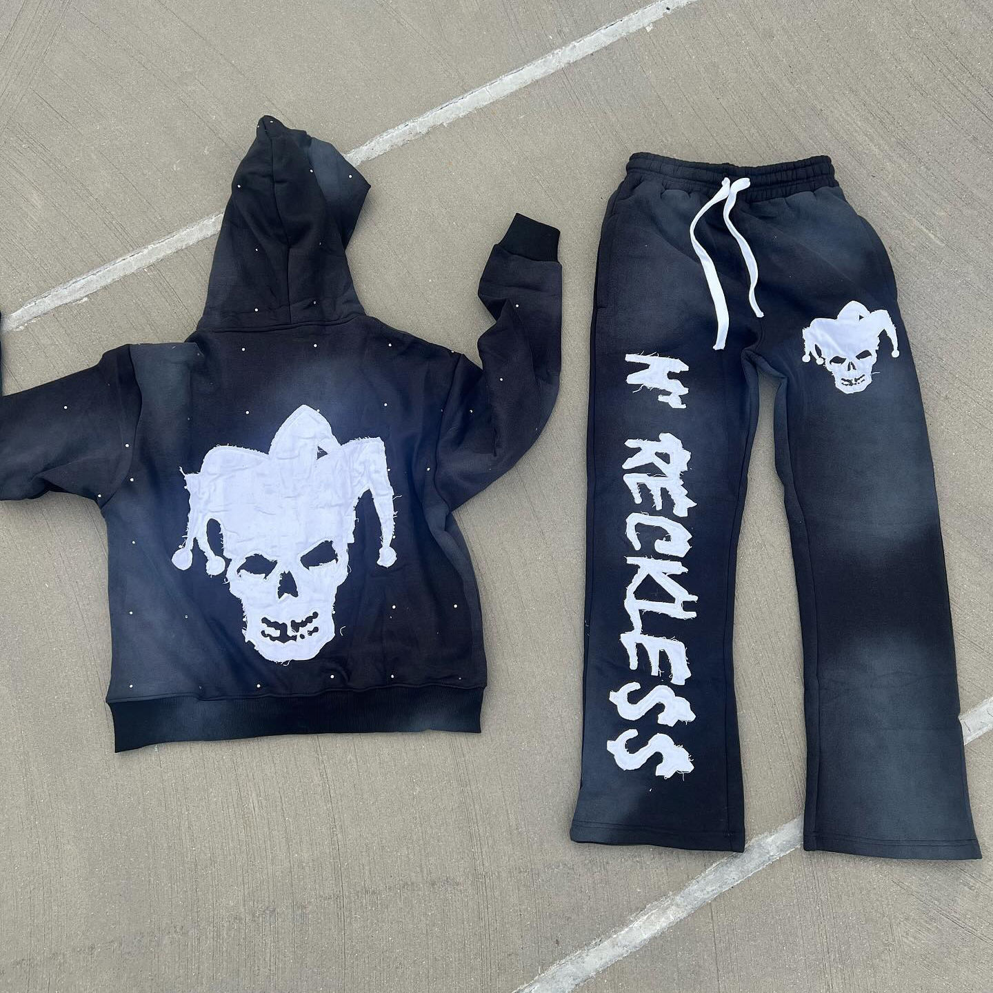 Devil casual street zip-up hoodie trousers two-piece set