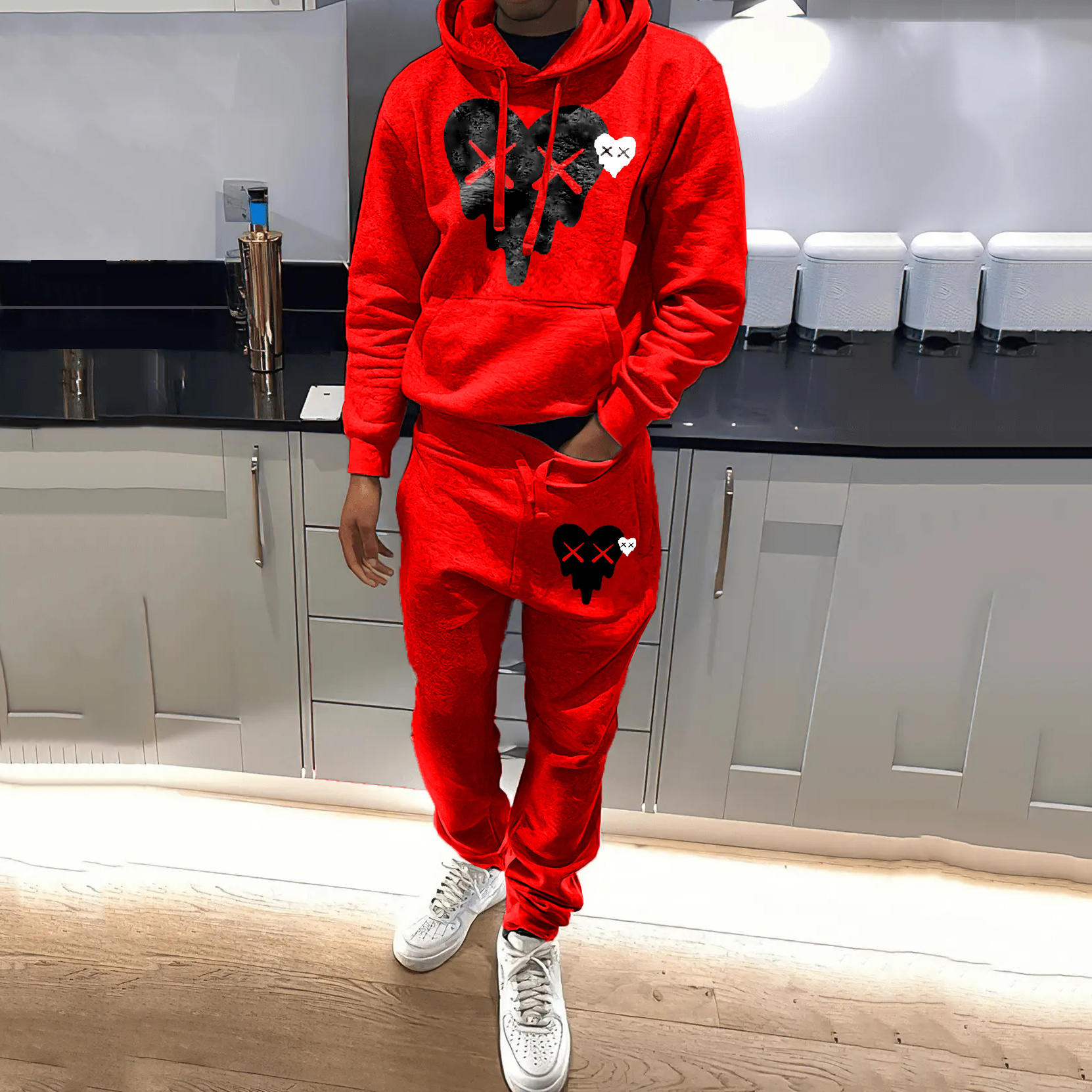 Emoticon Heart Print Hoodie Sweatpants Two Piece Set