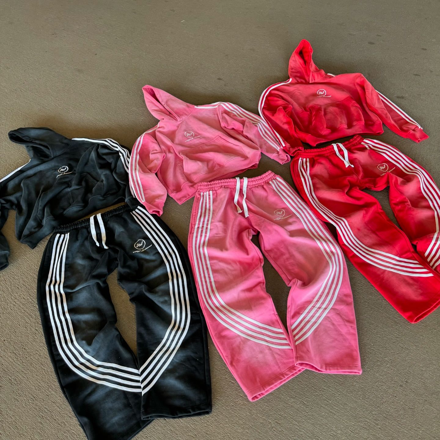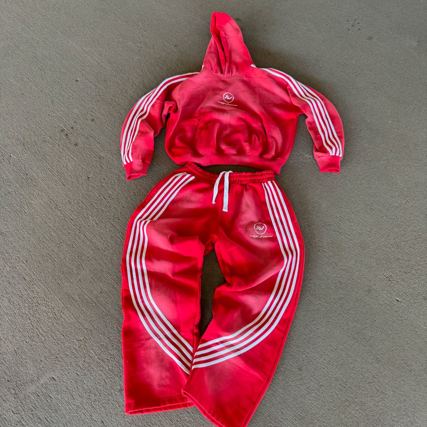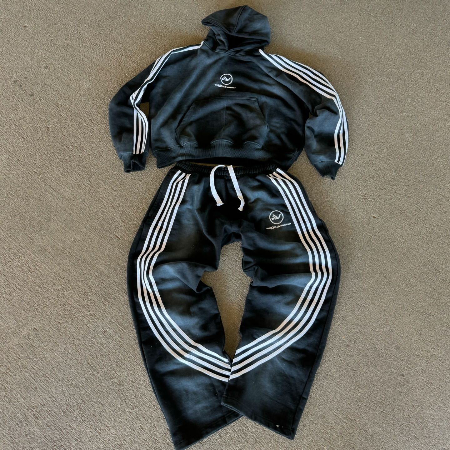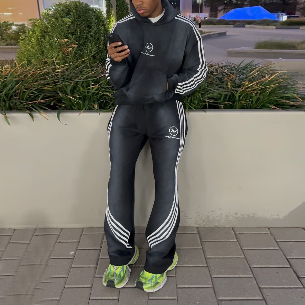 Street Style Stripe Print Hoodie Casual Set