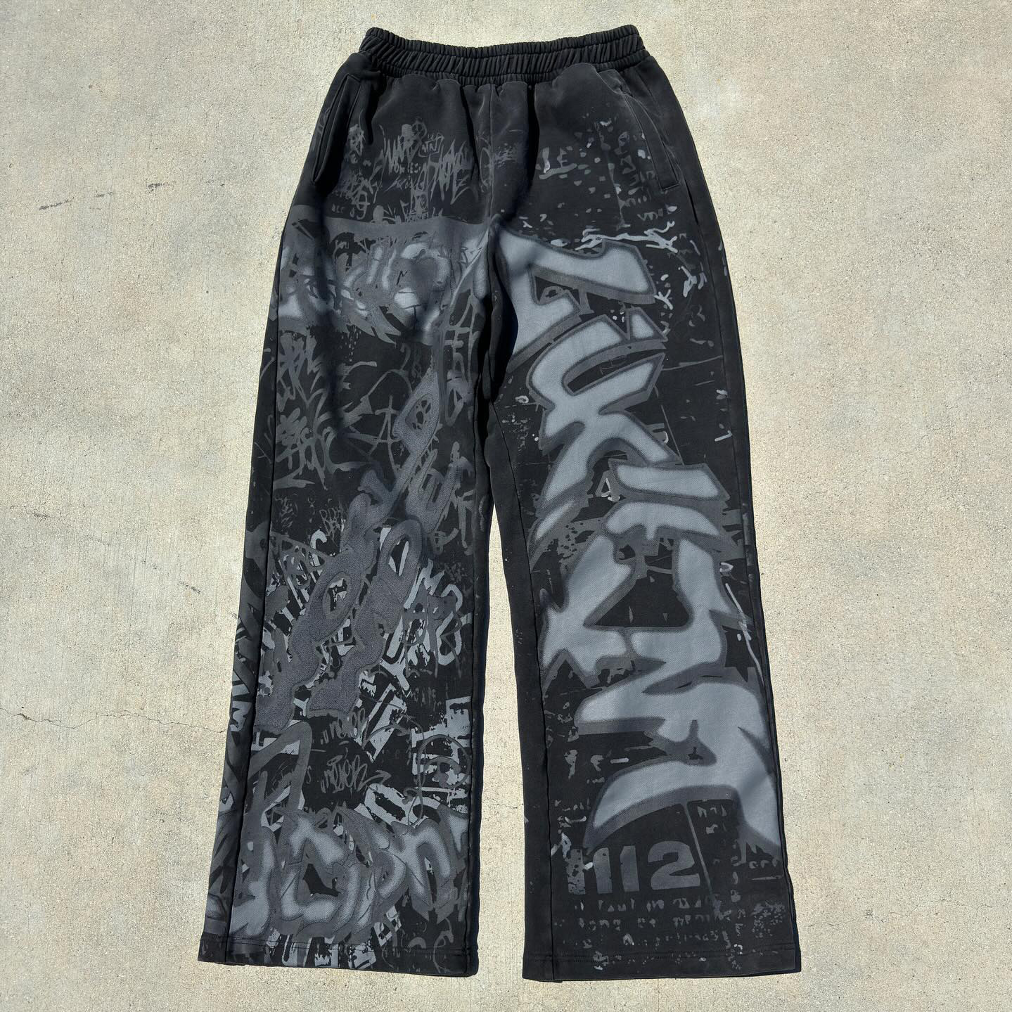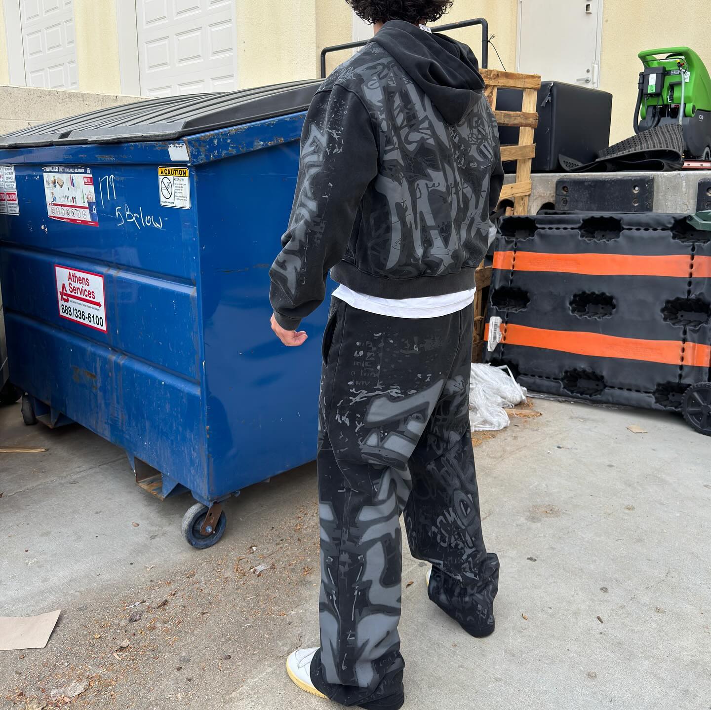 Graffiti Zip-Up Hoodie and Pants Two-Piece Set