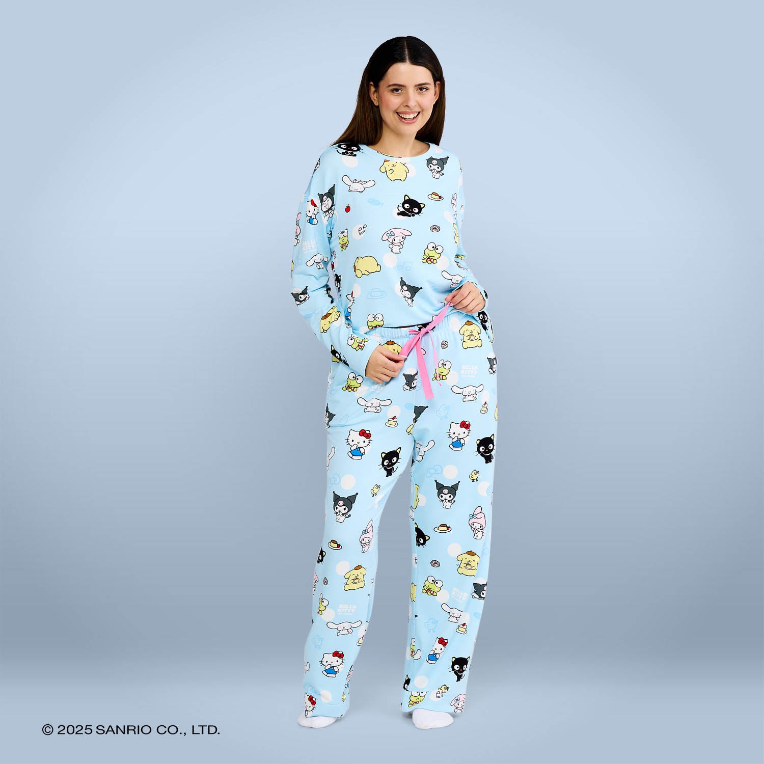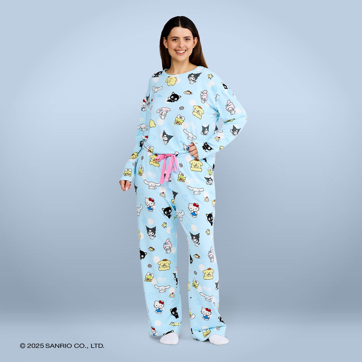 Rest easy in our wide leg pyjama pants featuring Hello Kitty, My Melody, Cinnamoroll, and friends. Cooling modal fabric keeps you fresh and comfortable all night long.