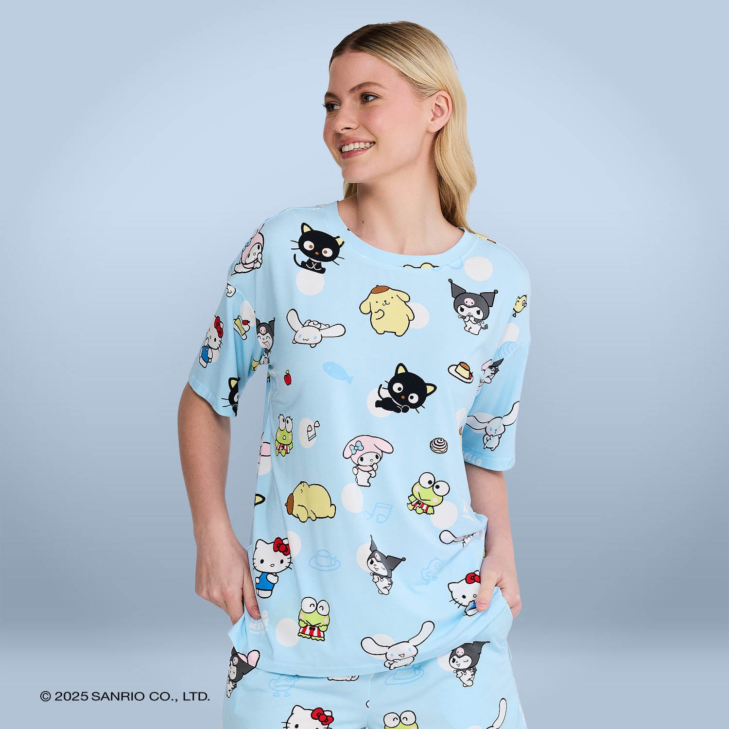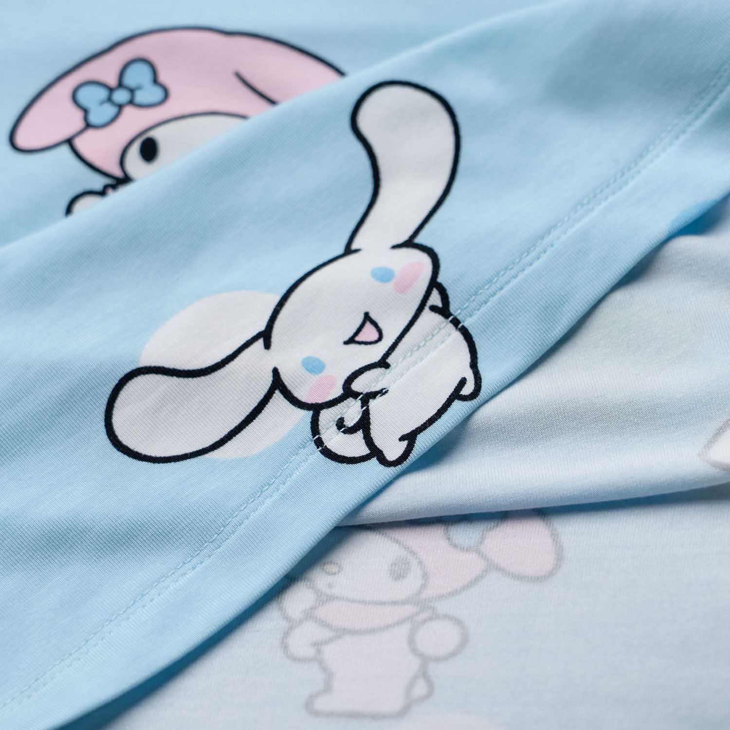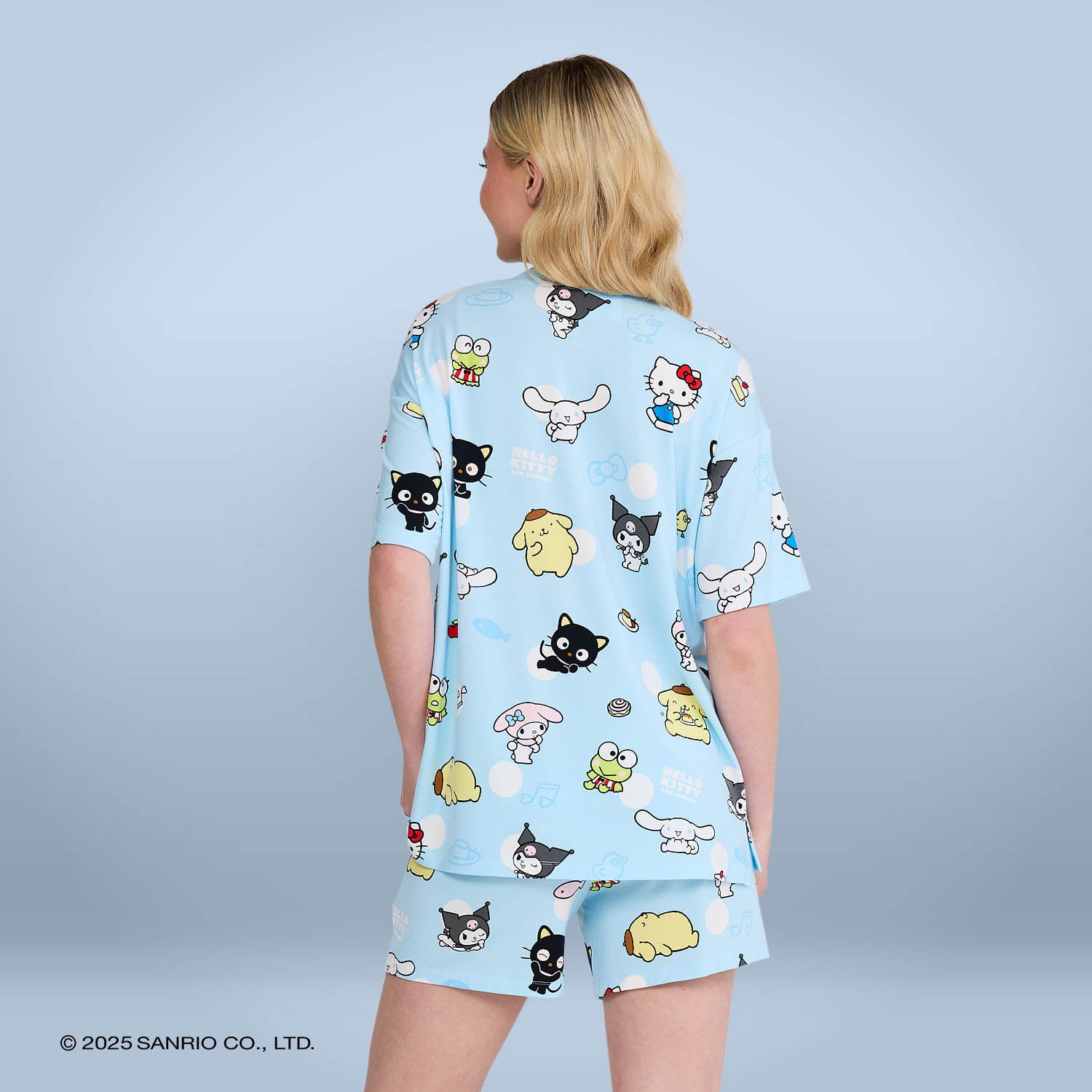 - All-over print features Hello Kitty, Pompompurin, My Melody, Keroppi, Chococat, Kuromi, and Cinnamoroll.