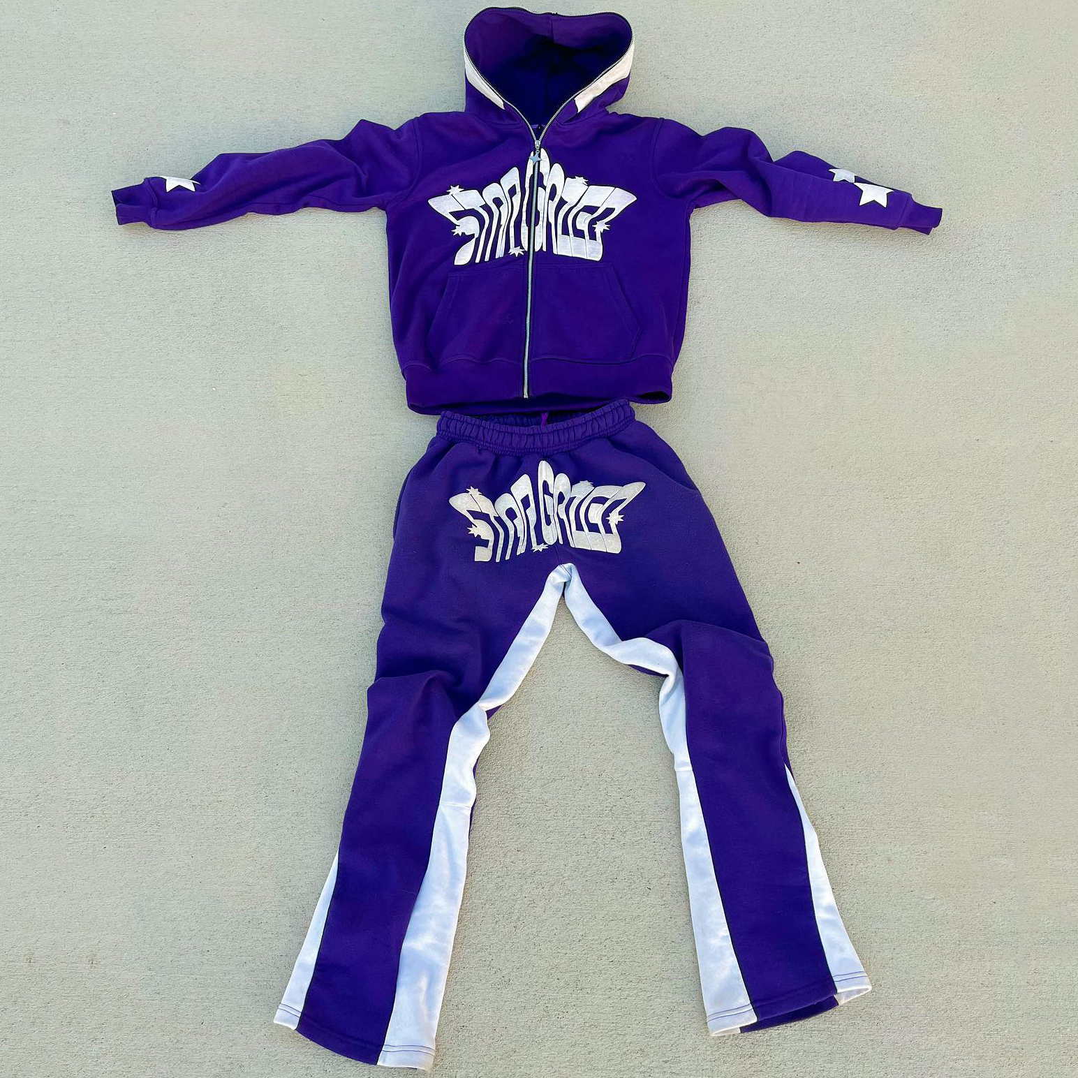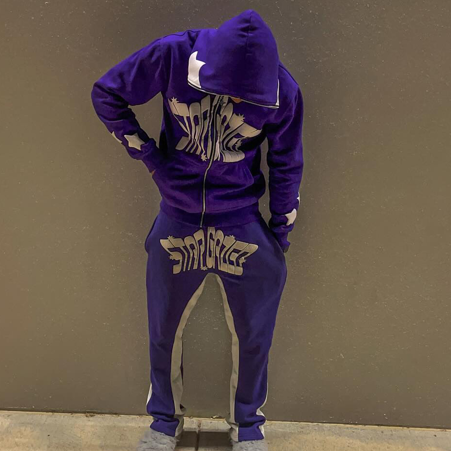 Lucky puff printing full zip hoodie trousers two piece set