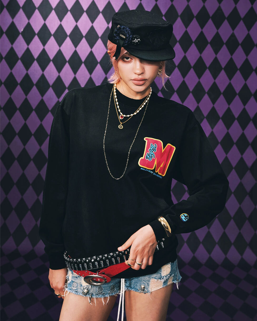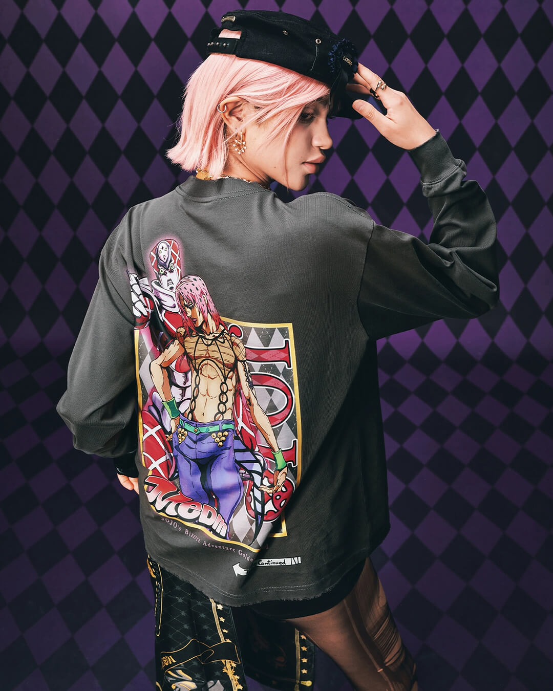 JOJO Washed Distressed Character Print Long Sleeve Tee