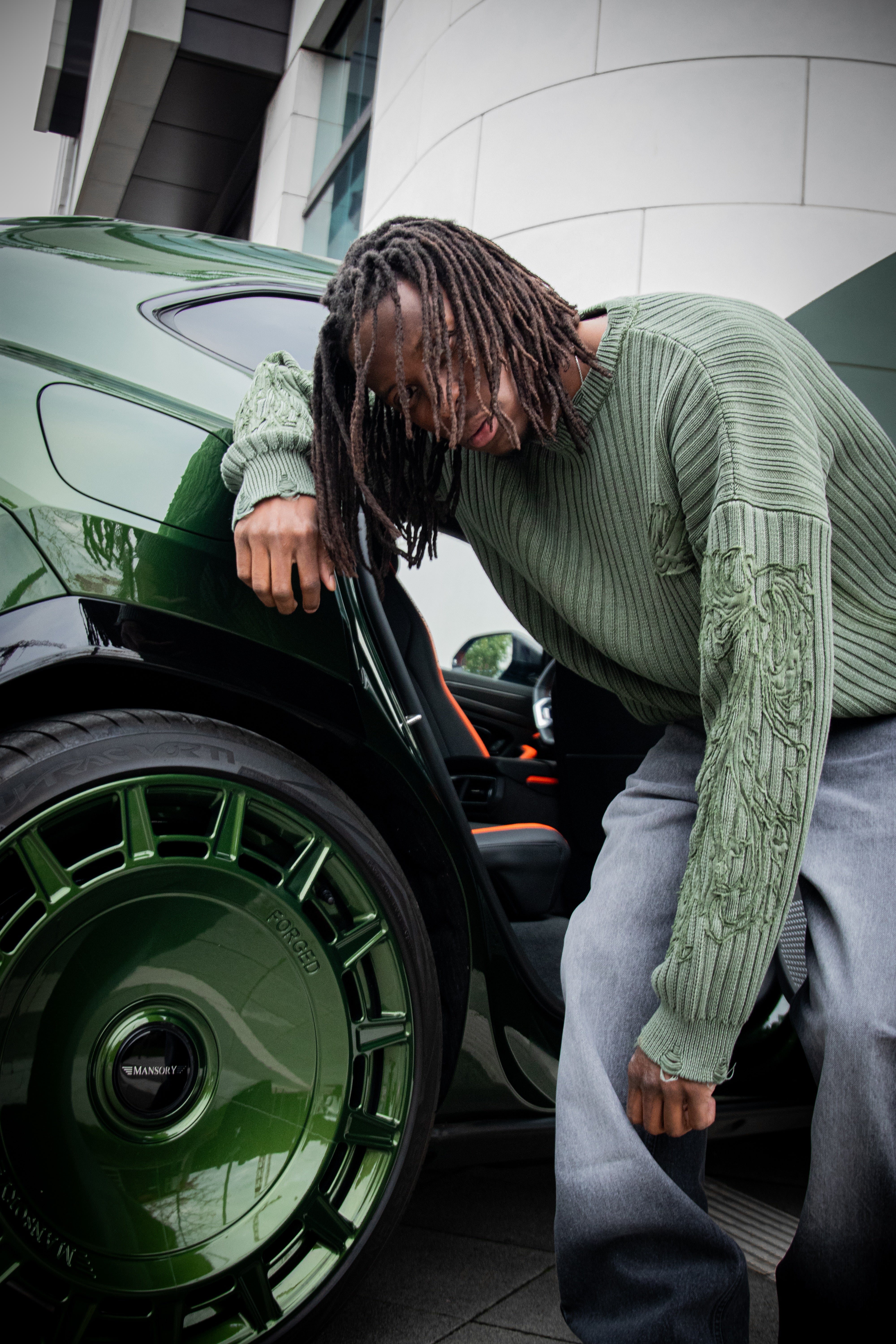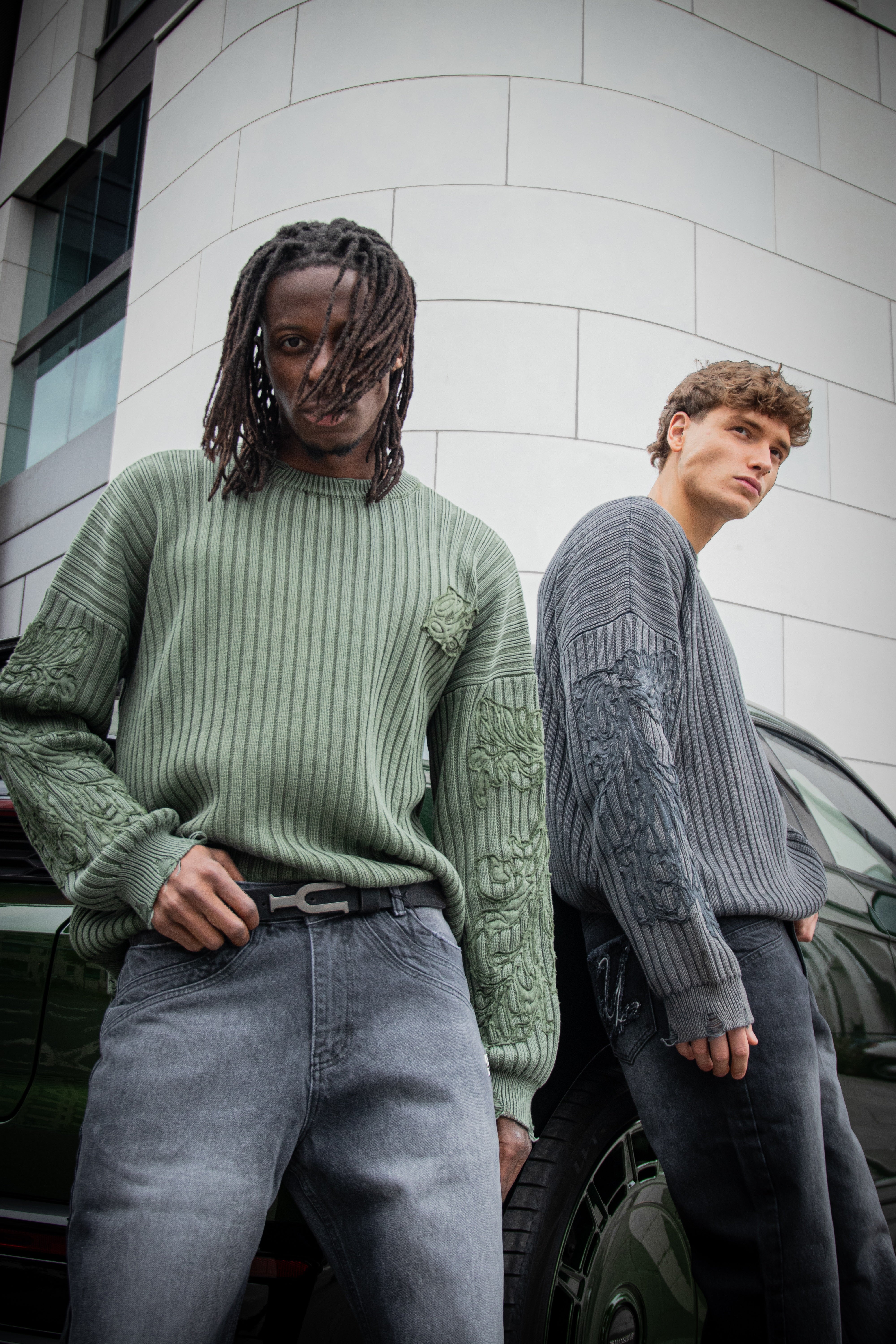 - Distressed Monument Design on the Sleeve