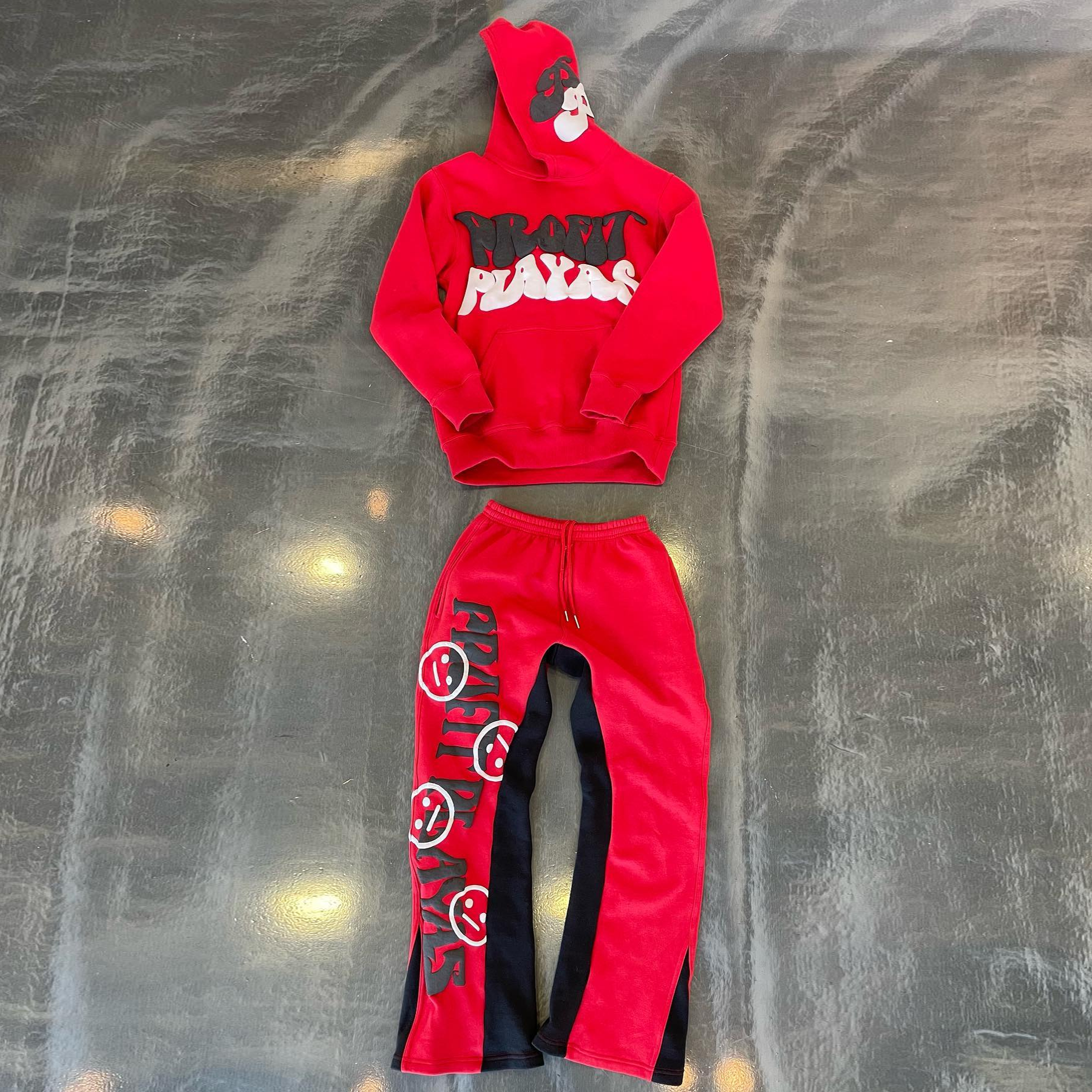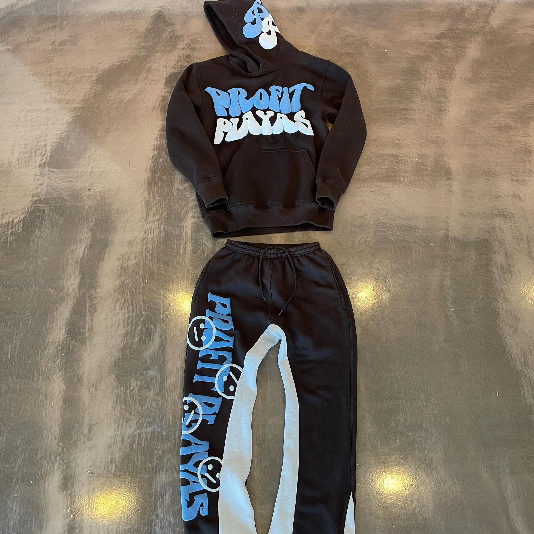 Personalized contrast bubble print hoodie two-piece set