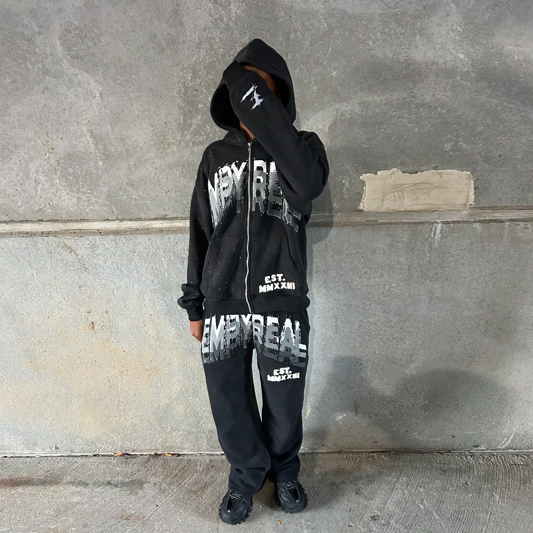 Retro Personalized Print Zipper Hoodie Set