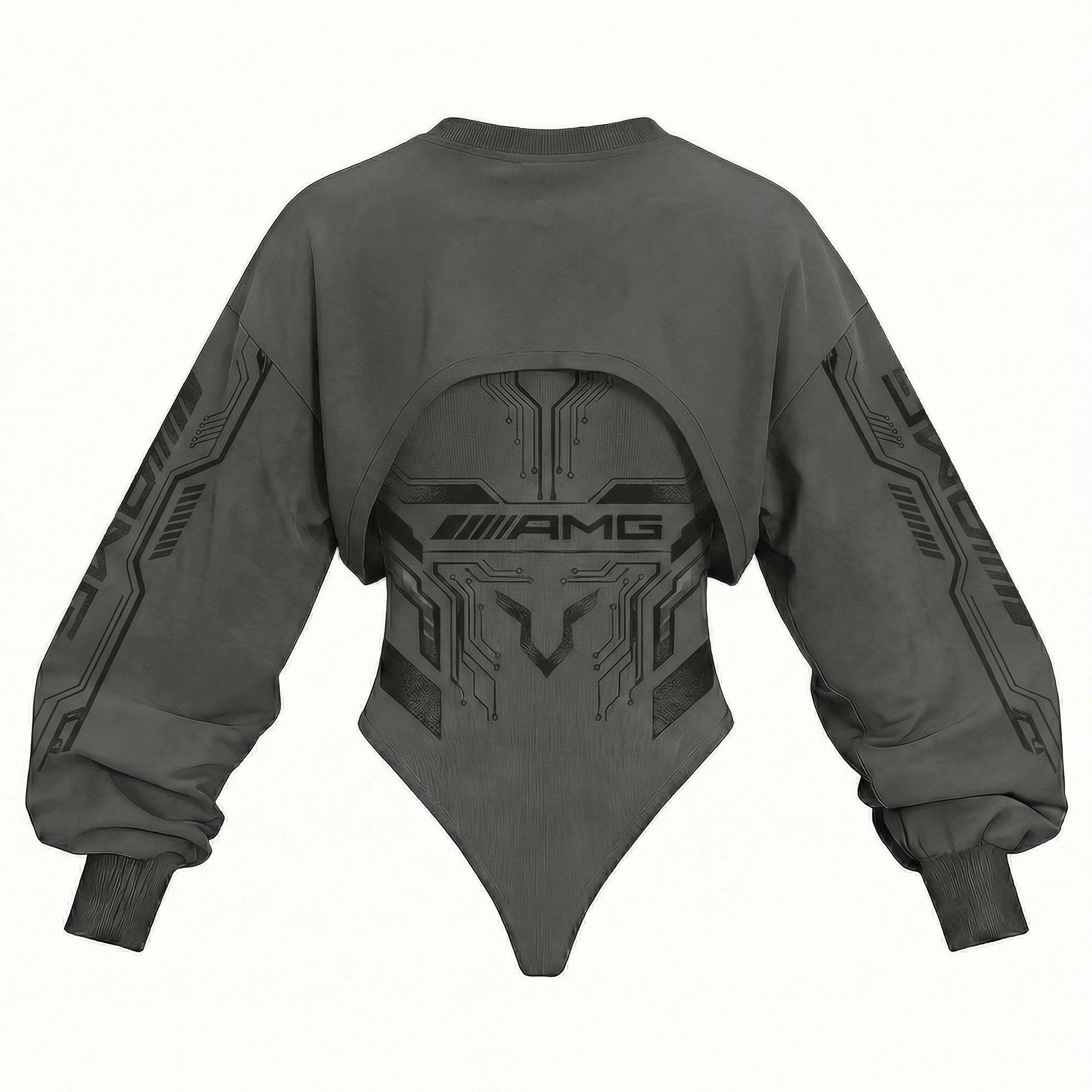 • Detail Features: Asymmetric Overlap Neckline, Contrasting Panel Design, Sleeve Stripes with Branding Elements, Ribbed Cuffs