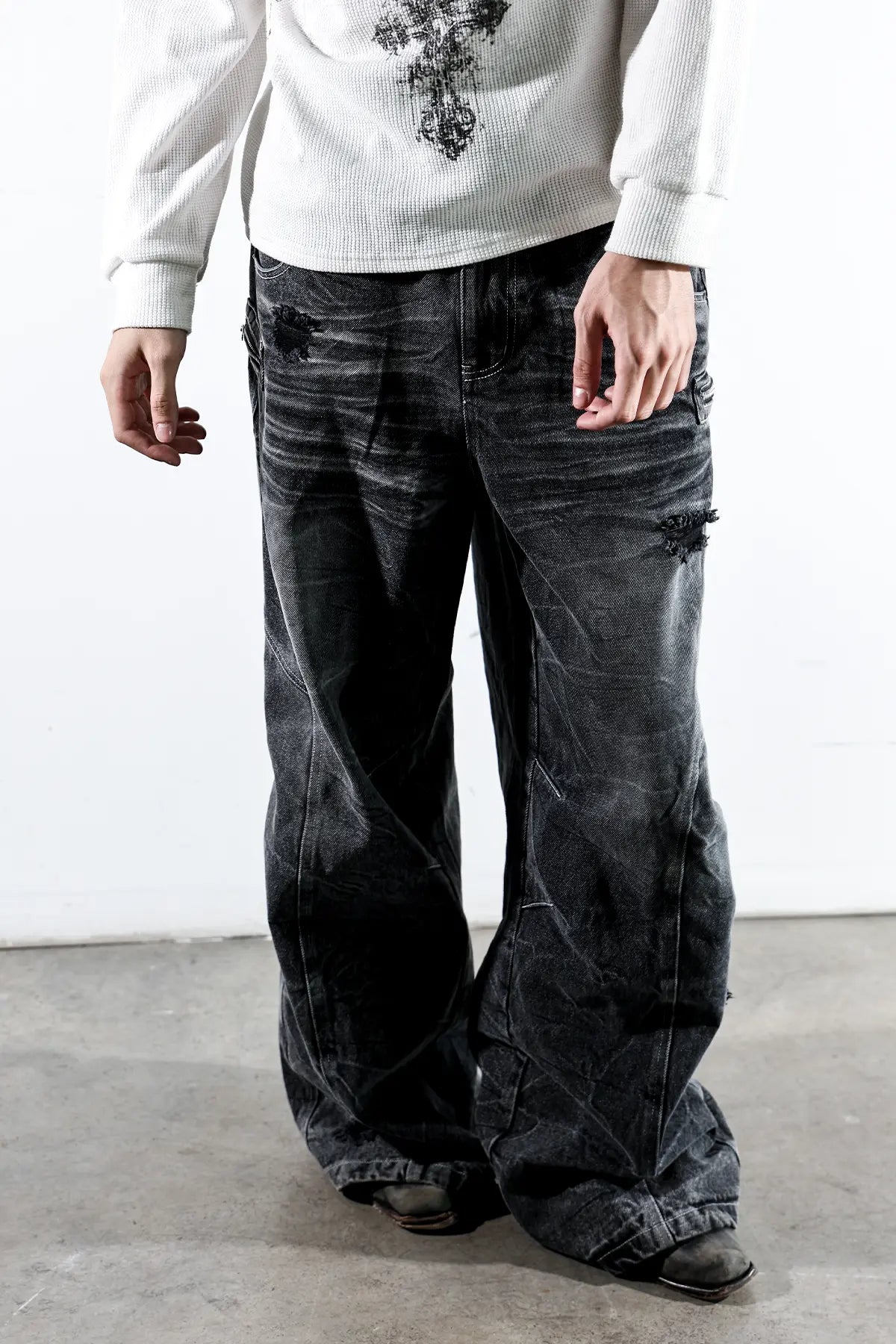 These mid-weight denim jeans are crafted for durability and everyday comfort, with premium cotton that feels great and lasts. Designed with a relaxed, baggy fit & a wide leg opening, they’re made to move with you. Finished with a detailed wash that'll last life's roughest moments.