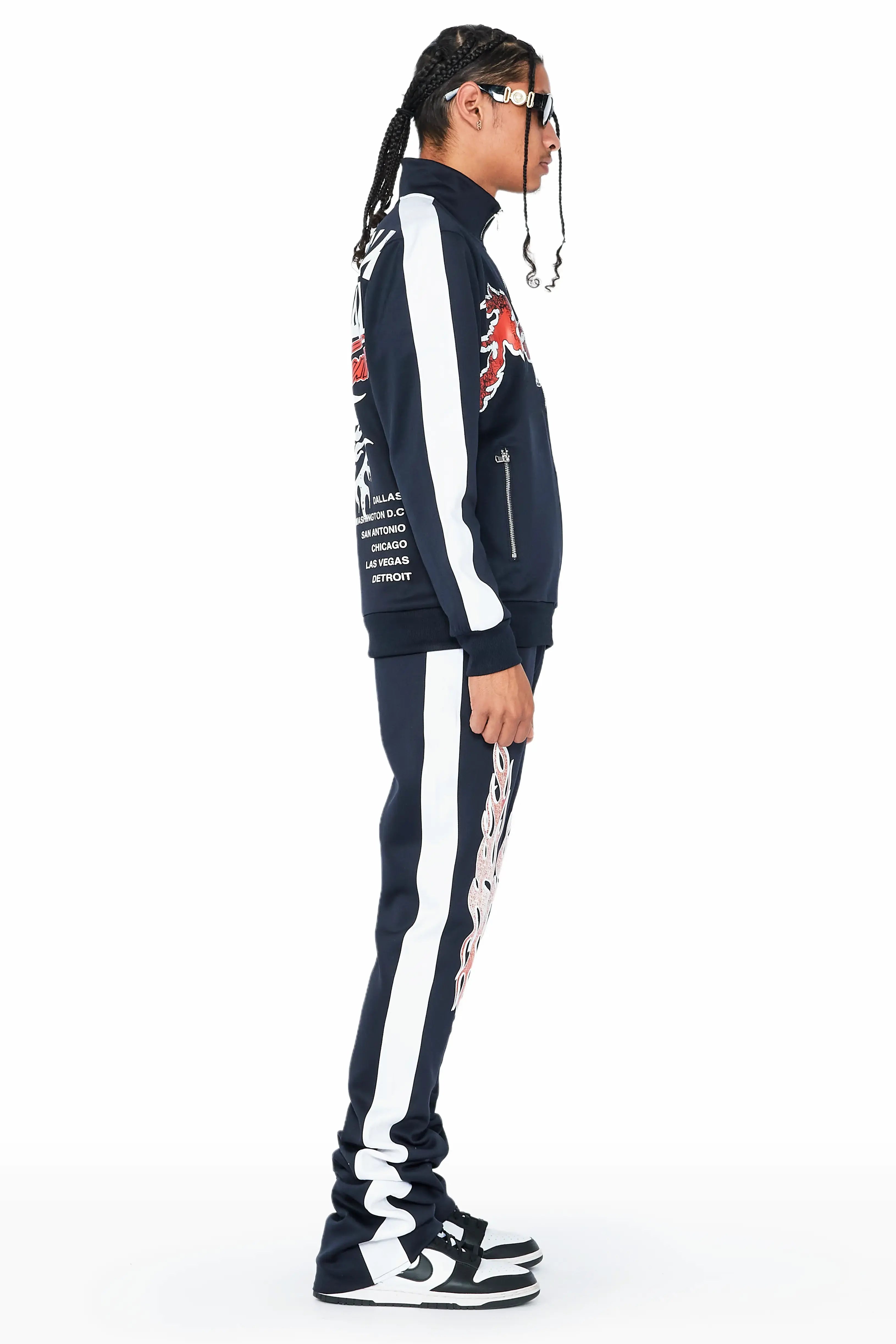 An athleisure two-piece flare tracksuit set for men in black. Designed with ultra lightweight fabric for a dope activewear style.